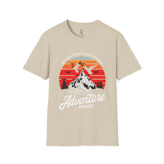 Adventure Awaits T-Shirt | Unisex Softstyle Tee | Perfect for Travel Lovers, Outdoor Adventures, Camping, Nature Gifts, Explore