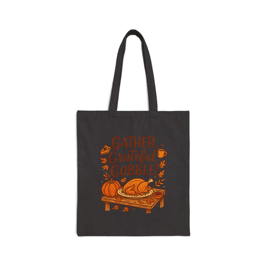 Thanksgiving Tote Bag — "Gather, Grateful, Gobble" Cotton Canvas Market Tote