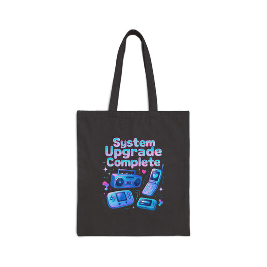 System Upgrade Complete Tote Bag — Retro Gaming Cotton Canvas Tote