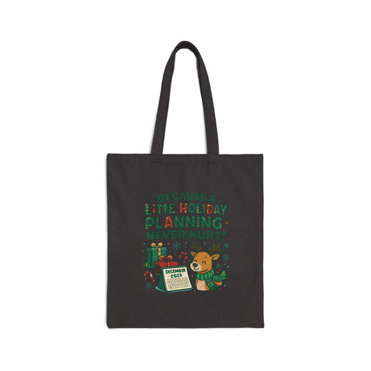 Holiday Planning Tote Bag - "Because A Little Holiday Planning Never Hurt" Cotton Canvas Tote