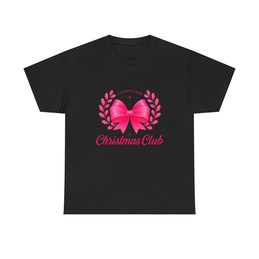 Christmas Tee with Pink Bow and Candy Cane Christmas Club Text