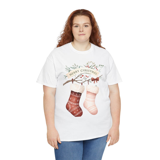 Pink Gingham Stocking Christmas Tee - Be Merry & Bright