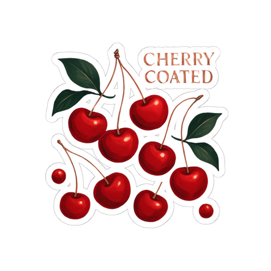Cherry Coated Kiss-Cut Sticker — Retro Red Cherry Laptop Decal