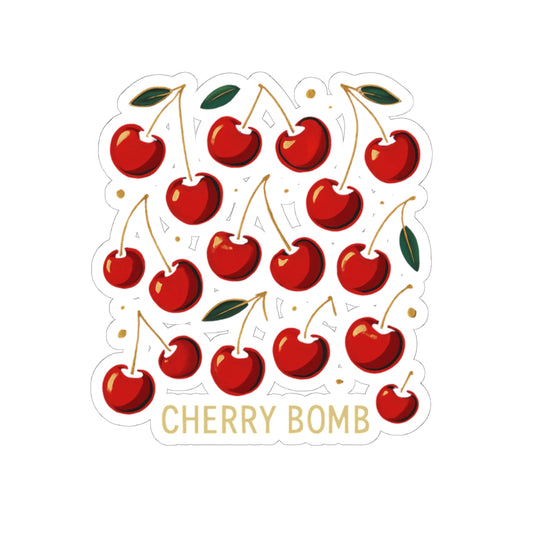 Cherry Bomb Kiss-Cut Sticker — Retro Red Cherry Pattern
