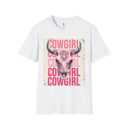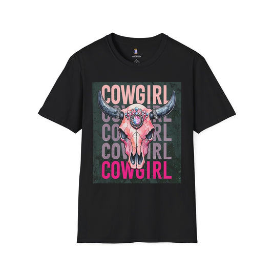 Cowgirl Skull Graphic Tee, Unisex Softstyle T-Shirt, Western Style Shirt, Gift for Cowgirls, Country Music Lover Shirt, Rodeo Outfit
