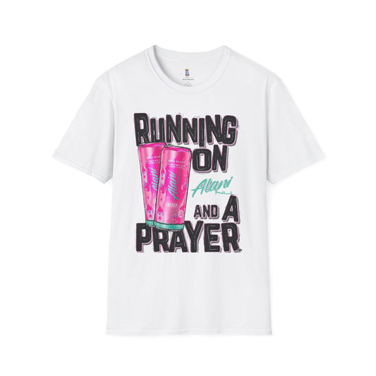 Running on a Prayer T-Shirt, Unisex Graphic Tee, Fun Casual Wear, Gift for Friends, Everyday Style, Faith-Inspired Apparel