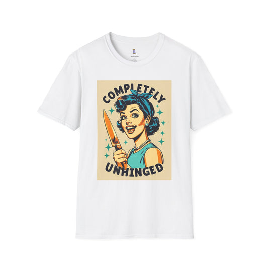 Completely Unhinged T-Shirt, Funny Apparel, Unisex Graphic Tee, Quirky Gift, Vintage Style Shirt, Retro Humor Clothing