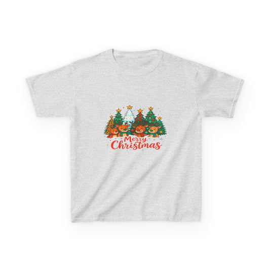Merry Christmas Reindeer & Dino Trees Kids Tee