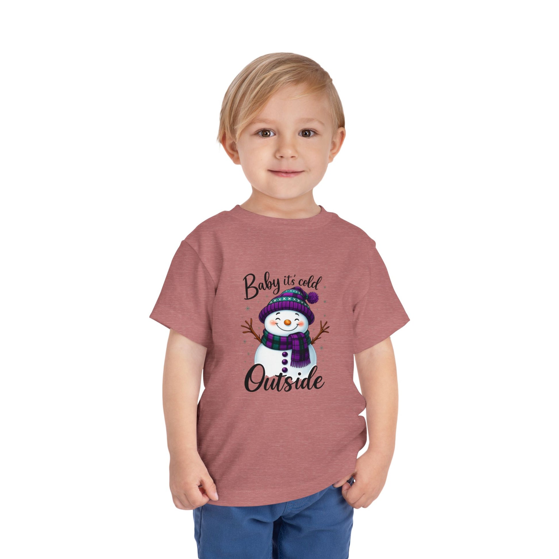 Spread holiday cheer with this adorable toddler Christmas tee! Featuring a cheerful snowman with a stylish "Baby it's cold outside" message, this shirt is perfect for your little one. Crafted from soft, comfortable fabric, it's ideal for festive gatherings and winter fun.