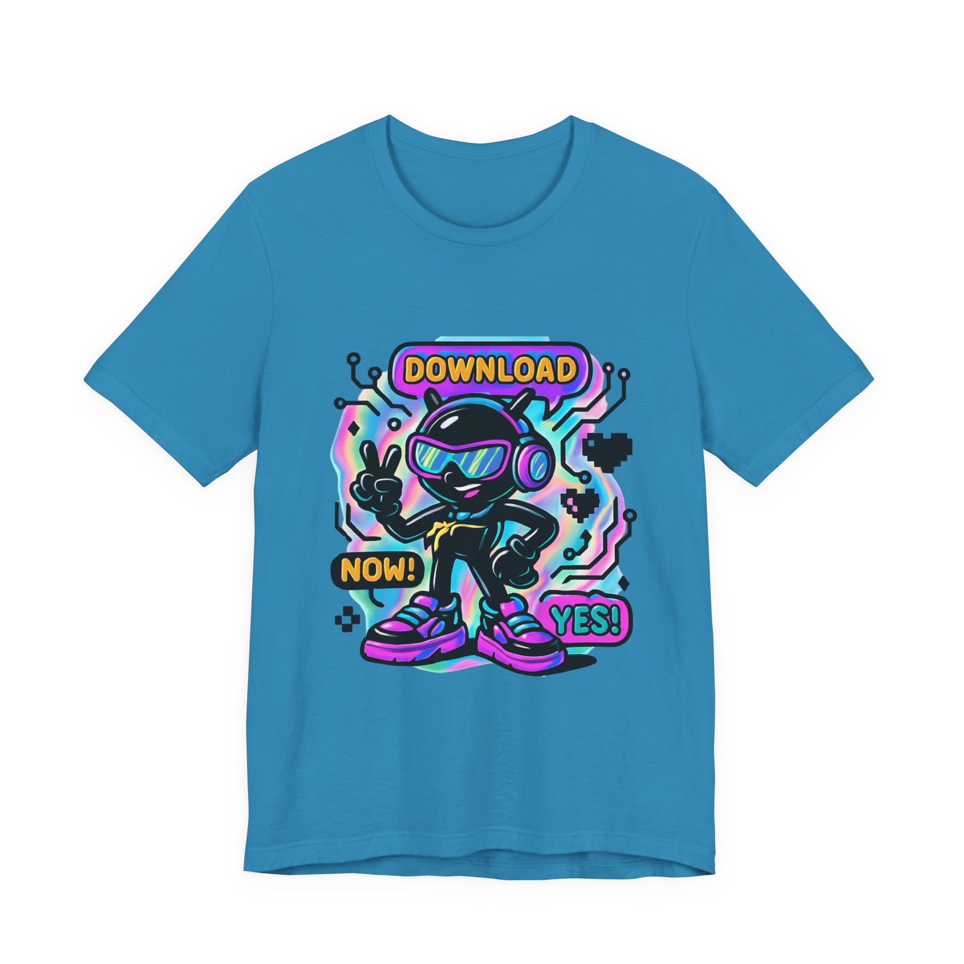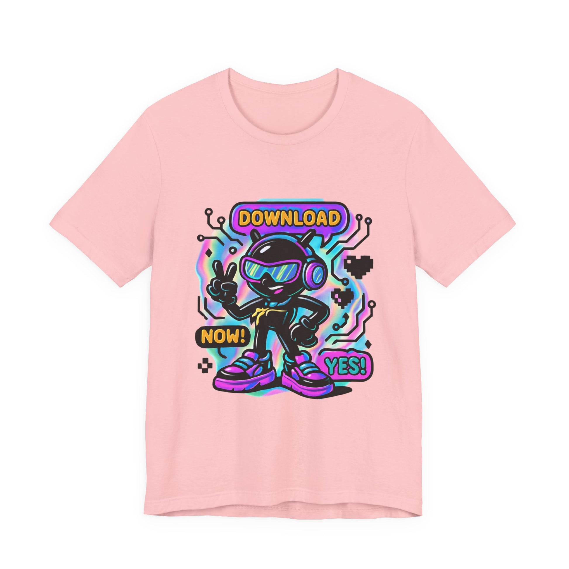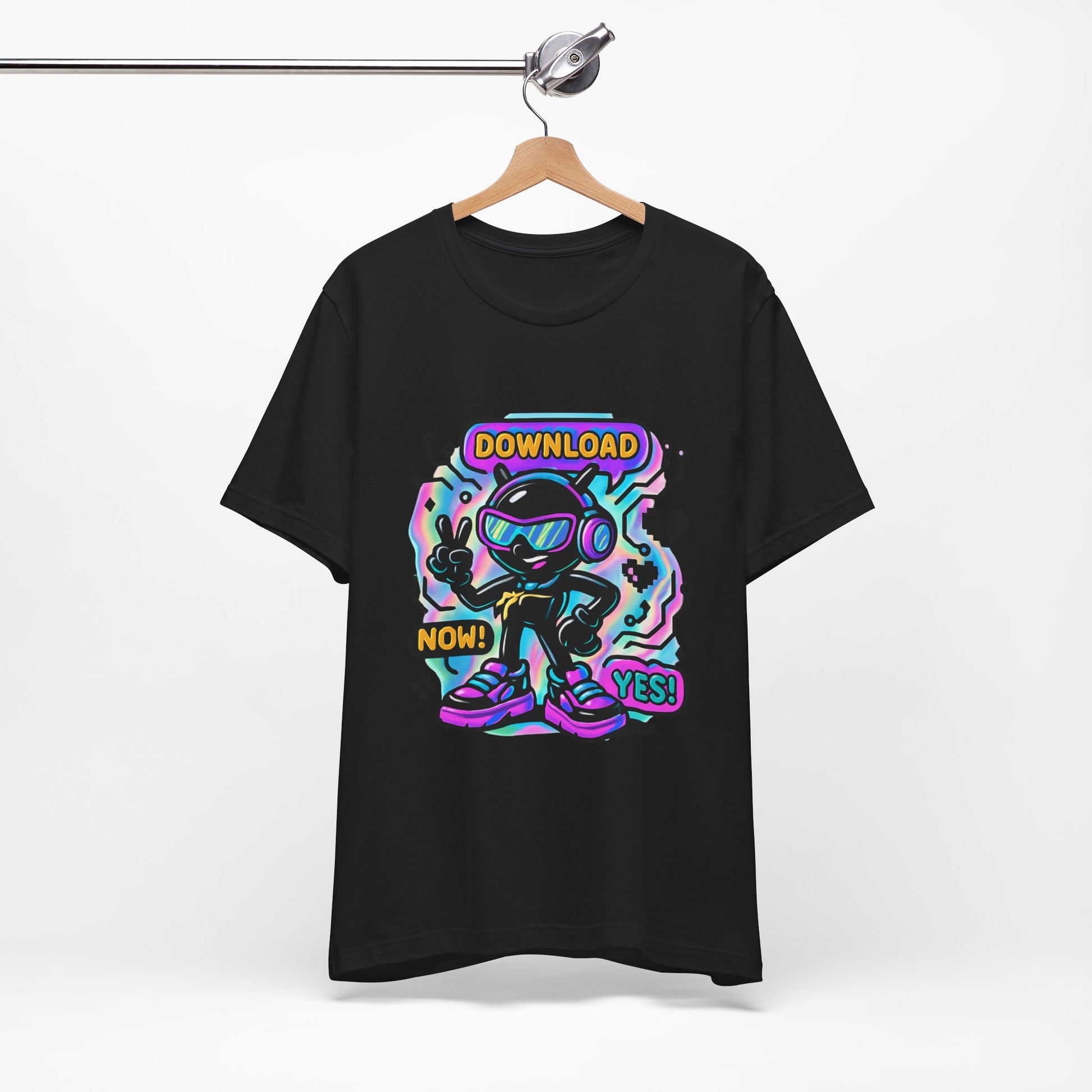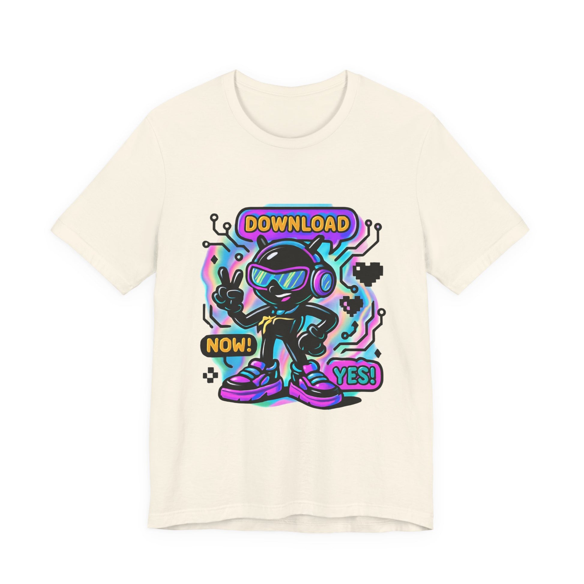 A lightweight, breathable tee with bold, neon-charged artwork that feels like arcade nights and late‑night coding sessions fused into one. The shirt sits comfortably on the body thanks to a retail cut and crew neckline, while durable side seams and shoulder tape keep the silhouette crisp wash after wash. The front features a vibrant, DTF/DTG‑ready print of a stylized digital character surrounded by glitchy accents and playful captions — it pops on white and holds its color on specialty blends. Wear it to gaming meetups, conventions, or when you want your outfit to signal playful tech energy. The tear‑away label keeps the neck itch‑free and the responsibly produced fabric (Airlume combed and ring‑spun cotton) keeps it soft against skin.