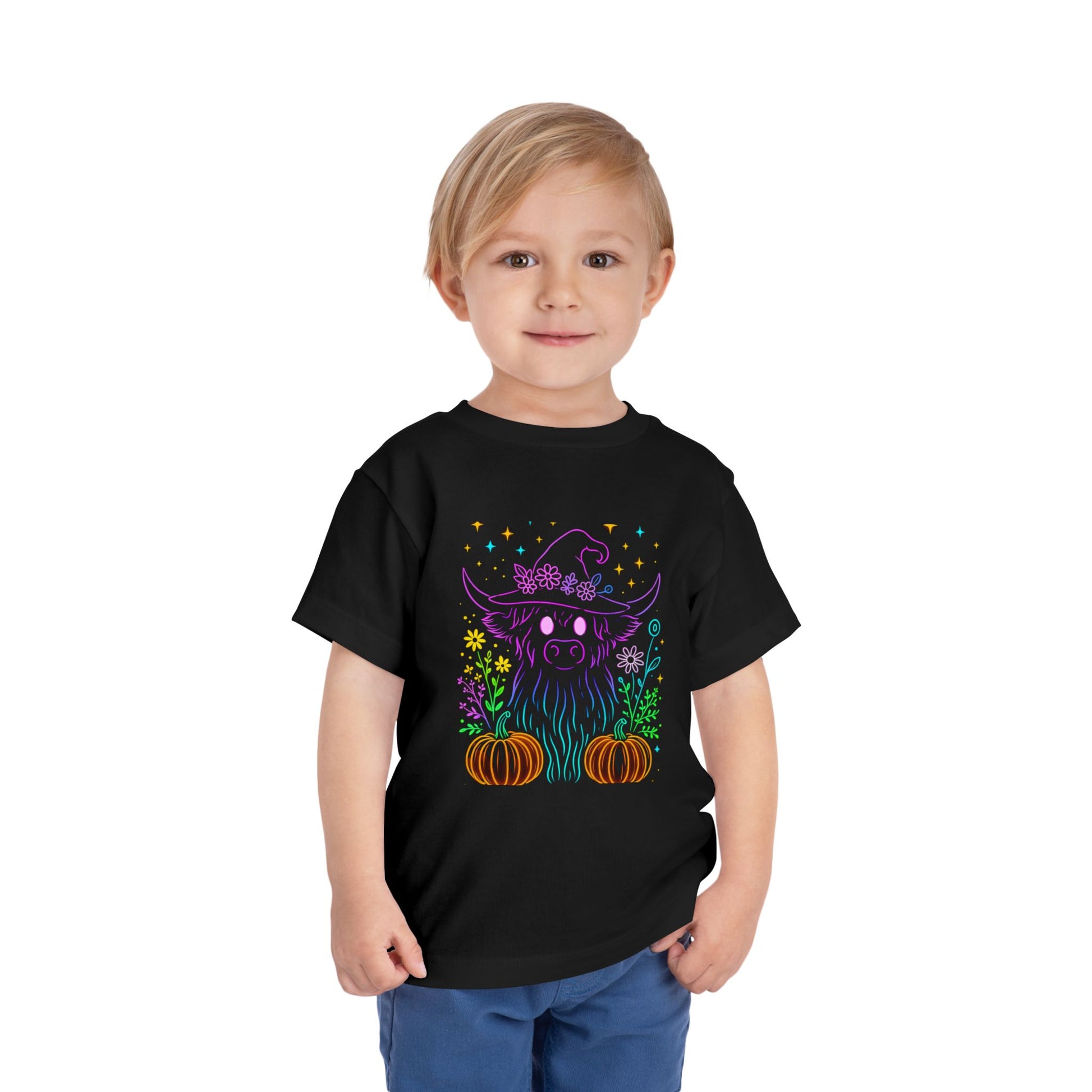 Toddler Tee Highland Cow Witch Hat Halloween Shirt
