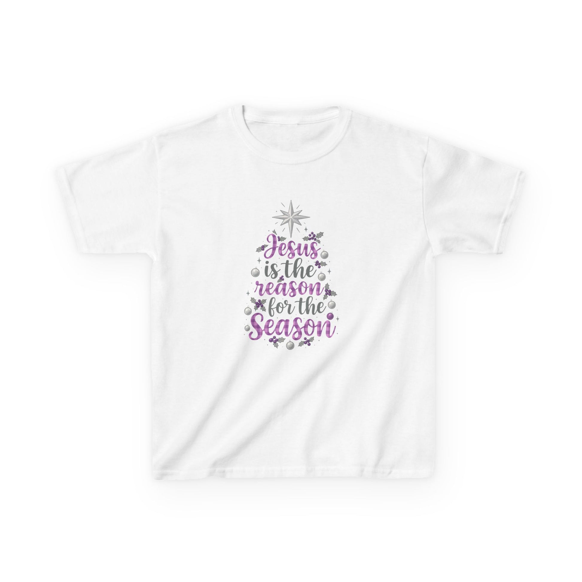 Celebrate the season with this adorable and faith-filled Christmas tee! Featuring a stylized Christmas tree with 'Jesus is the reason for the season' in a unique plaid design, accented by festive ornaments, holly, and sparkles. Made from soft, comfortable fabric, this shirt is perfect for the holidays and makes a wonderful gift for kids. Let your child spread holiday cheer with this cute and meaningful graphic tee. It's a perfect blend of festive fun and faith.