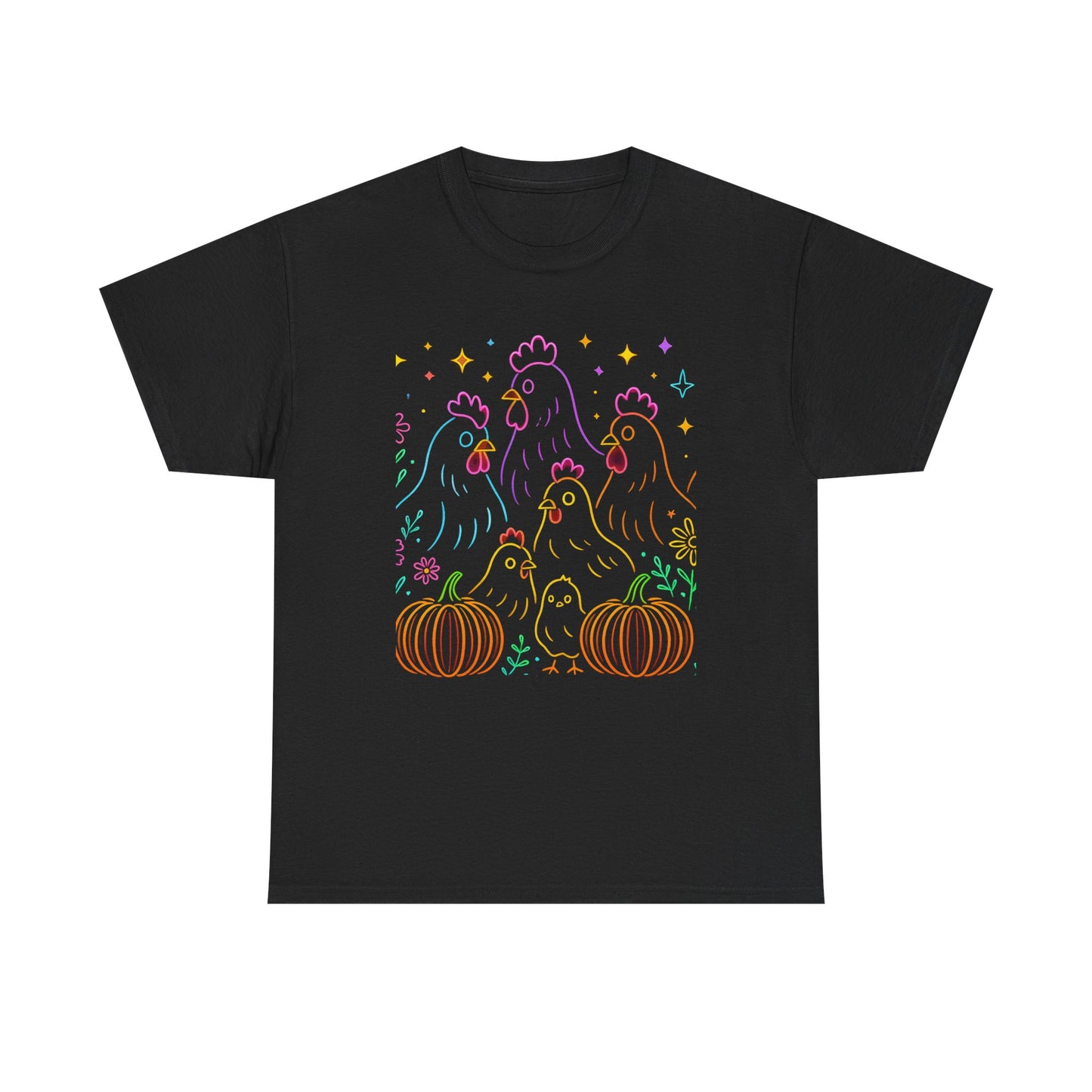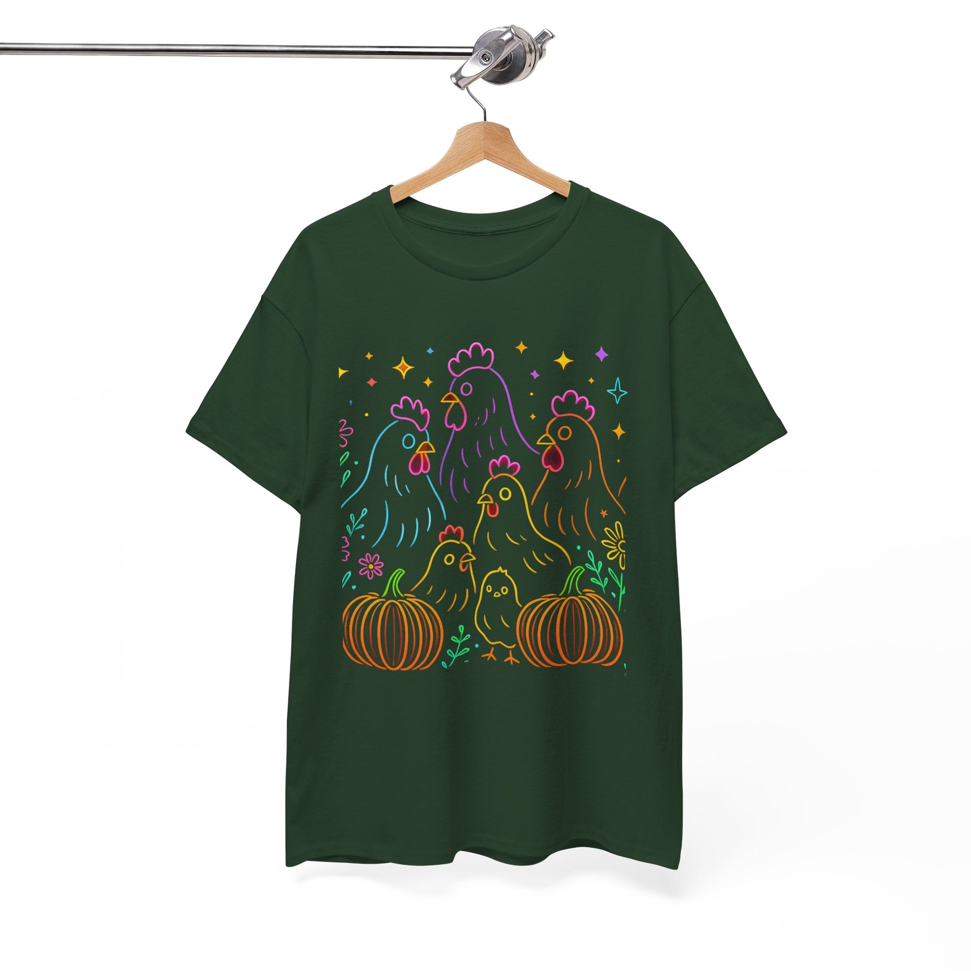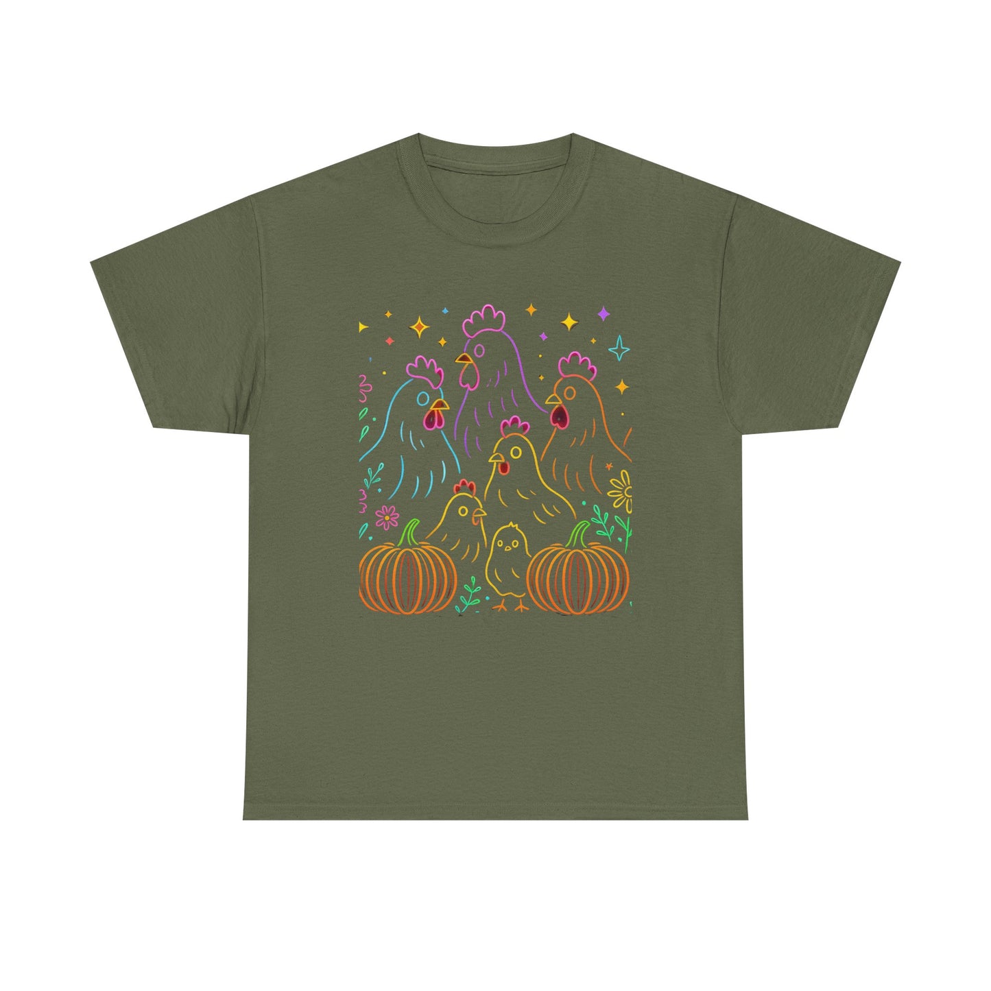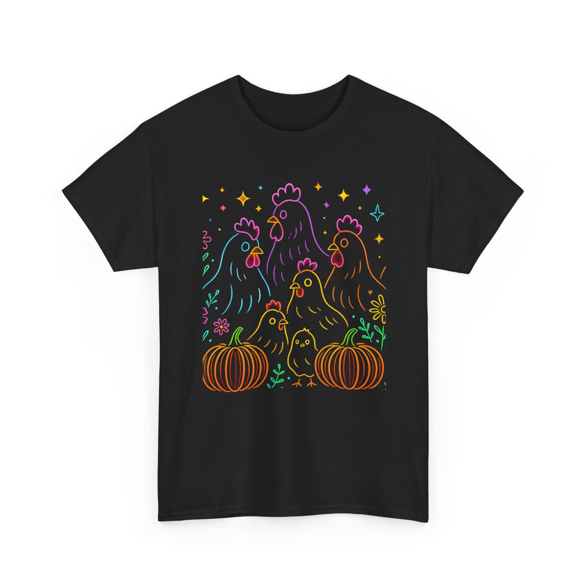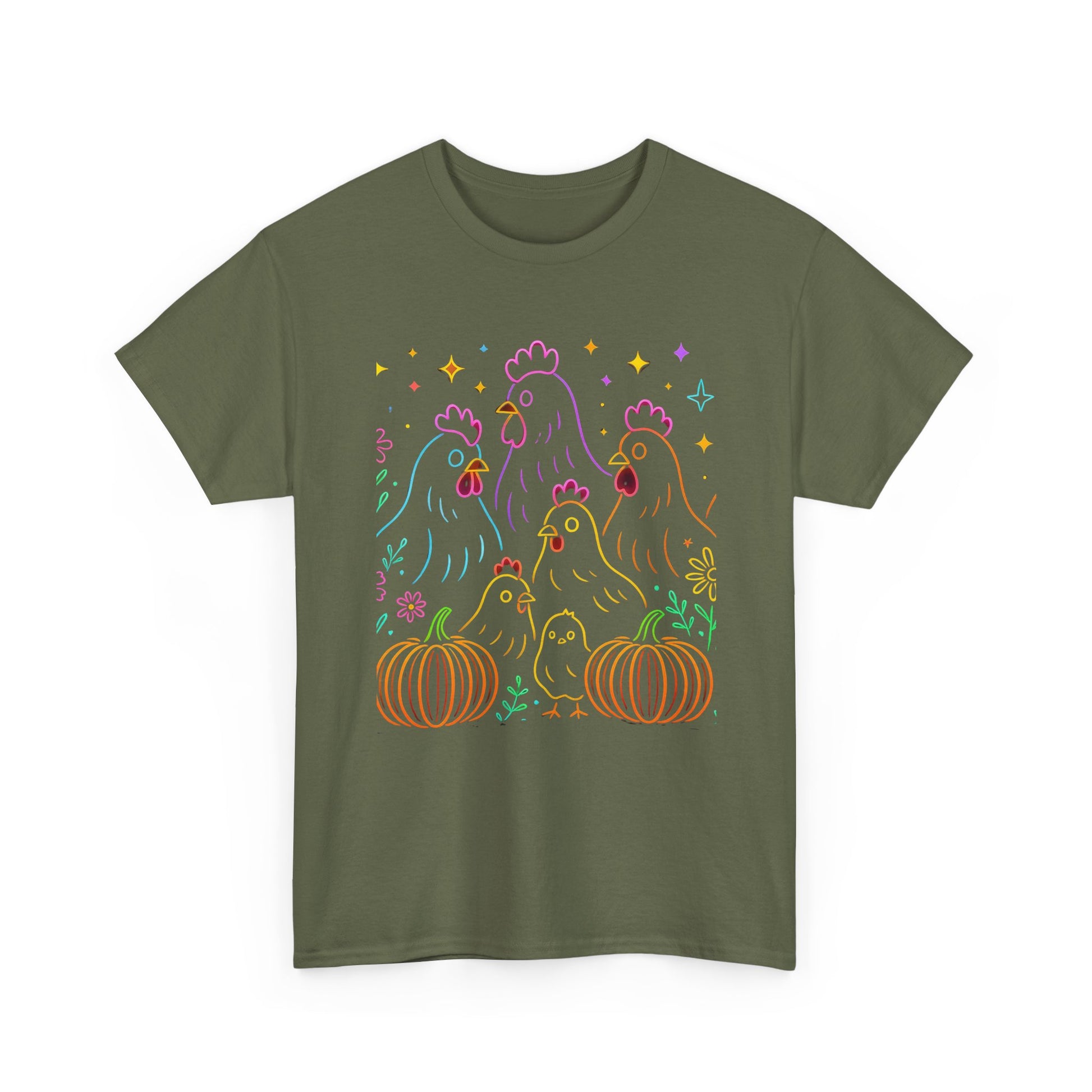 🌻 Autumn Chickens & Pumpkins Tee – Colorful Farm Harvest Shirt