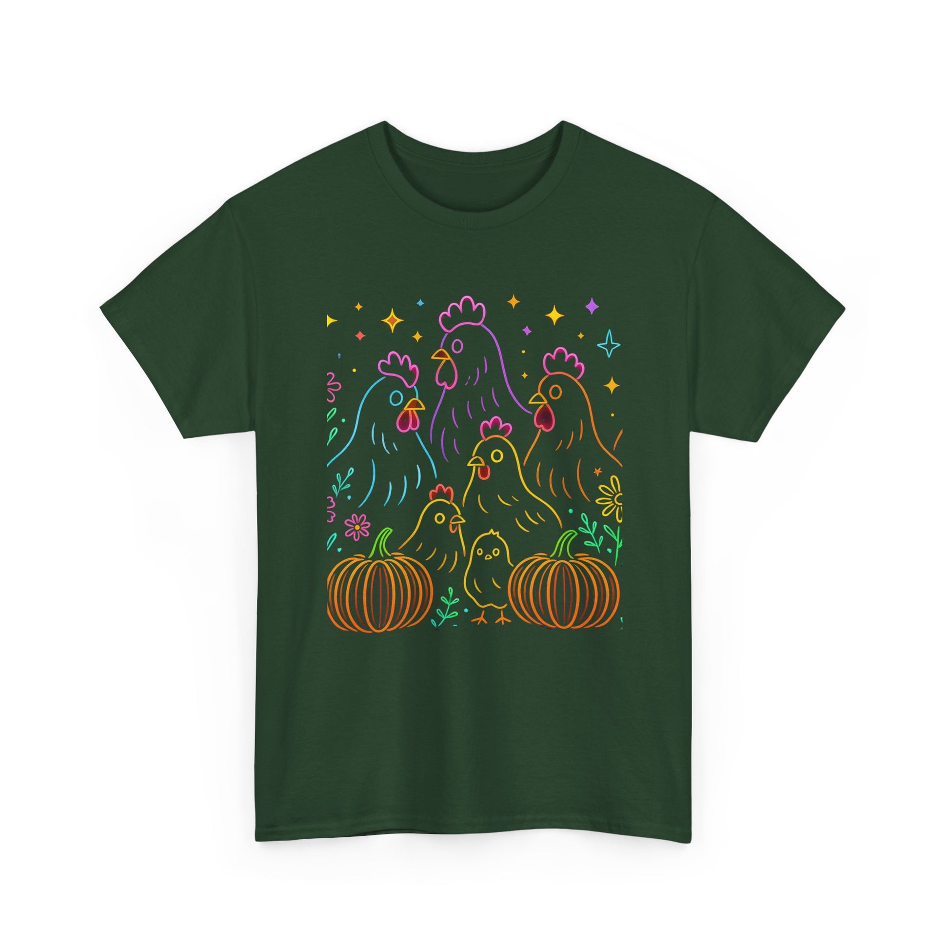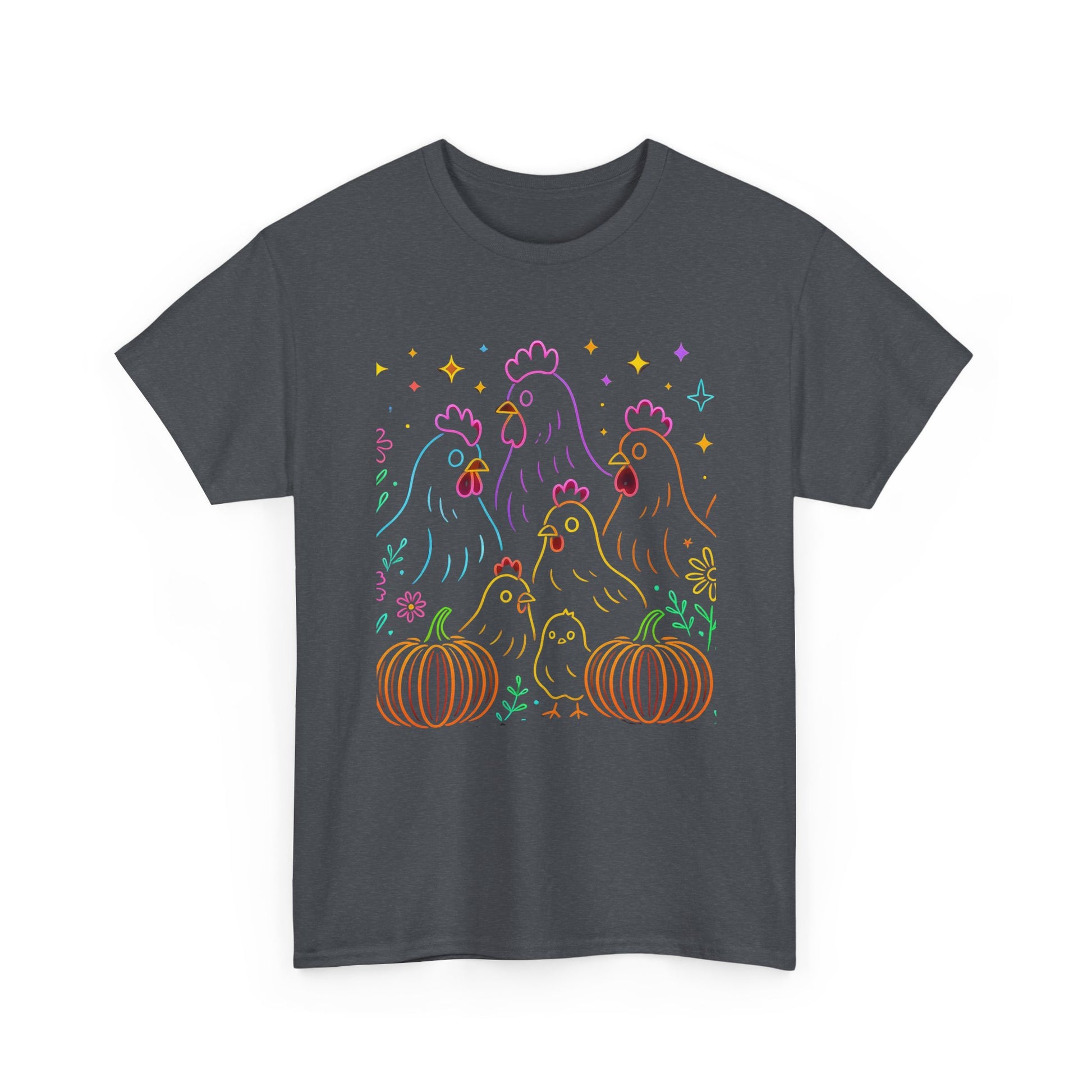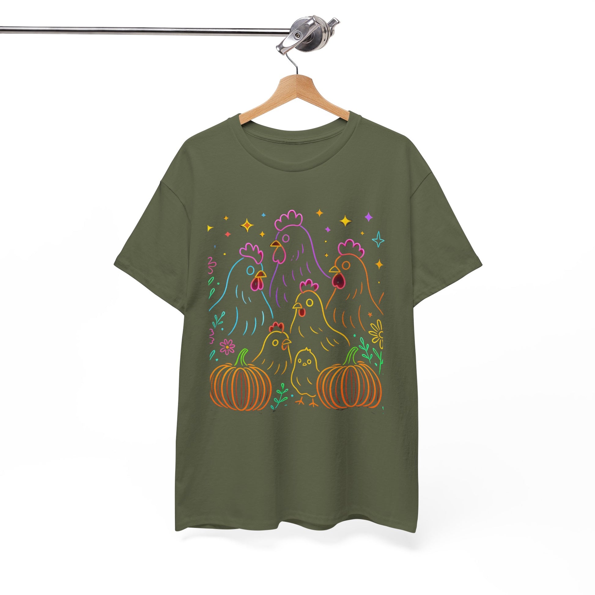 Celebrate the beauty of fall with the Autumn Chickens & Pumpkins Tee! This fun and vibrant design features a group of brightly colored chickens surrounded by pumpkins, flowers, and twinkling stars. Perfect for farmhouse style lovers, chicken keepers, or anyone who enjoys cozy autumn vibes. Made from soft, breathable cotton, this unisex tee is comfortable for everyday wear and makes a thoughtful gift for backyard farmers, chicken enthusiasts, or rustic fall fashion fans.