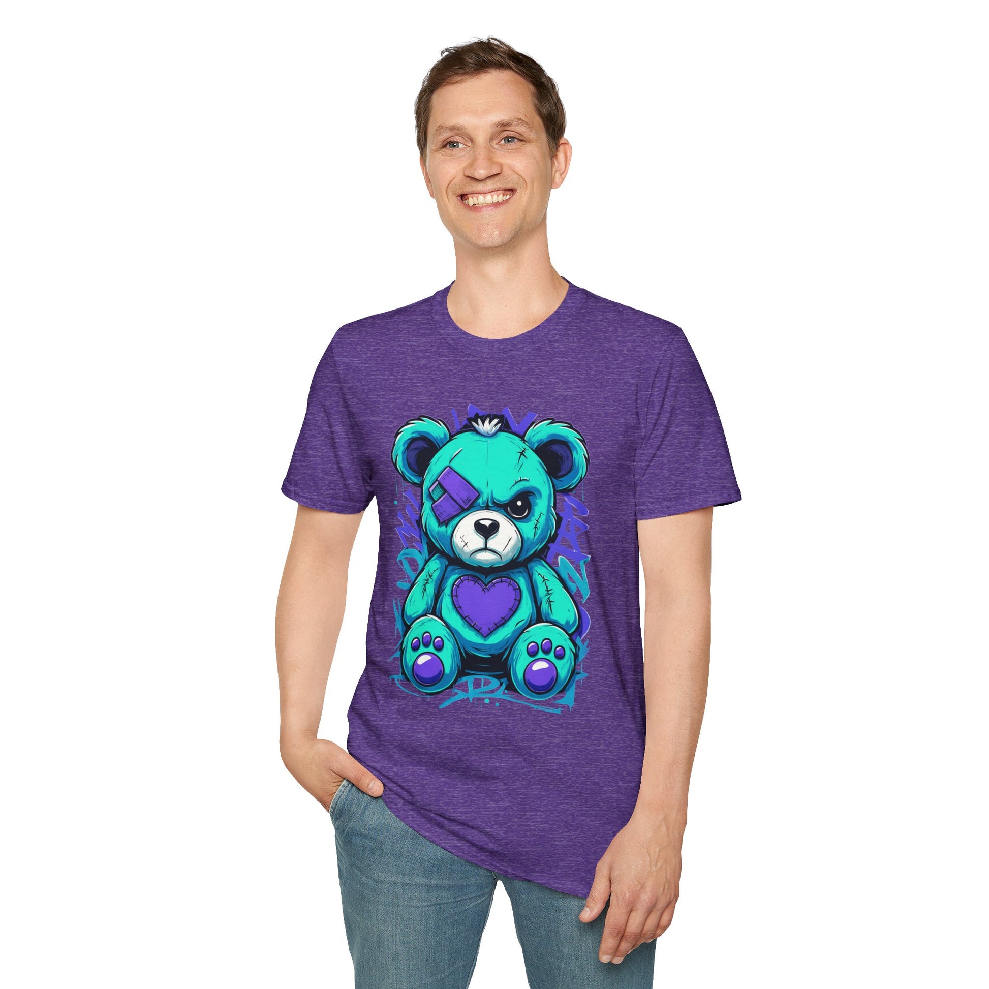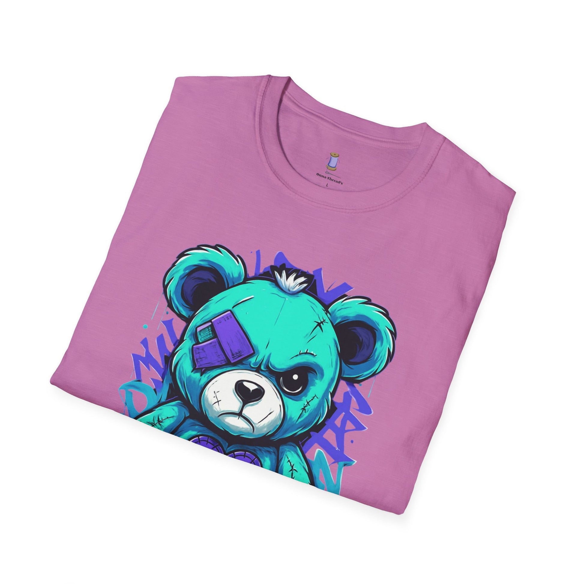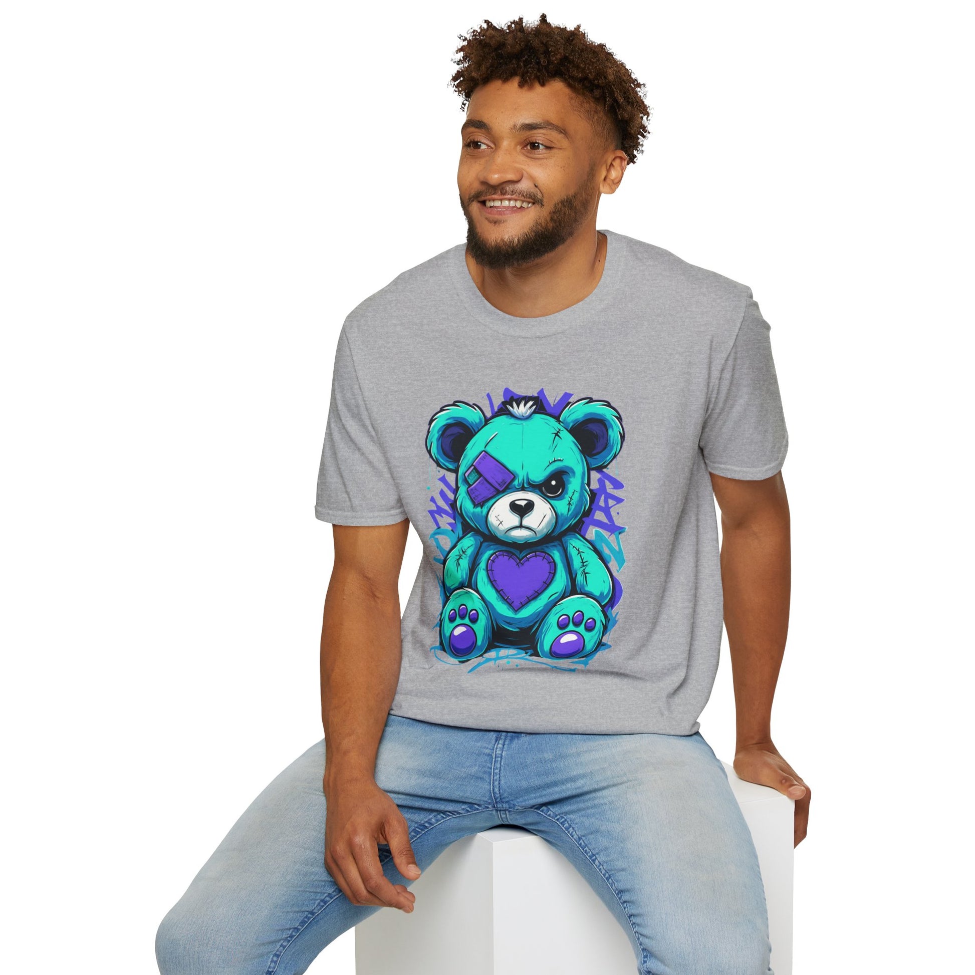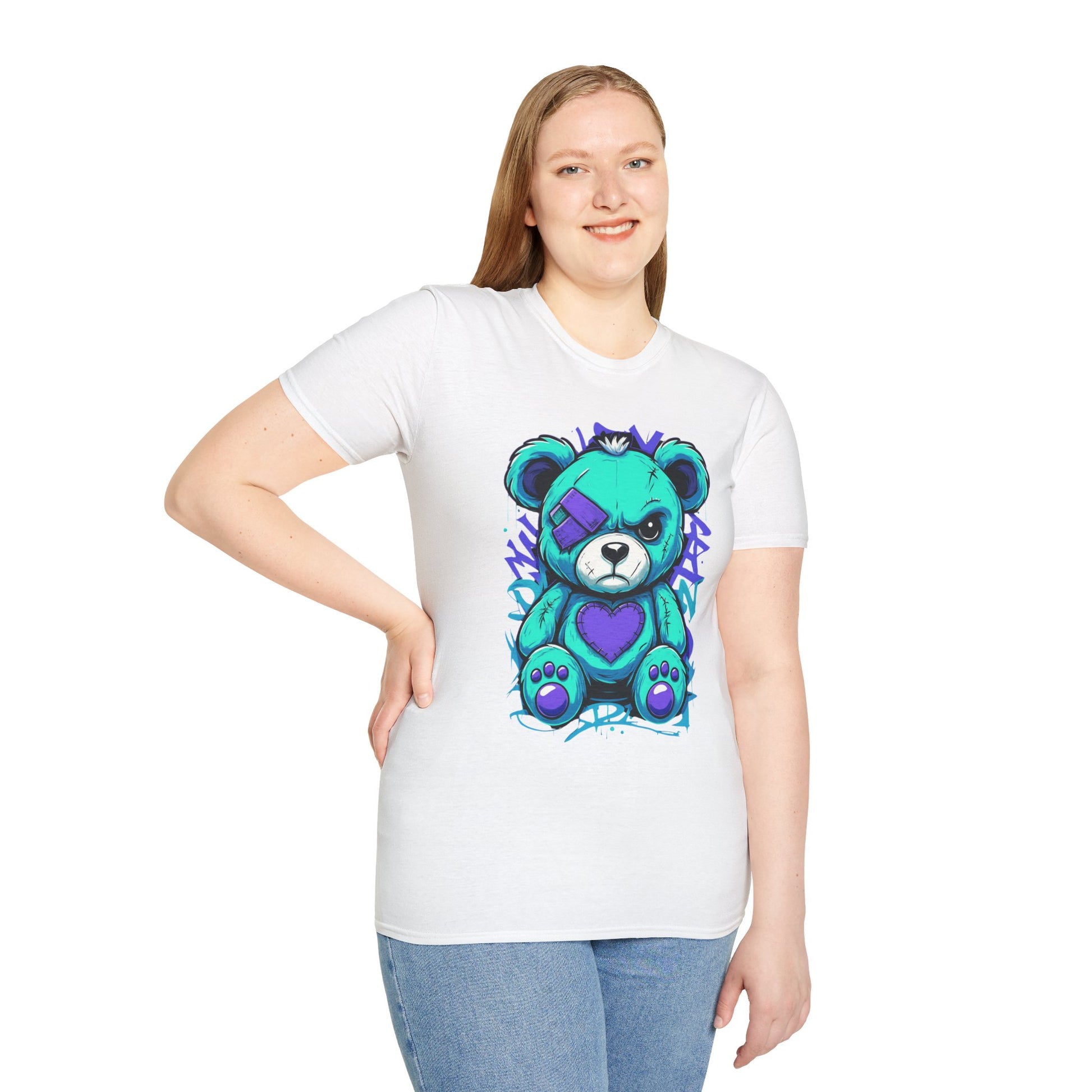 Elevate your wardrobe with this unique Unisex Softstyle T-Shirt, featuring an eye-catching, colorful design of a playful yet bold teddy bear. Perfectly combining style and comfort, this t-shirt offers a relaxed fit that flatters all body types and provides all-day comfort. Ideal for casual outings, gatherings with friends, or weekend adventures, it’s a versatile addition to any closet. This t-shirt is perfect for anyone aged 18 and up who cherishes creativity and wants to express their individuality through fashion. Gift it to loved ones on special occasions such as birthdays, holidays, or just because — it's a delightful surprise that brings a smile!