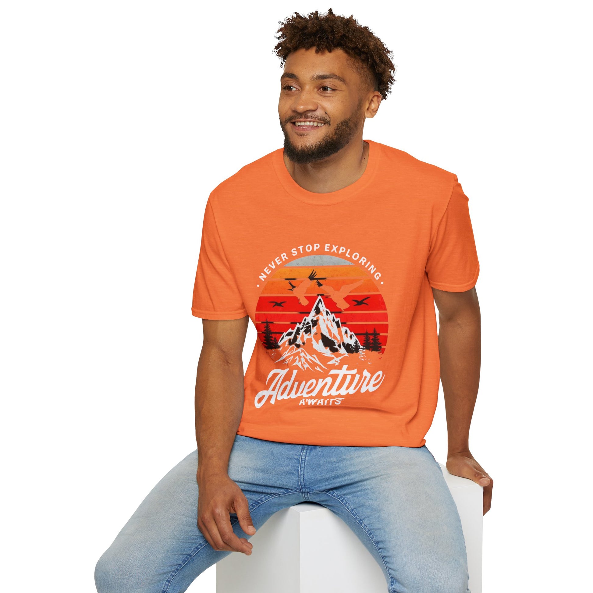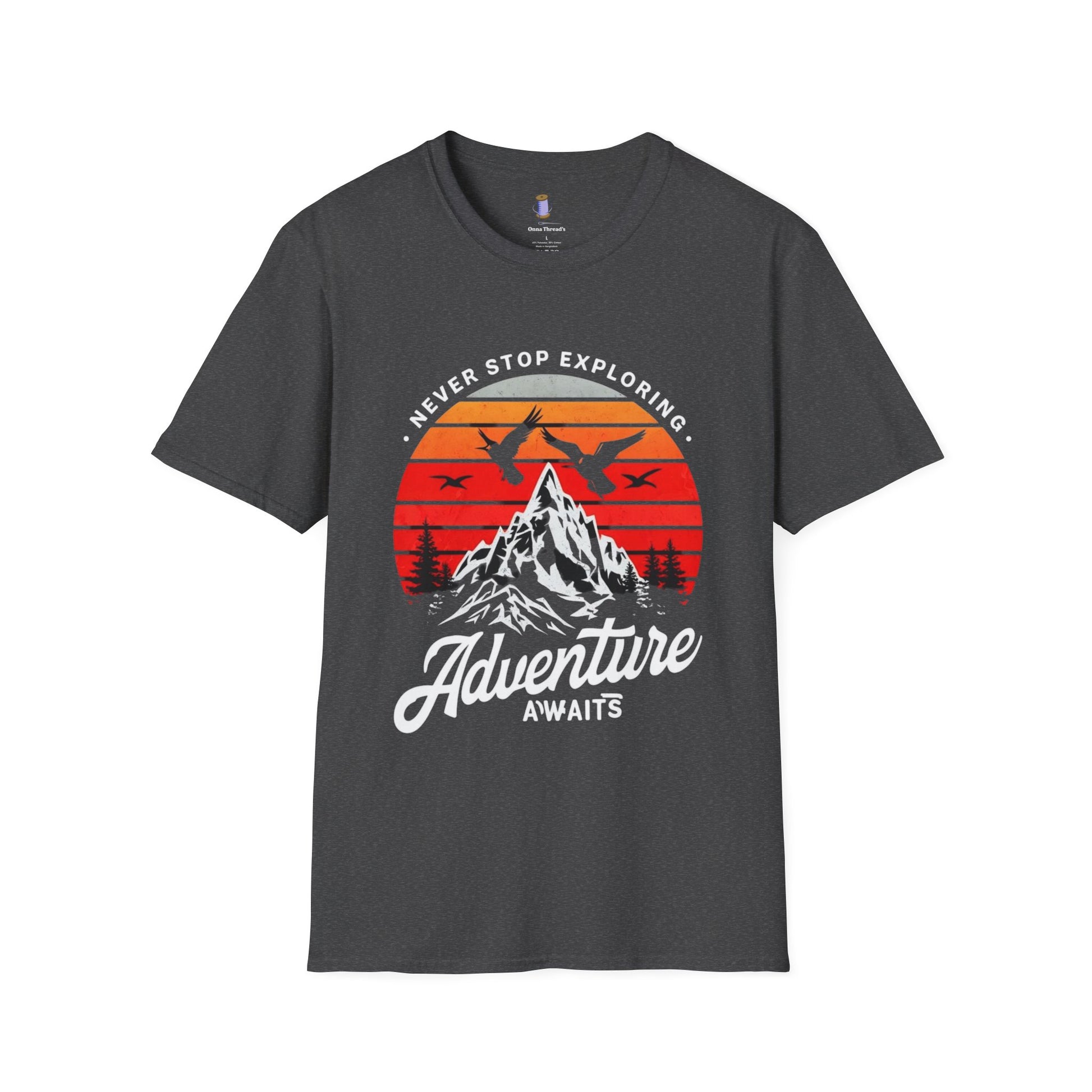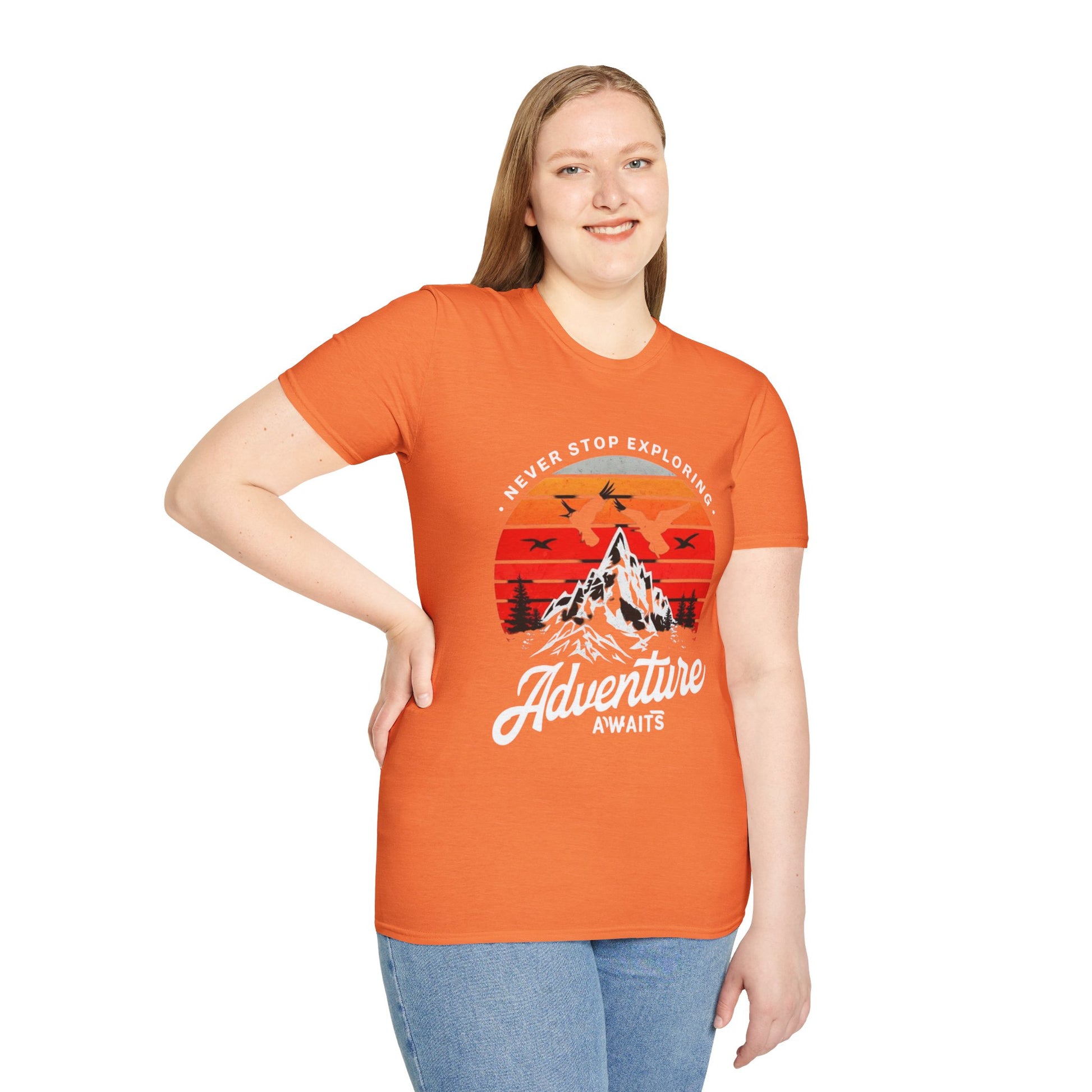 Adventure Awaits T-Shirt | Unisex Softstyle Tee | Perfect for Travel Lovers, Outdoor Adventures, Camping, Nature Gifts, Explore