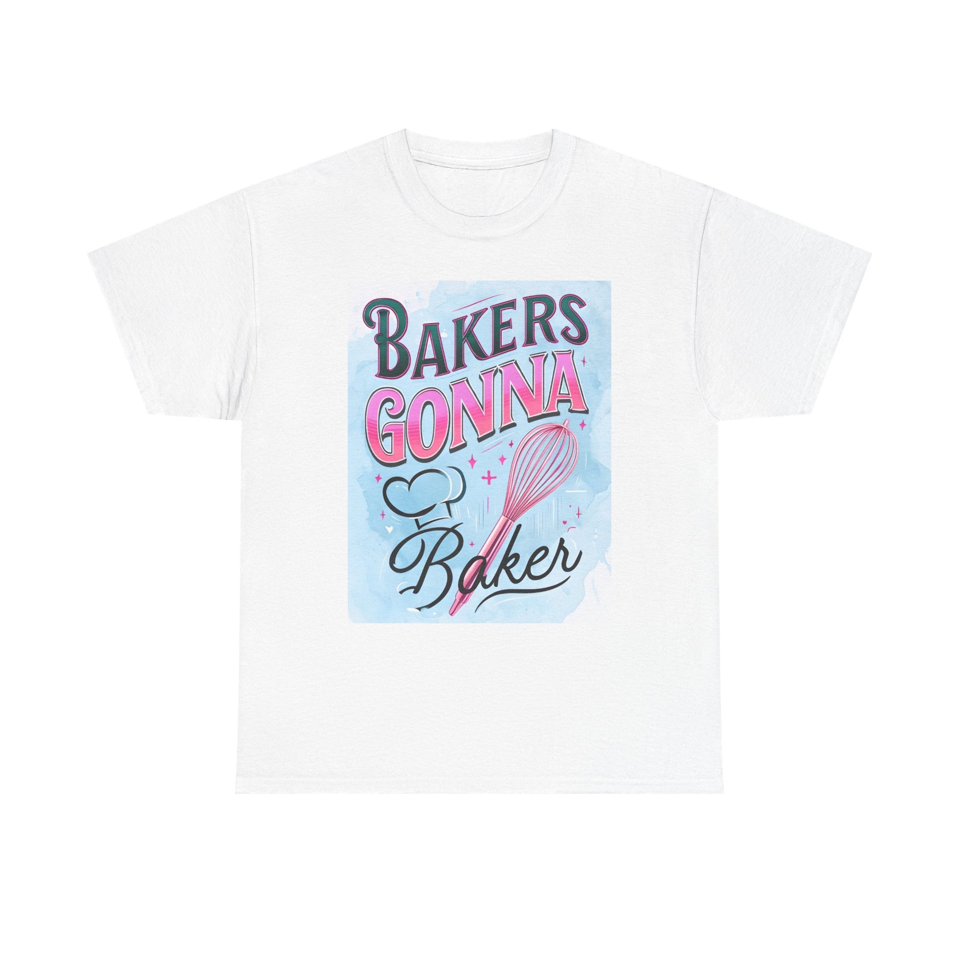 Featuring a whimsical watercolor design with a bold "BAKERS GONNA BAKE" graphic and a pink whisk, this shirt is perfect for your baker.