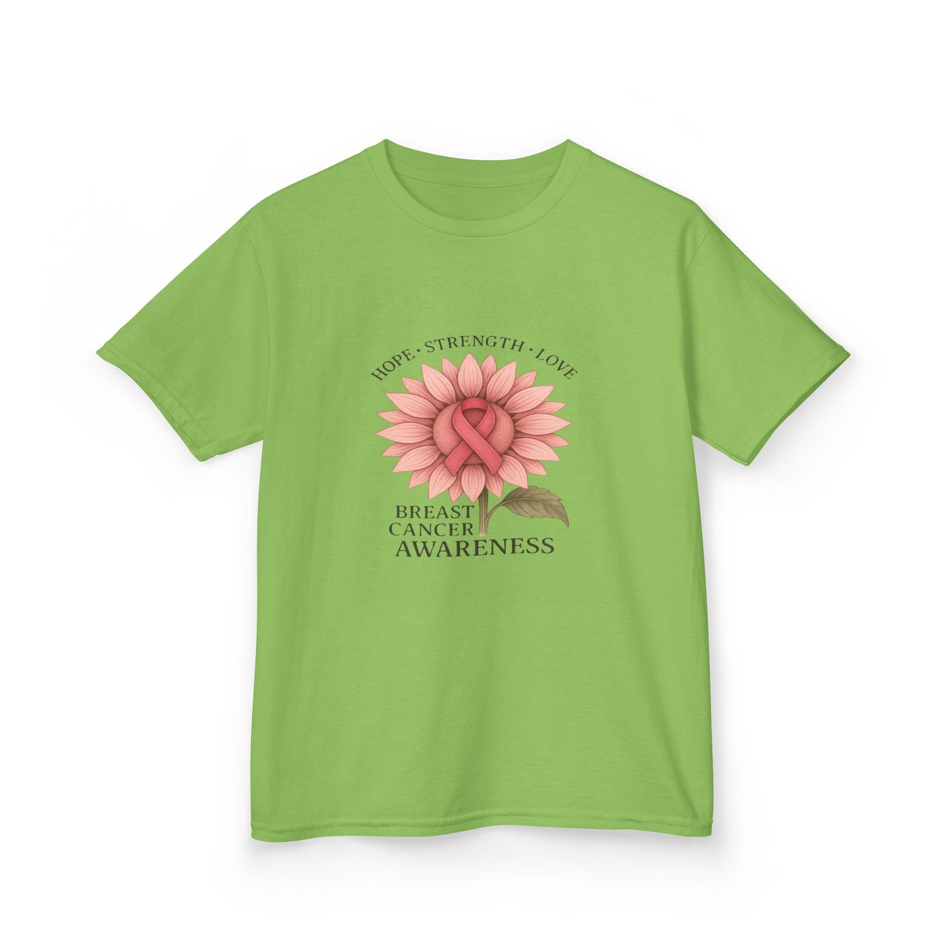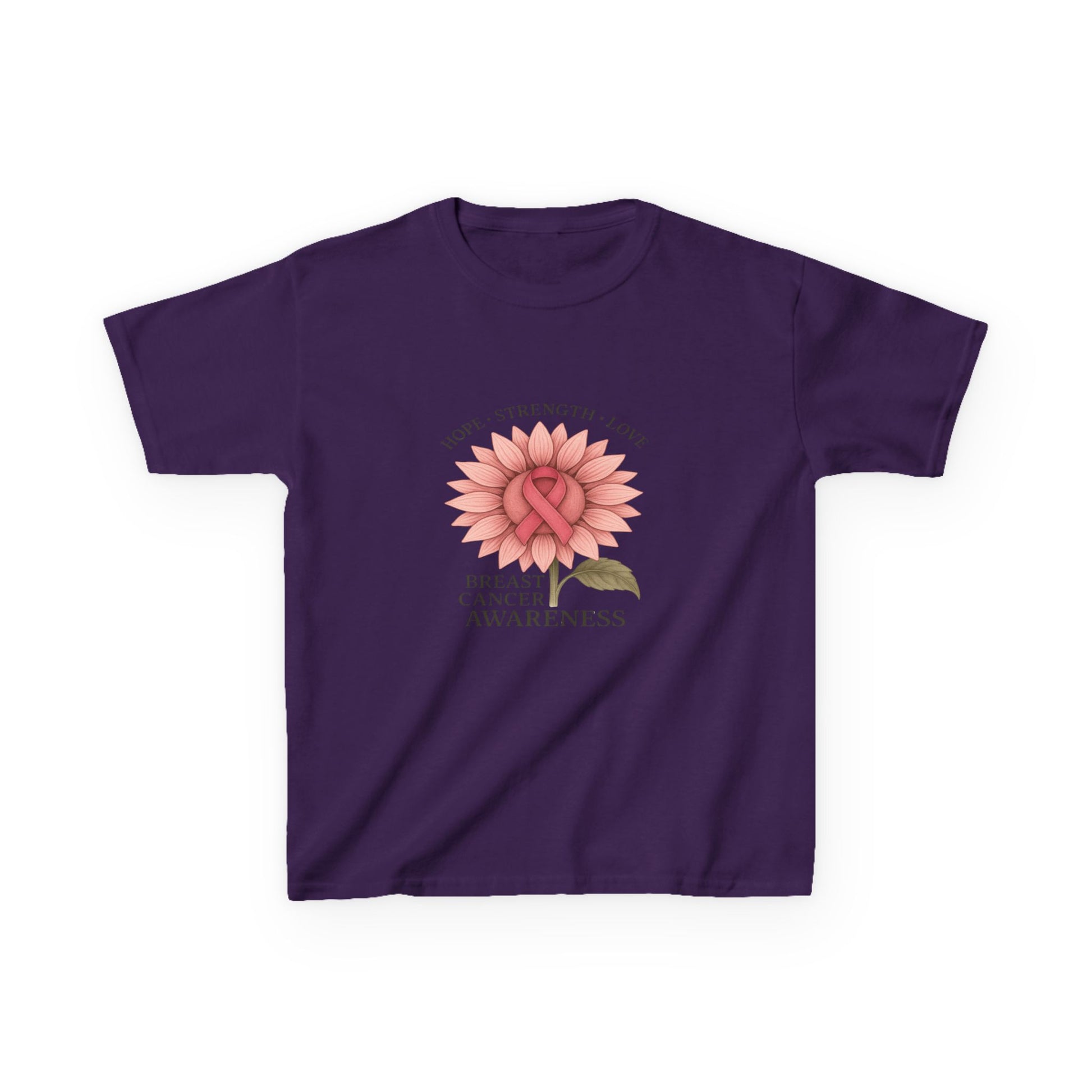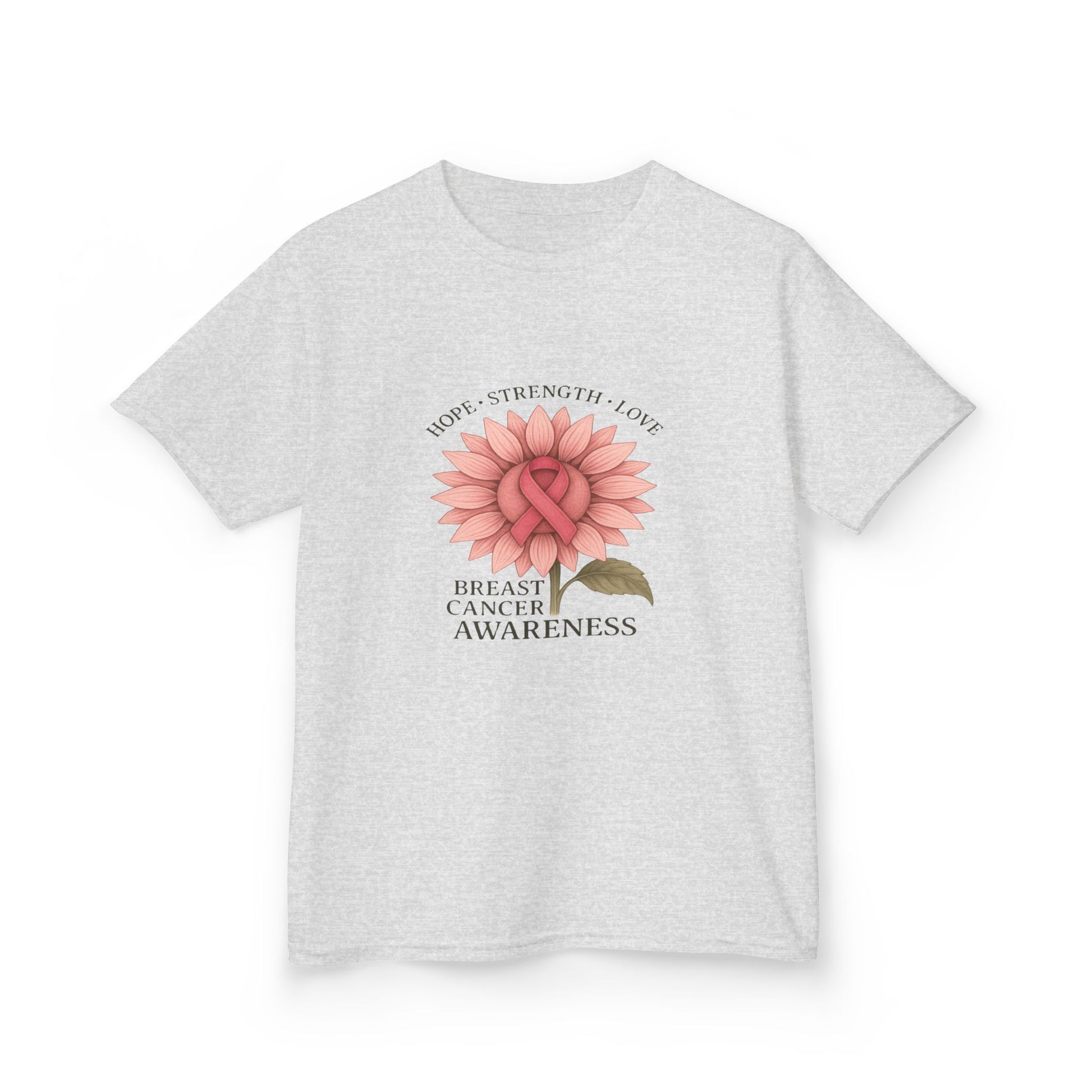 Spread awareness this holiday season with our adorable dinosaur tee! Featuring a pink sunflower with a breast cancer awareness ribbon at its center, this shirt conveys messages of hope, strength, and love. The design is printed on a soft, comfortable tee, perfect for kids. It's a thoughtful gift and a fun way to show support during Breast Cancer Awareness month and beyond.