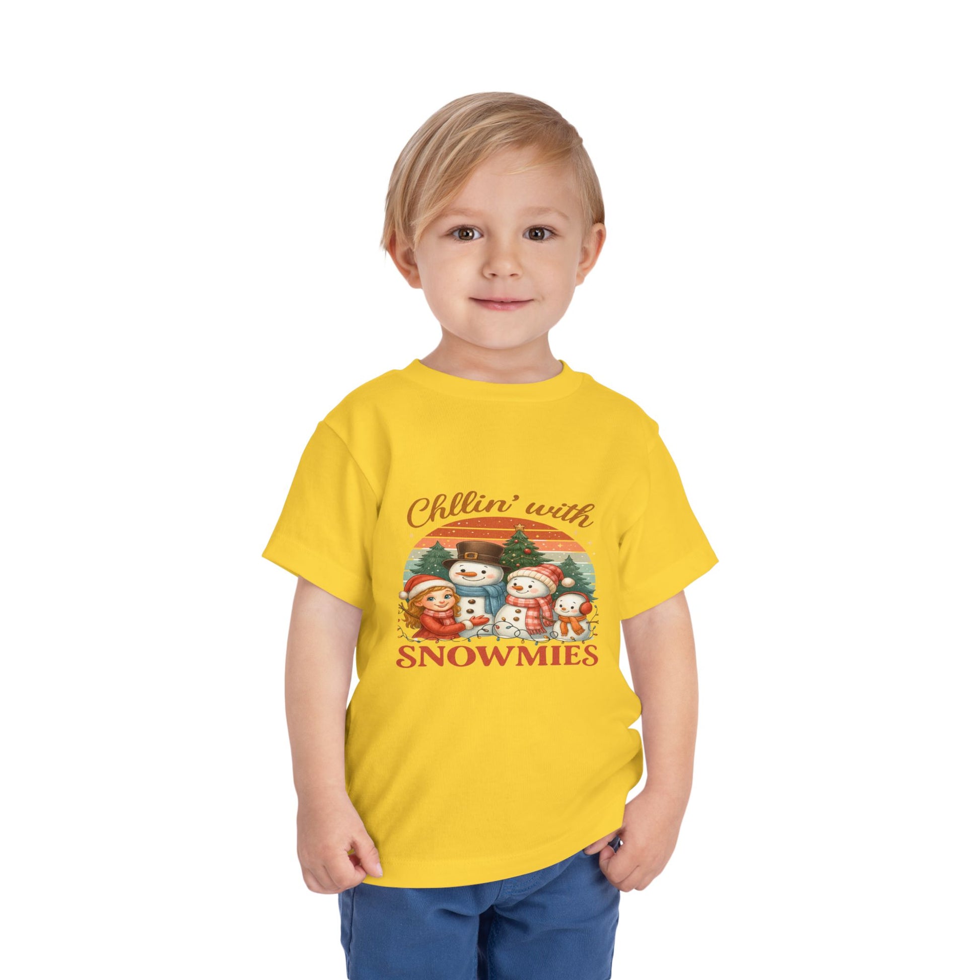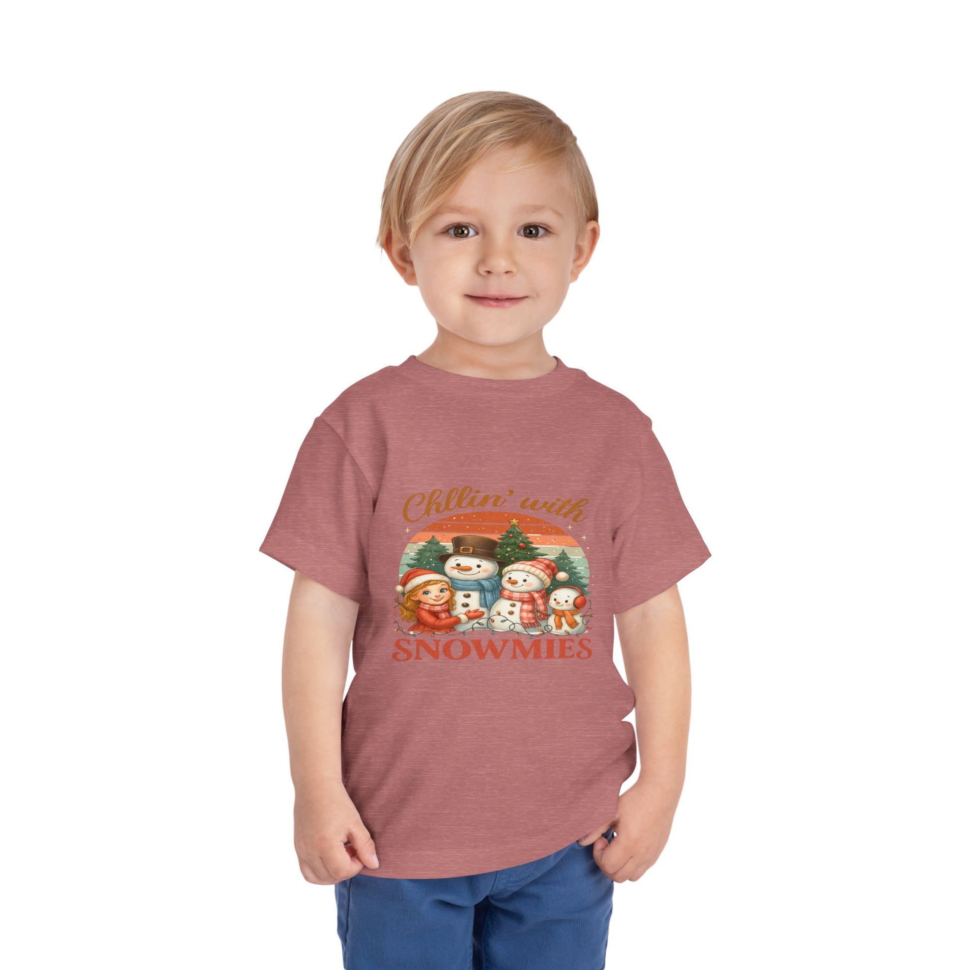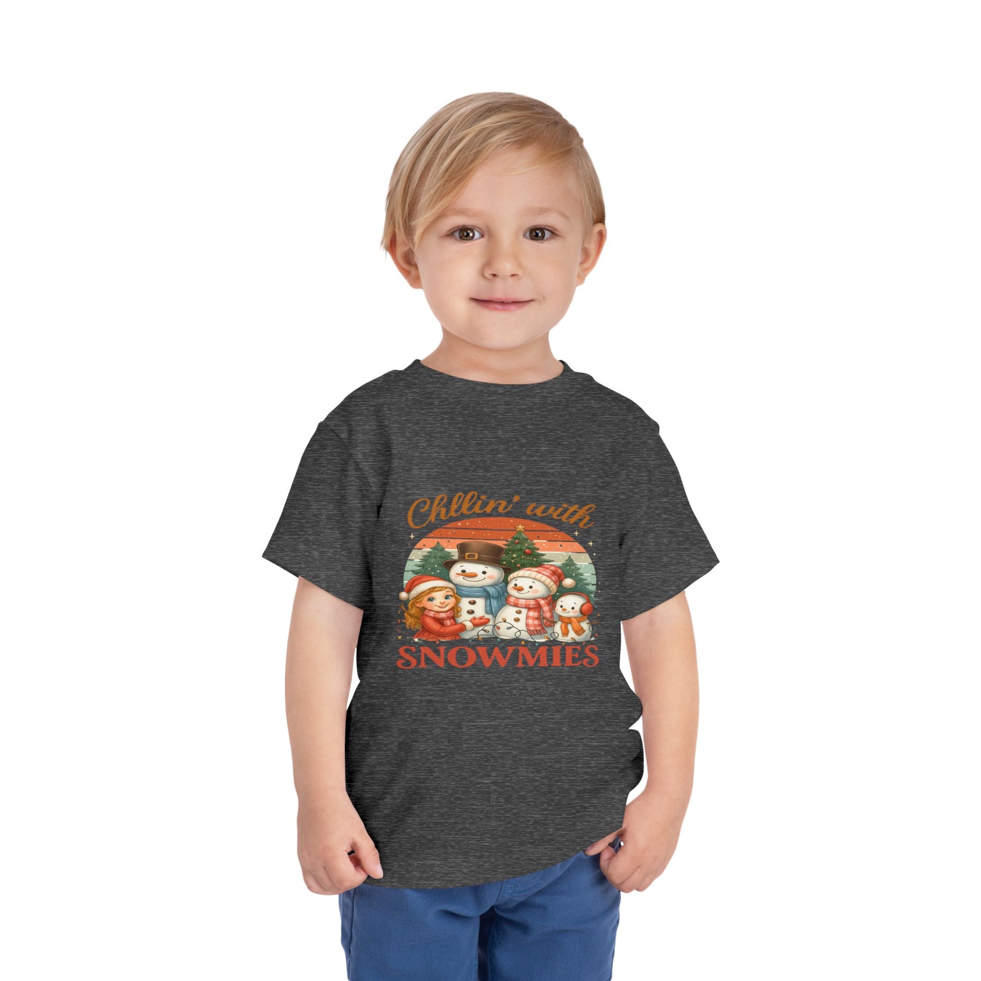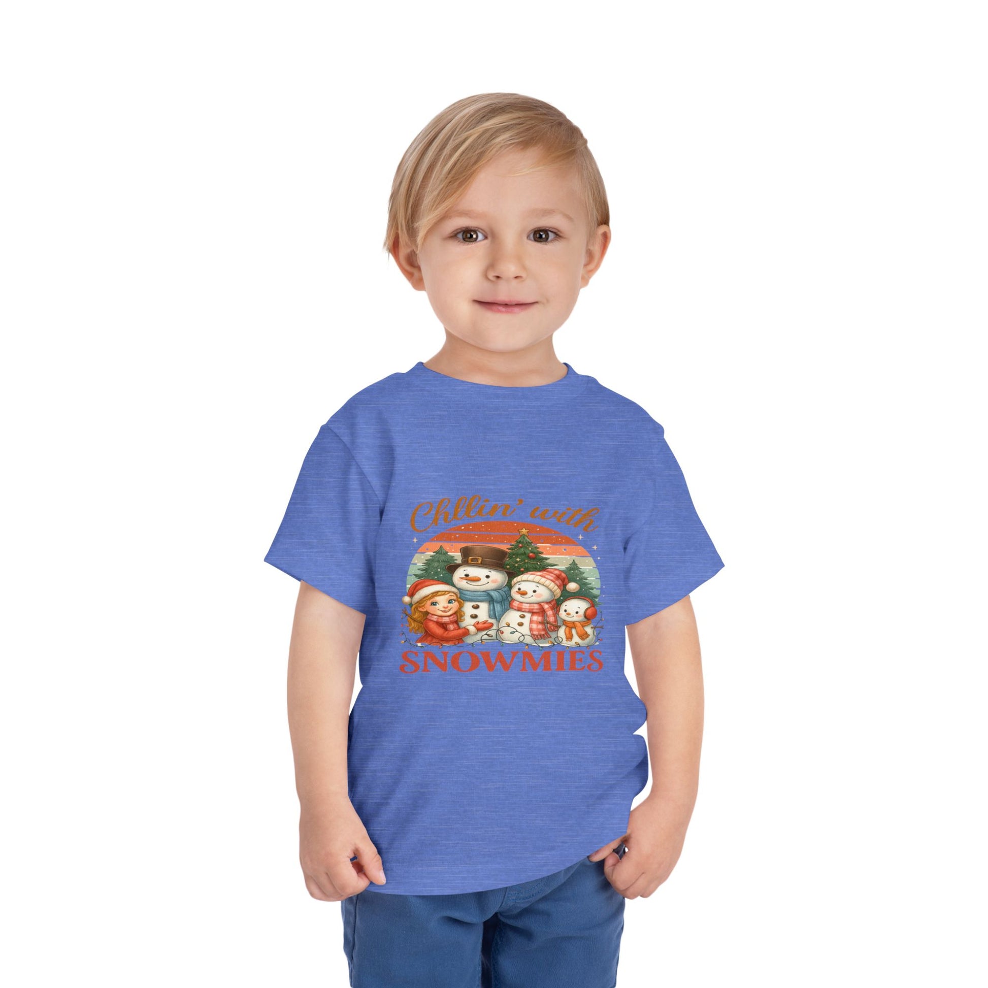 Spread holiday cheer with this adorable toddler Christmas tee! Featuring a whimsical illustration of snowmen and a little girl, this shirt is perfect for the season. Made from soft, comfortable fabric, it's a must-have for your little one's Christmas wardrobe. A perfect gift for any child!