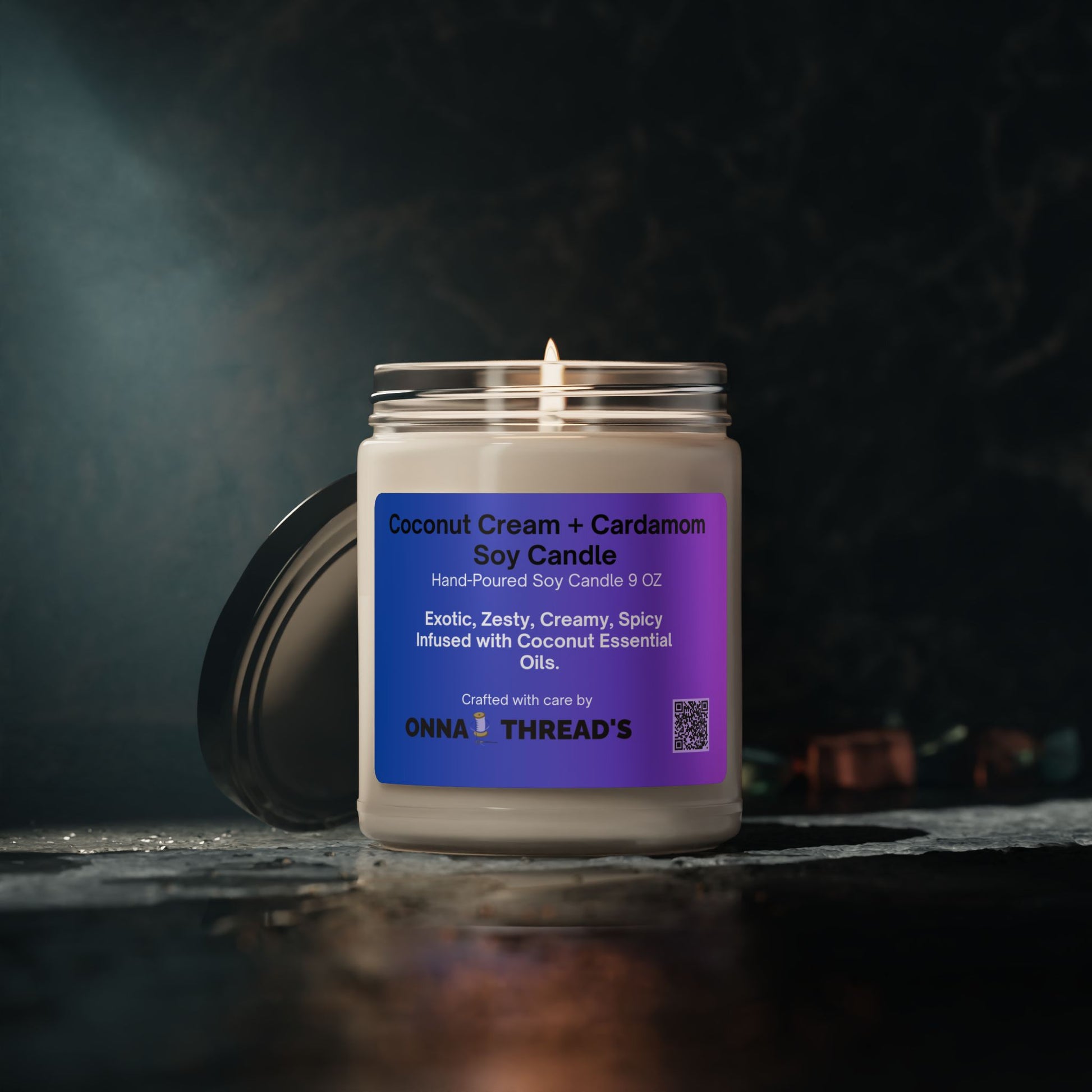 Coconut Cream + Cardamom Soy Candle, 9oz | Exotic Relaxation, Home Decor, Gifts for Her, Aromatherapy, Wedding Favors