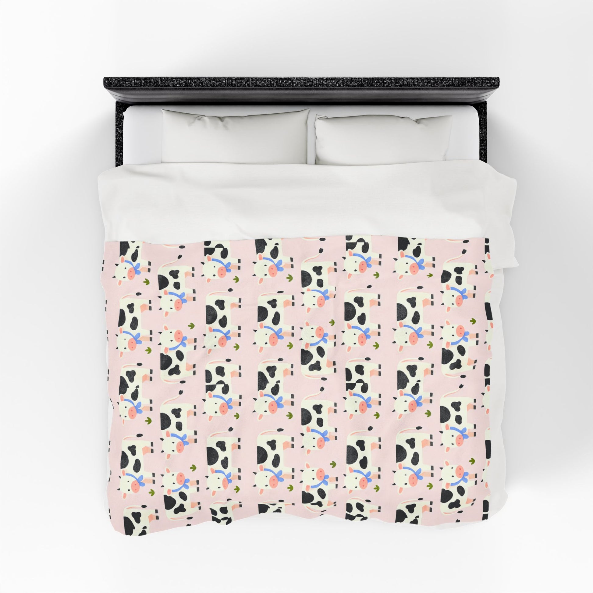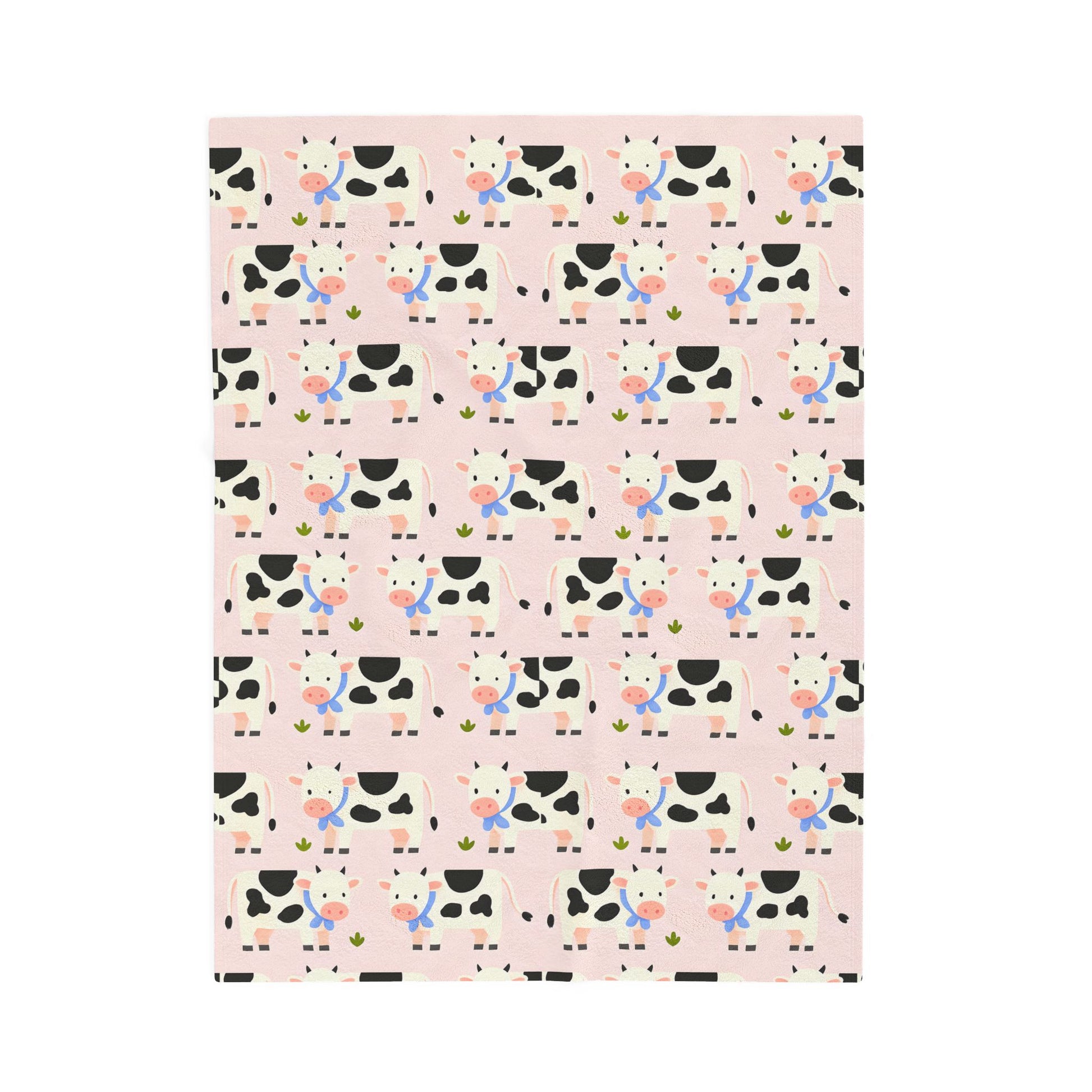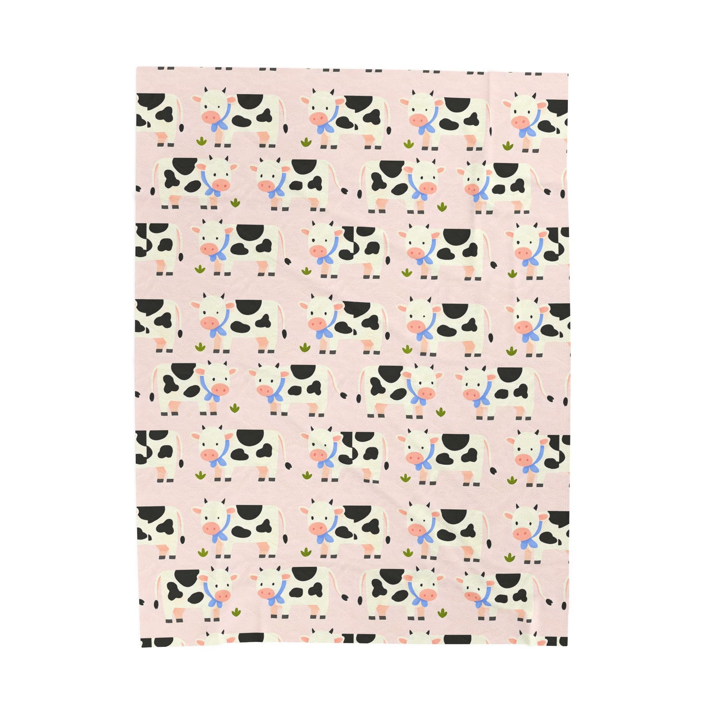 Cow Print Velveteen Plush Blanket, Cute Baby Throw, Nursery Decor, Cozy Gift, Kid’s Room
