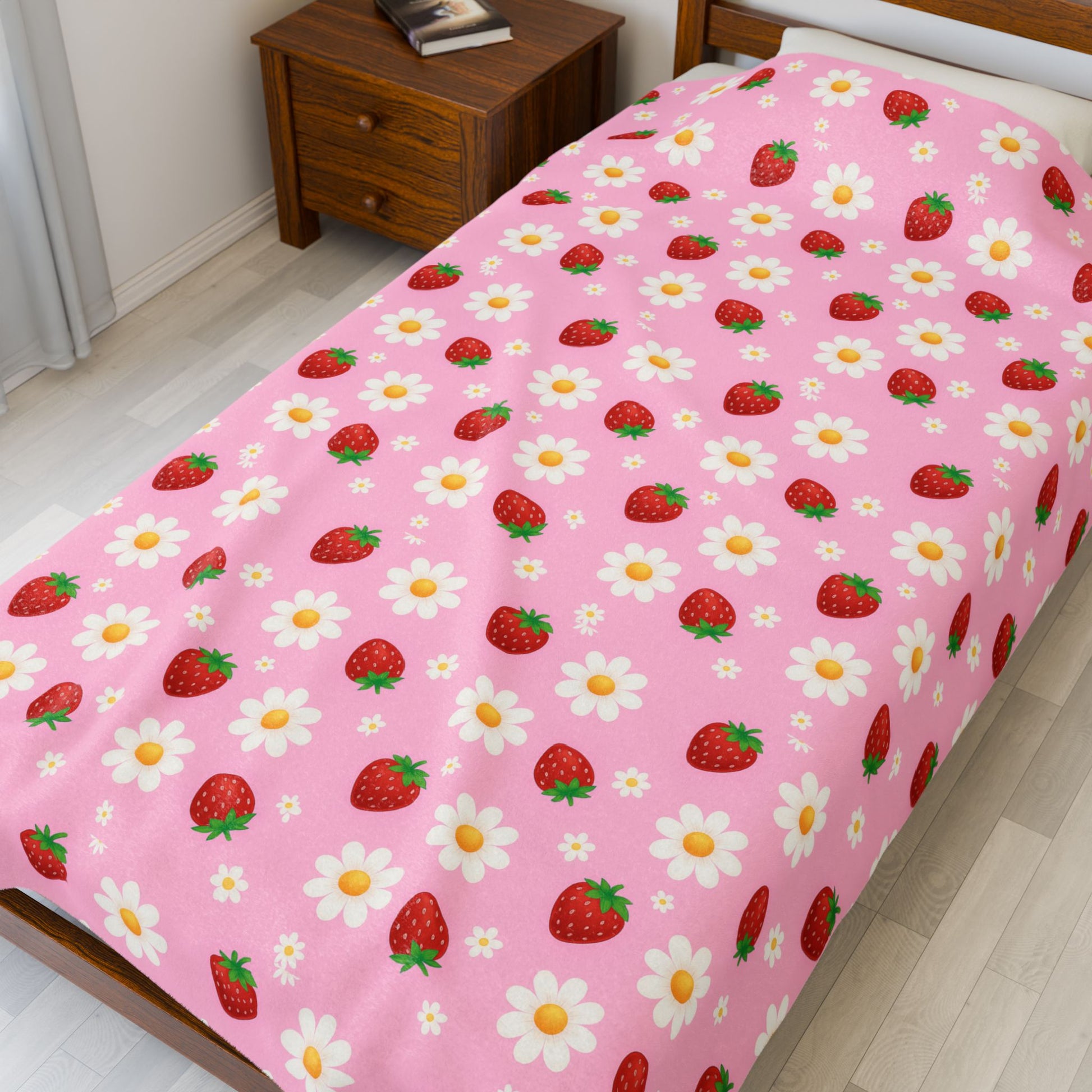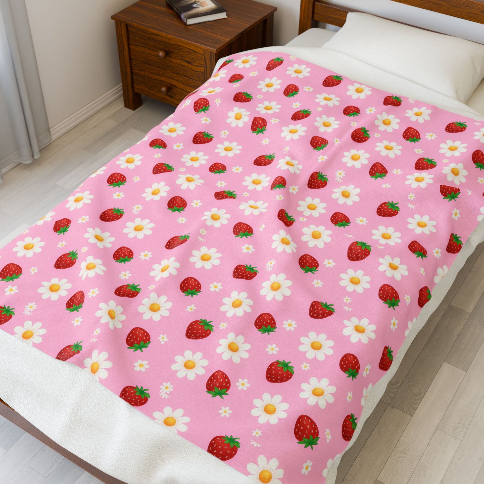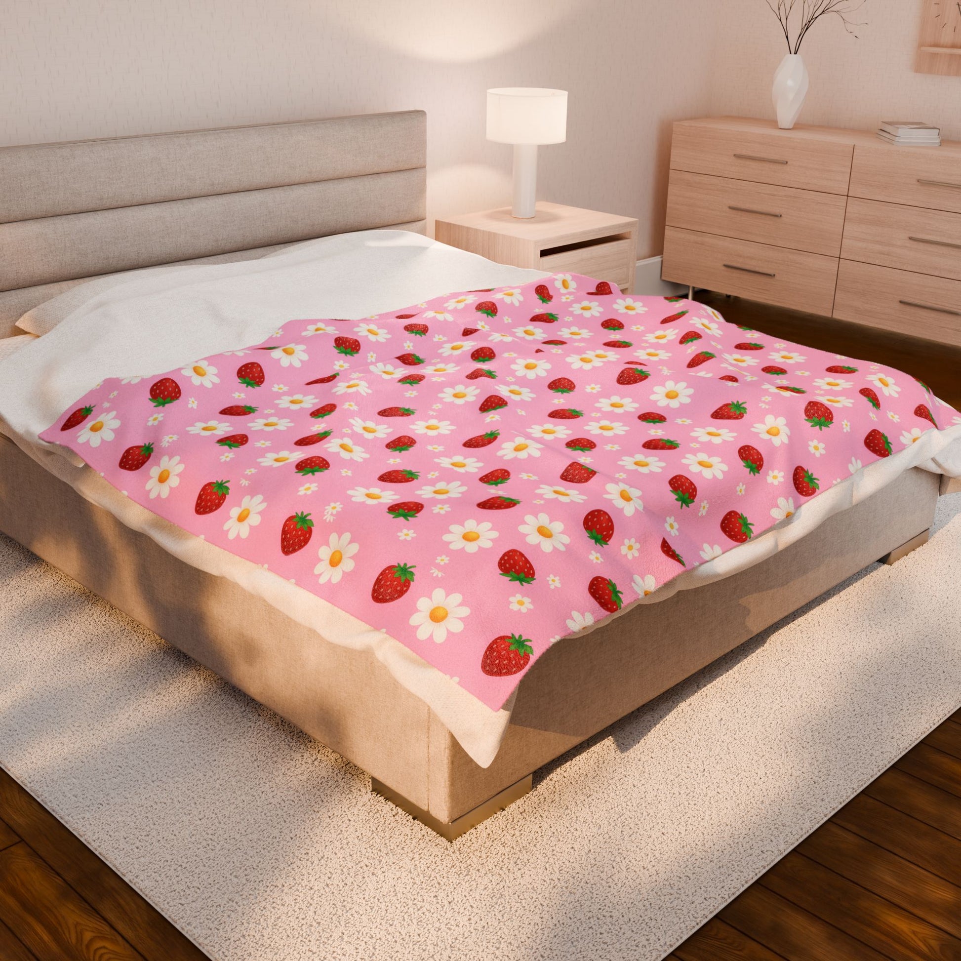 Wrap yourself in comfort with this delightful Plush Blanket, designed to bring a touch of warmth and cheer to your life. Featuring a whimsical strawberry and daisy pattern, this blanket radiates a joyful and cozy vibe, perfect for snuggling on chilly evenings or adding a pop of fun to your home decor. Ideal for anyone who appreciates softness and style, it makes a wonderful gift for friends and family during holidays and special occasions like birthdays, housewarmings, or simply as a treat for yourself. Whether you're decorating your living room or creating a cozy reading nook, this blanket is your perfect companion for relaxation and warmth.