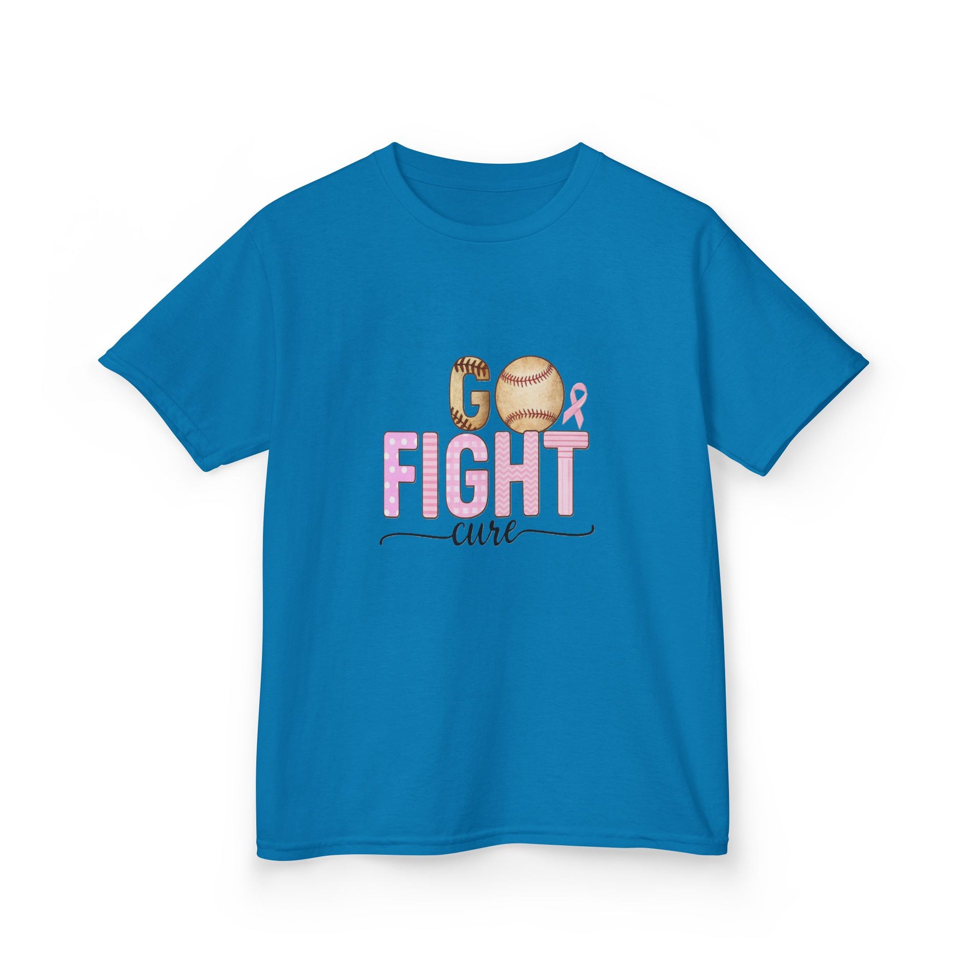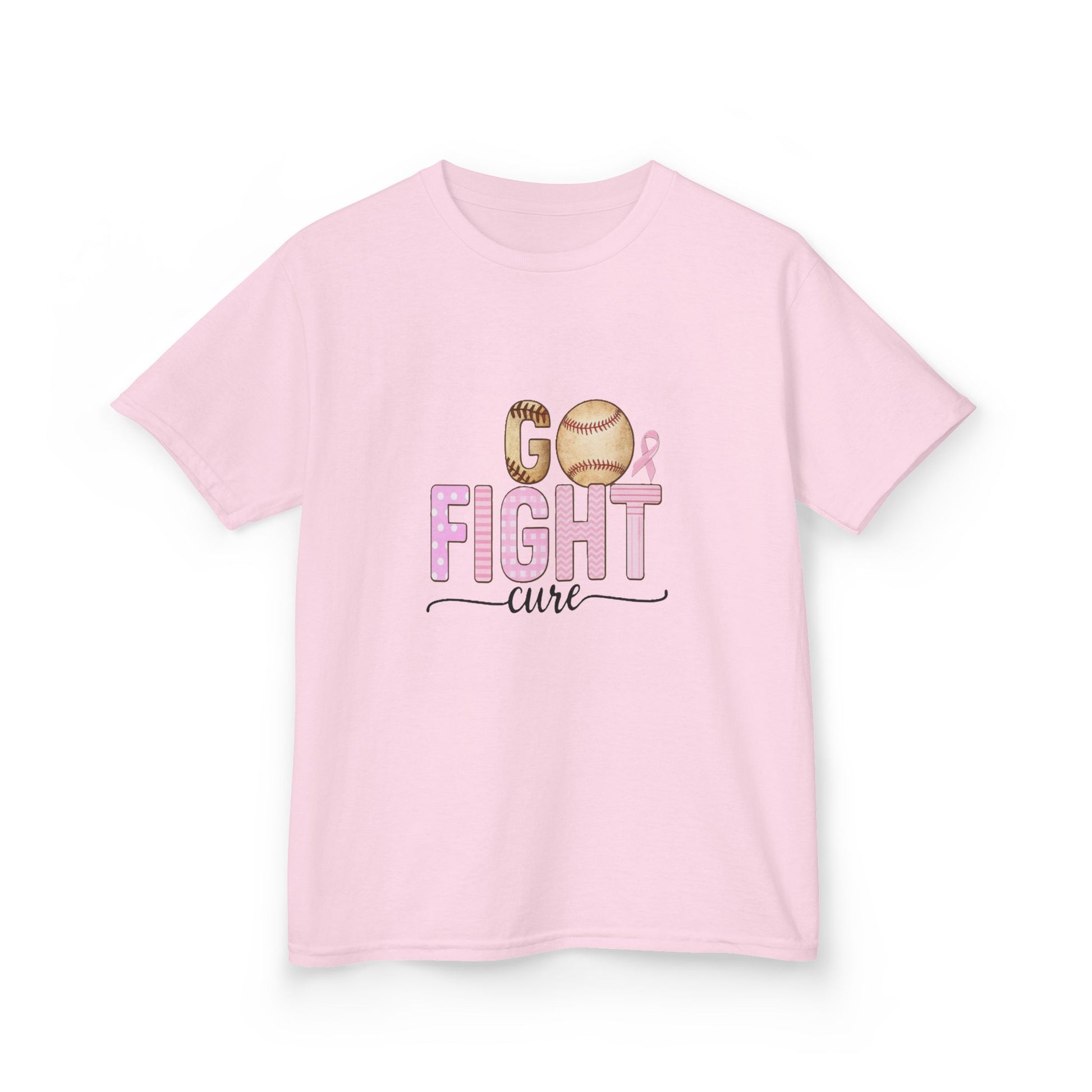 Show your support this holiday season with our exclusive "Go Fight Cure" tee! Featuring a unique baseball-themed design with a pink ribbon, this shirt combines the love of the game with breast cancer awareness. The vibrant pink "FIGHT" letters and baseball-inspired "GO" create a powerful message. Perfect for Christmas, parties, or everyday wear, this comfortable tee makes a meaningful gift for kids and a fun way to spread cheer and awareness.