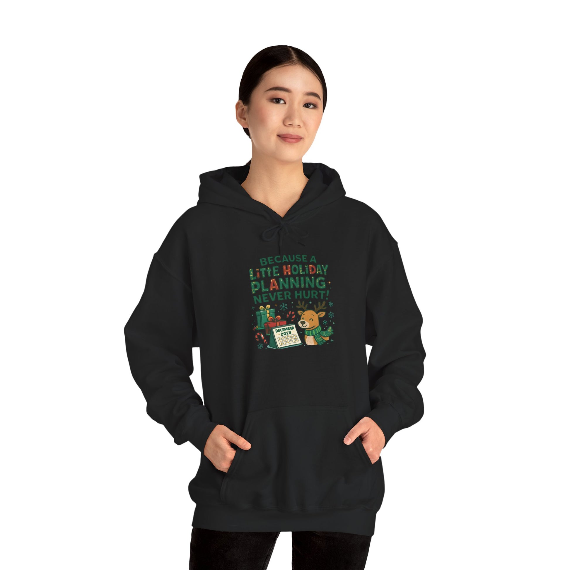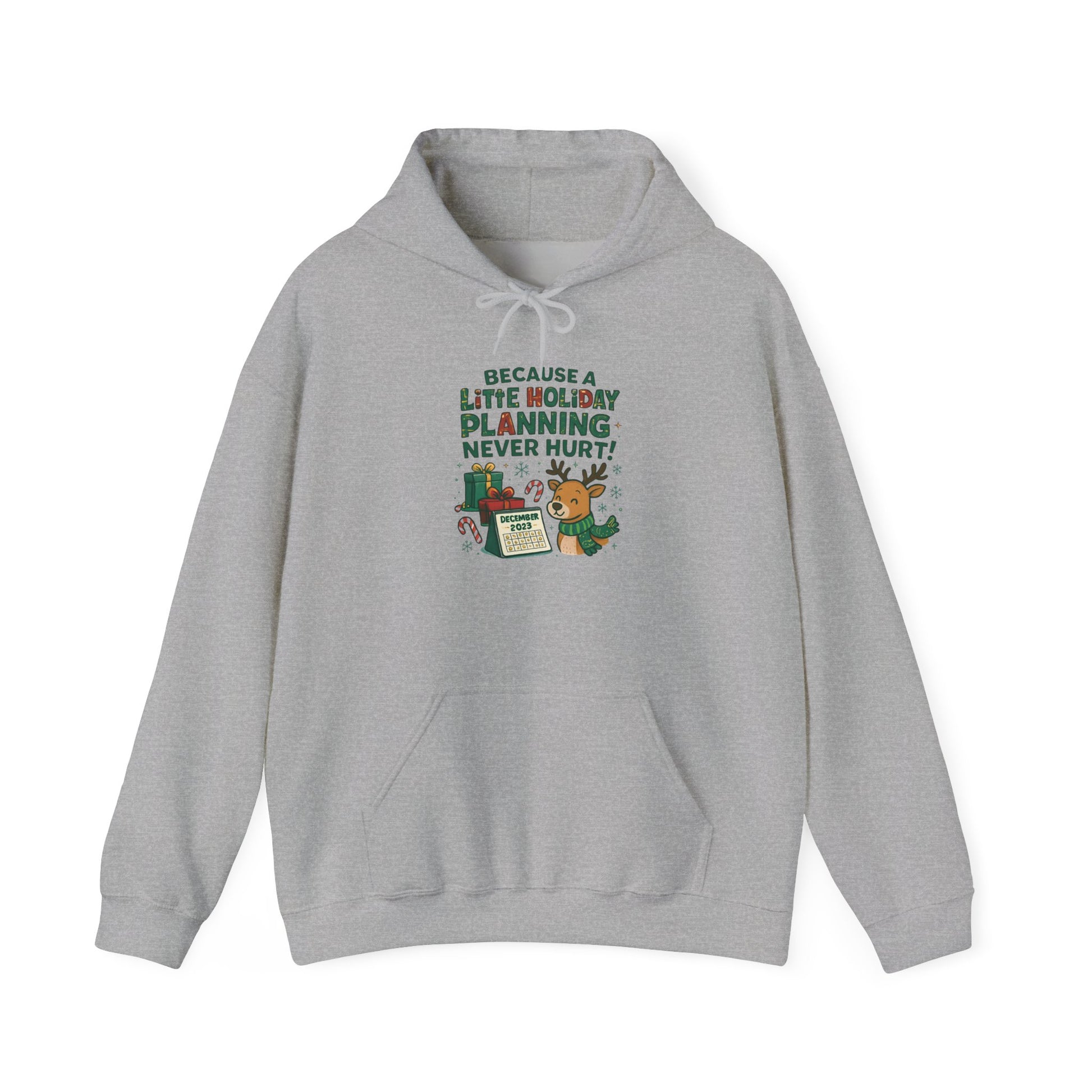 Holiday Planning Hoodie — "A Little Holiday Planning Never Hurt" Cute Reindeer Christmas Sweatshirt