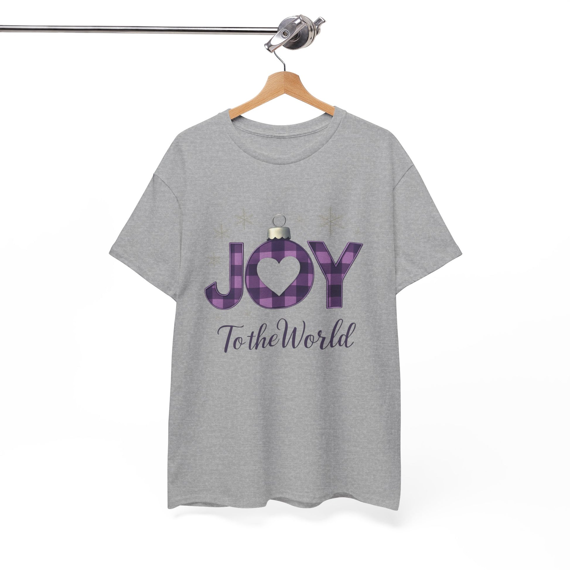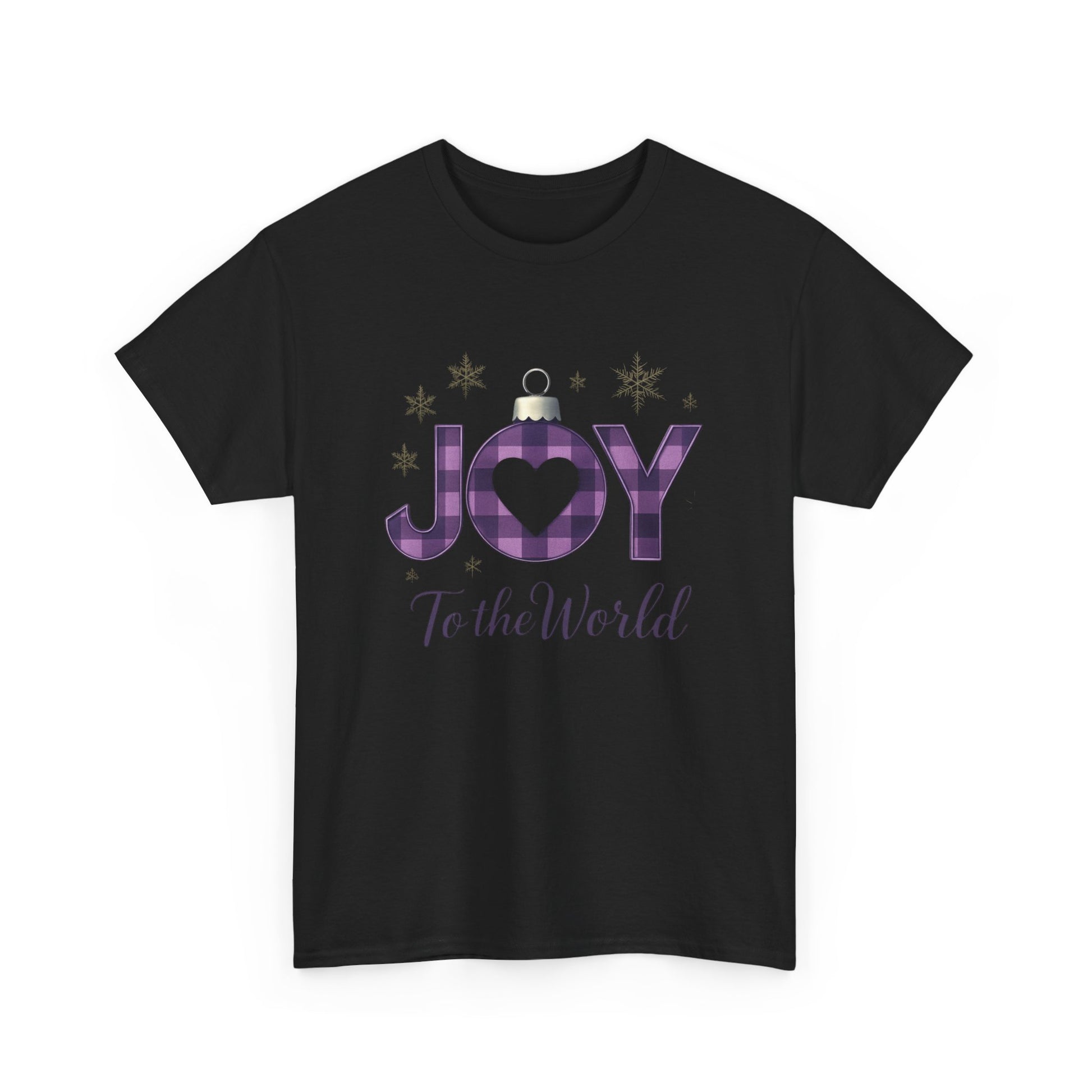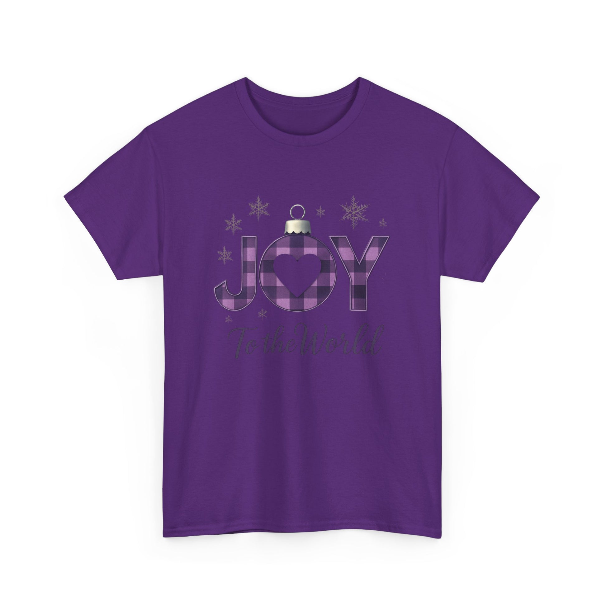Celebrate the season with this inspiring tee! Featuring "JOY to the World" in festive ornament-style letters, including a purple and black plaid "O" with a heart, this shirt blends holiday cheer with a message of hope. The elegant cursive adds a touch of grace. Perfect for spreading awareness and supporting a great cause. Made from comfortable, durable fabric.