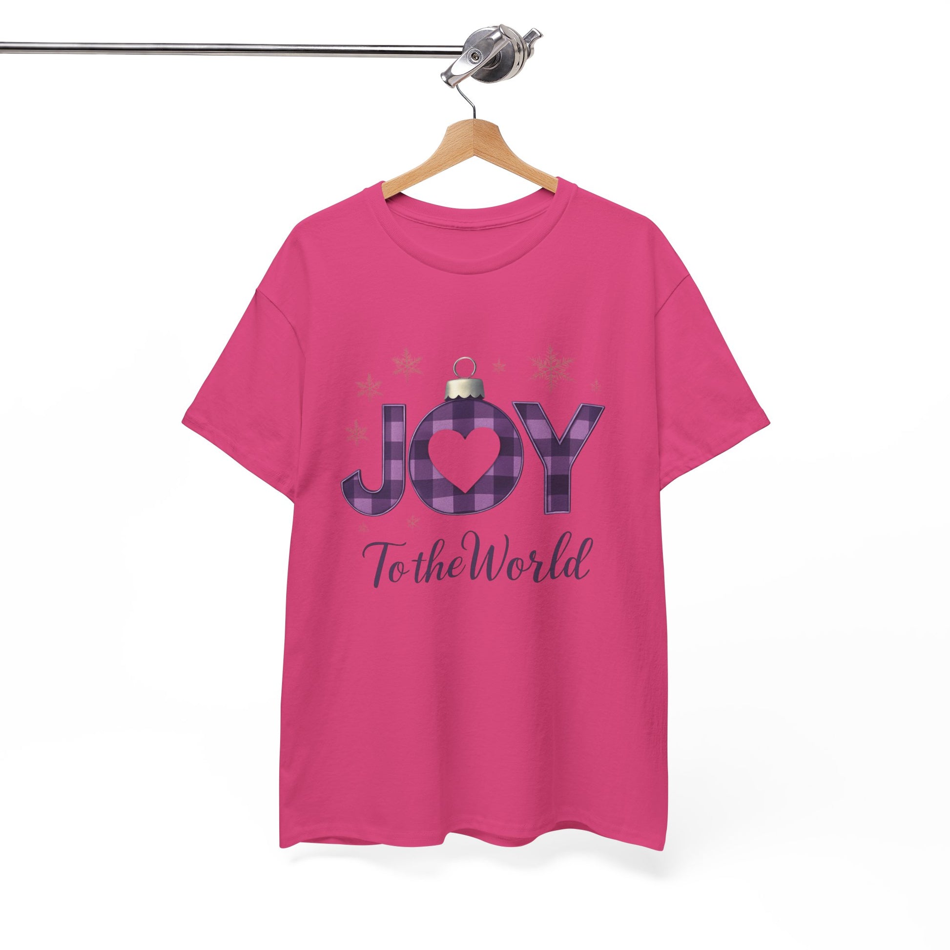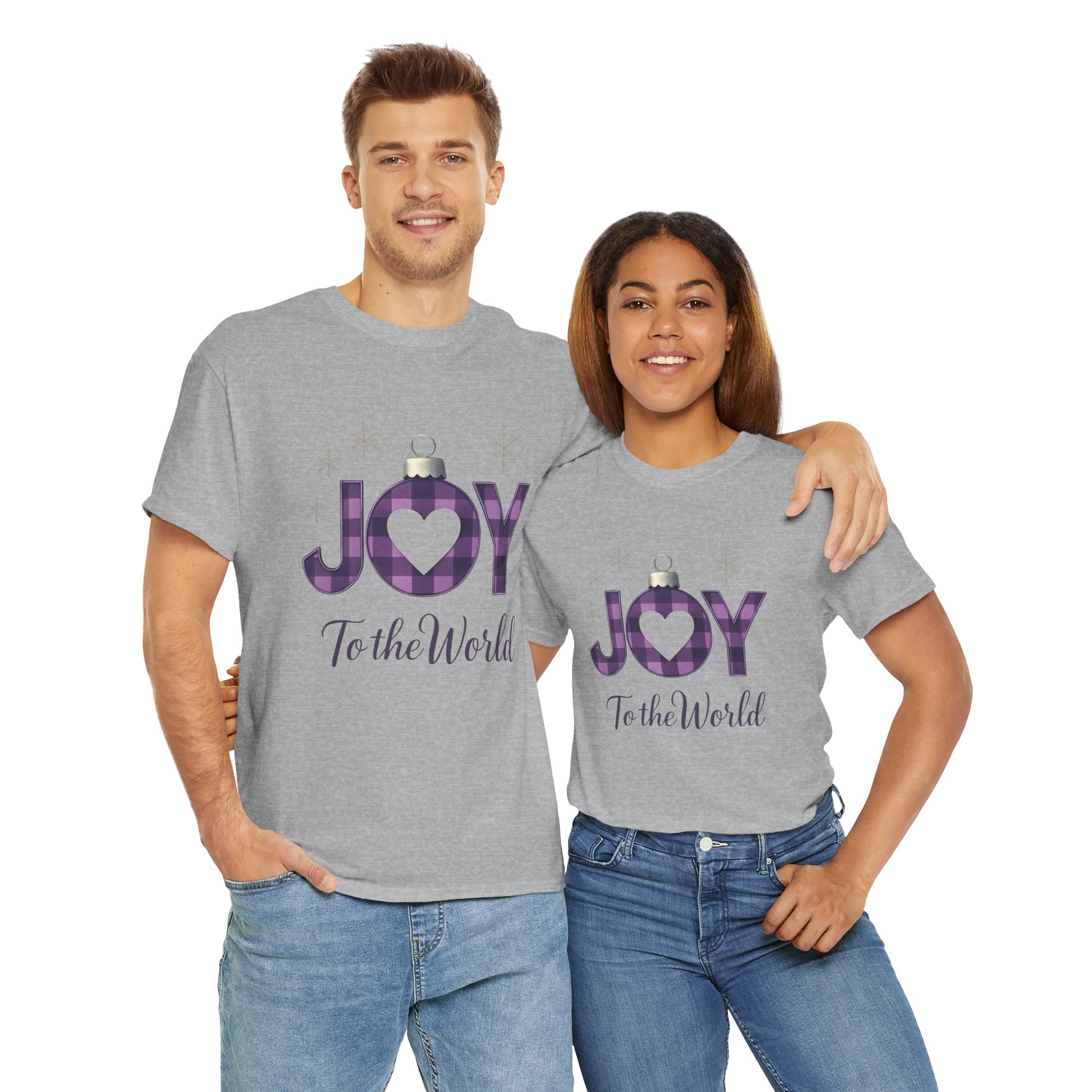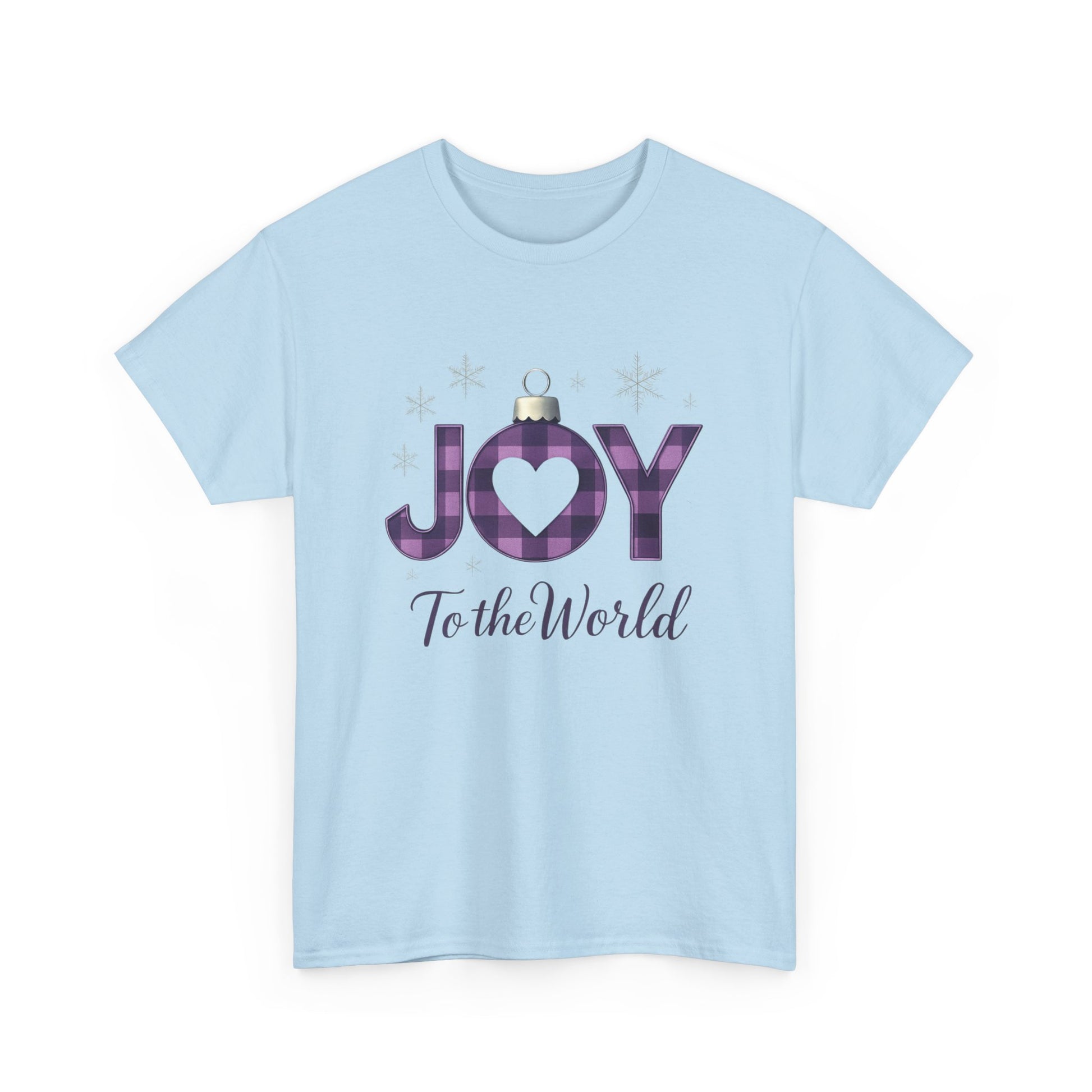 Celebrate the season with this inspiring tee! Featuring "JOY to the World" in festive ornament-style letters, including a purple and black plaid "O" with a heart, this shirt blends holiday cheer with a message of hope. The elegant cursive adds a touch of grace. Perfect for spreading awareness and supporting a great cause. Made from comfortable, durable fabric.