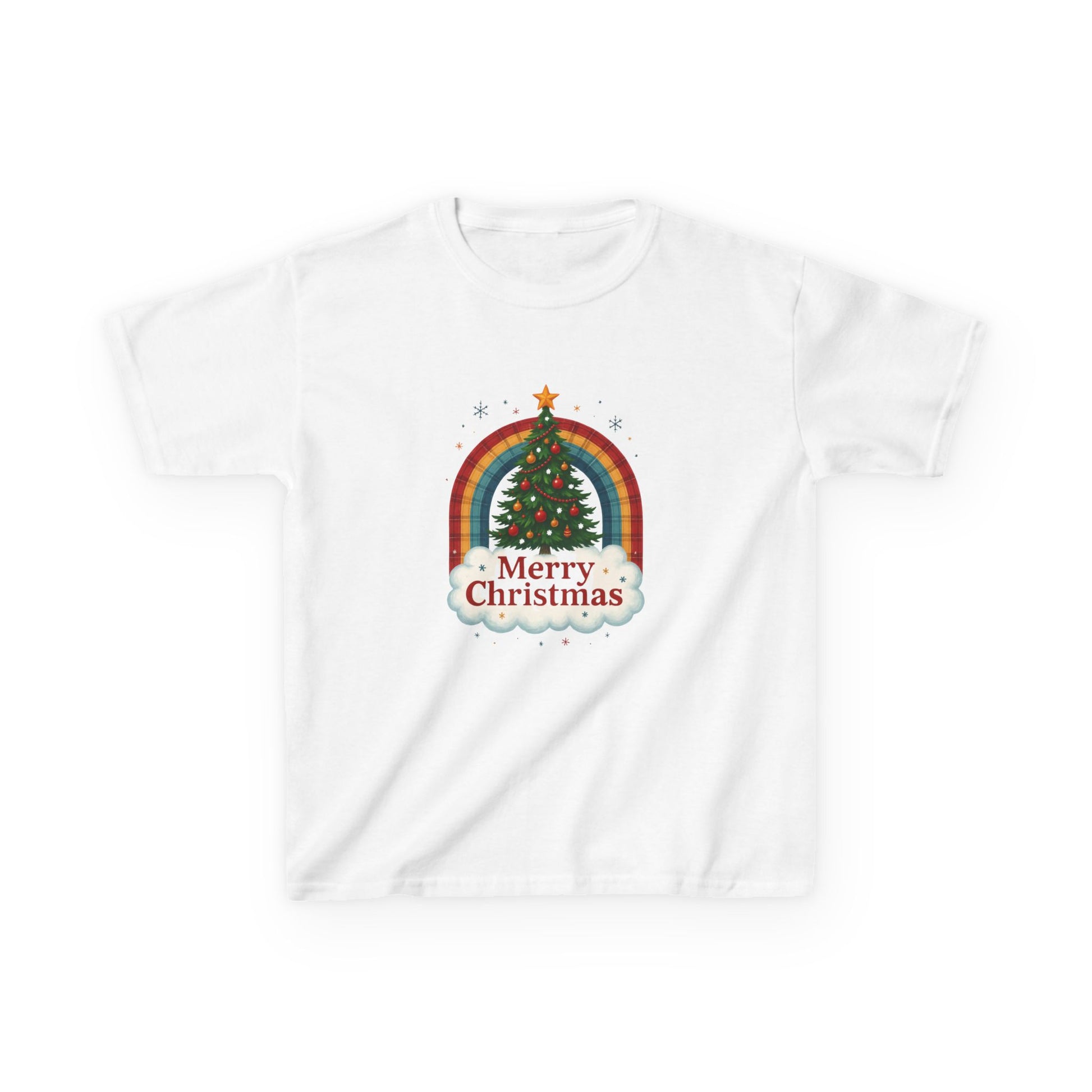 Spread holiday cheer with this adorable Christmas tee! Featuring a festive Christmas tree, rainbow arch, and a playful dinosaur, this shirt captures the joy of the season. The design has a cozy, vintage aesthetic with warm colors and a touch of whimsy. Perfect for holiday parties, family gatherings, or as a delightful gift for kids. Made from soft, comfortable fabric for all-day wear.