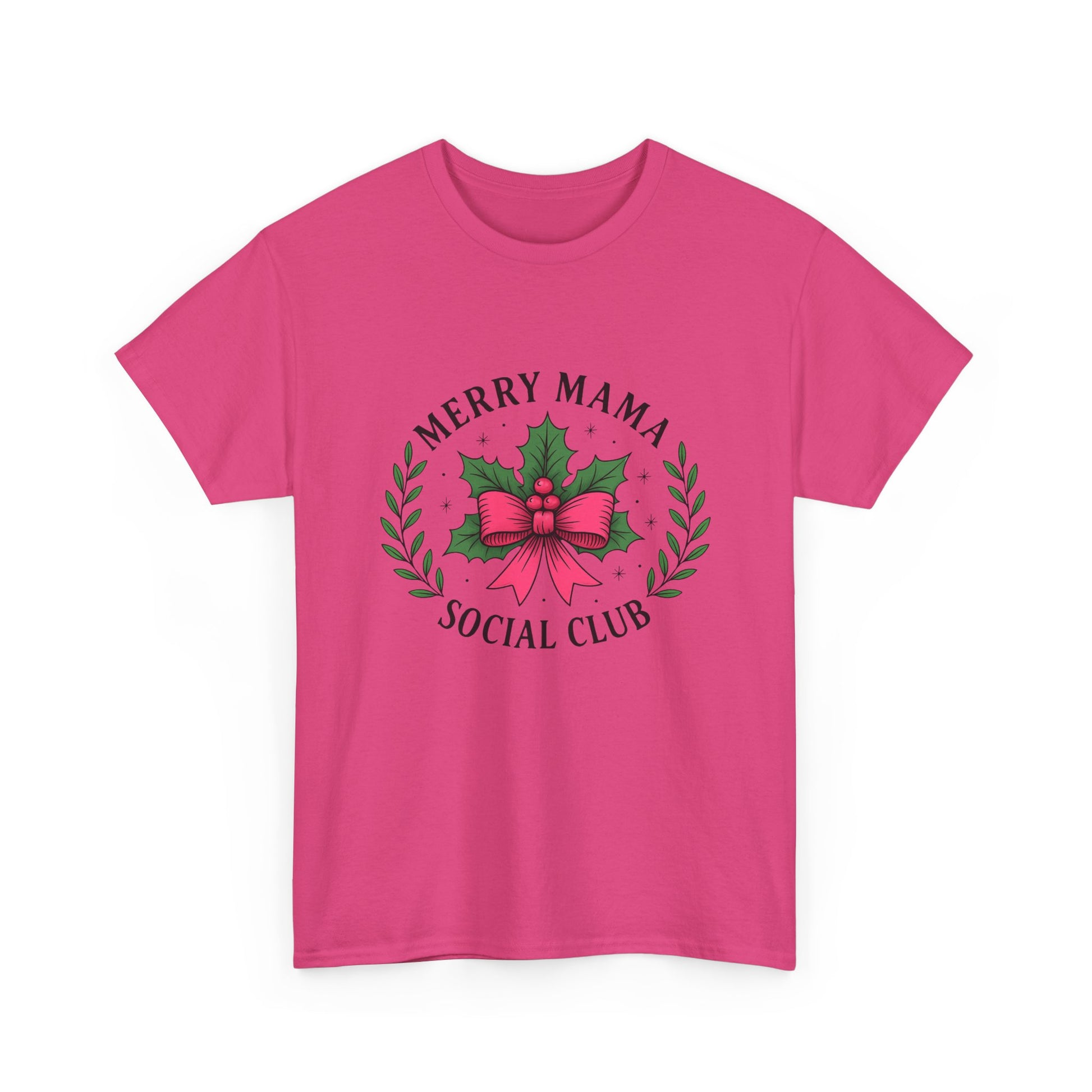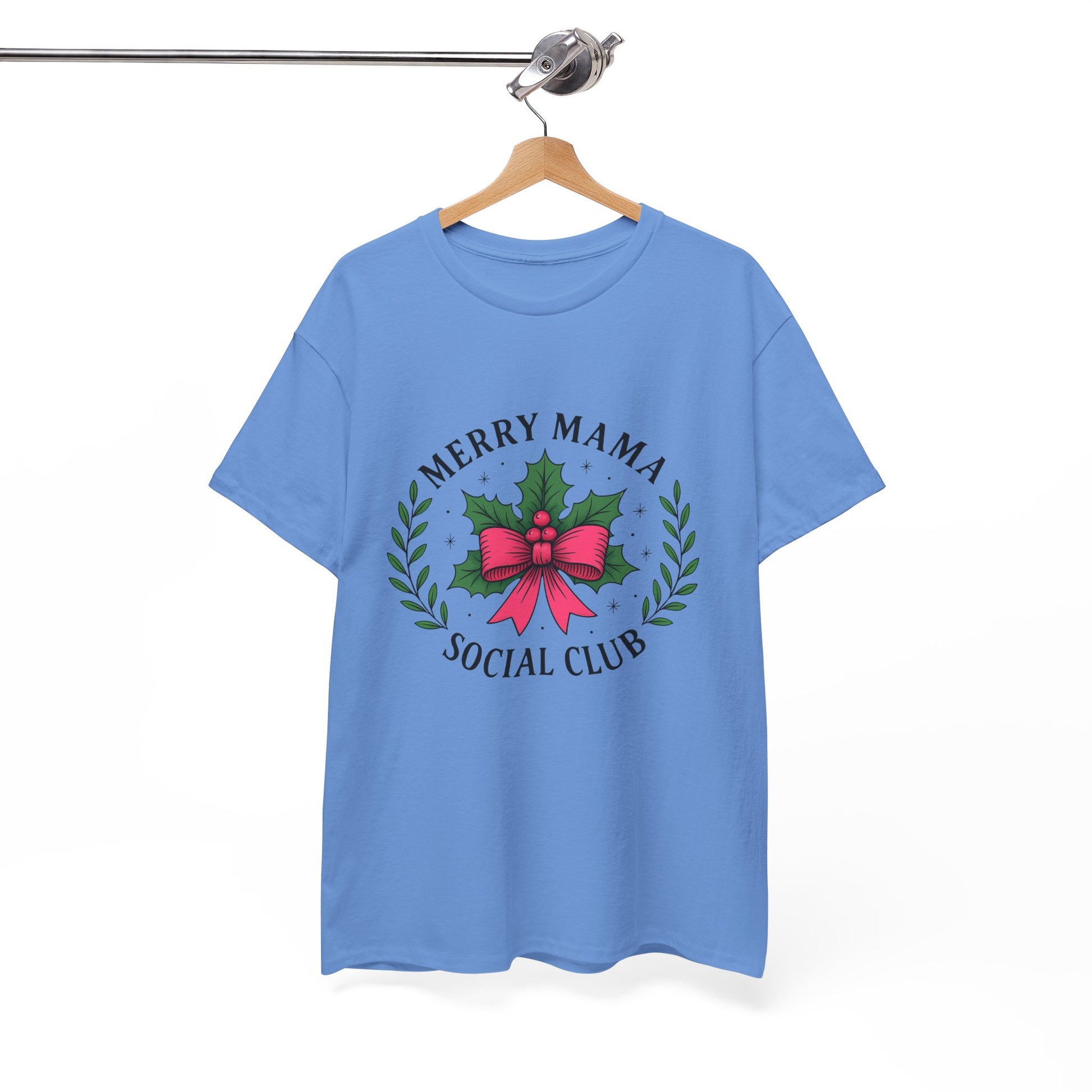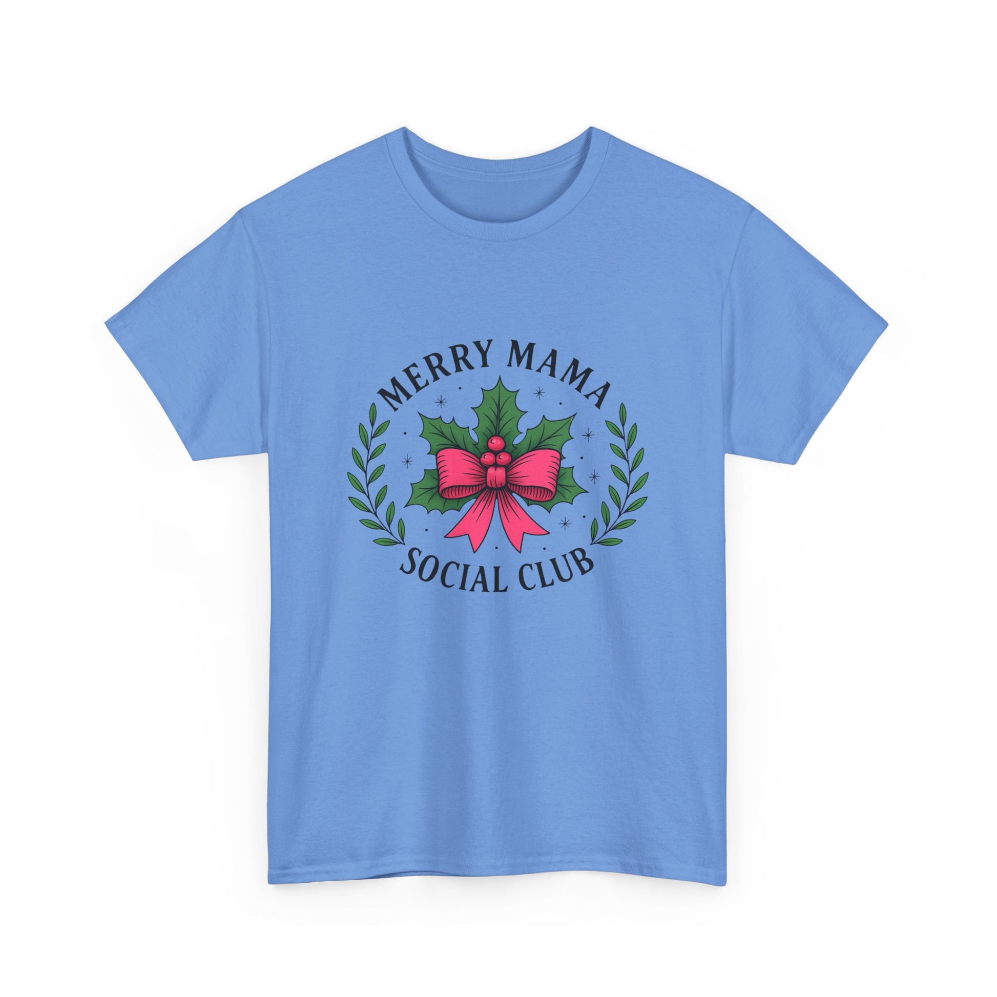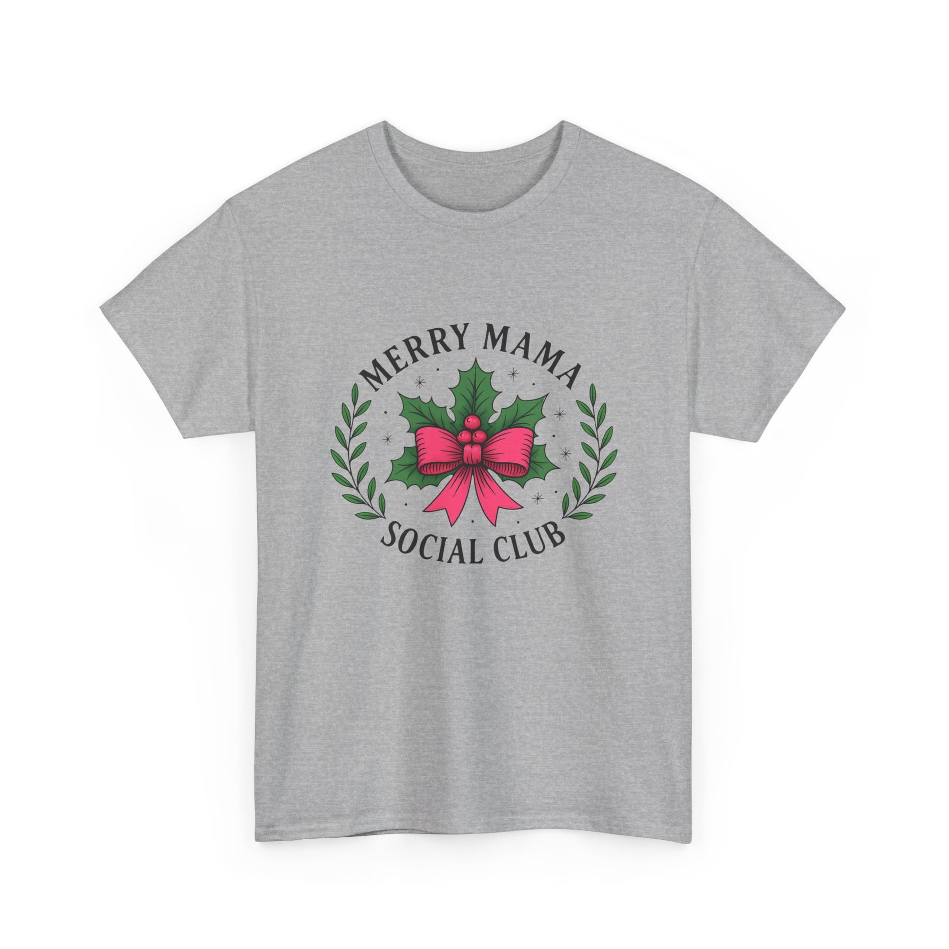 Celebrate the season with our Merry Mama Social Club tee! This festive design features a holly and wreath motif with 'MERRY MAMA SOCIAL CLUB' text, perfect for spreading holiday cheer. The soft, comfortable fabric makes it an ideal gift for any mom or loved one.