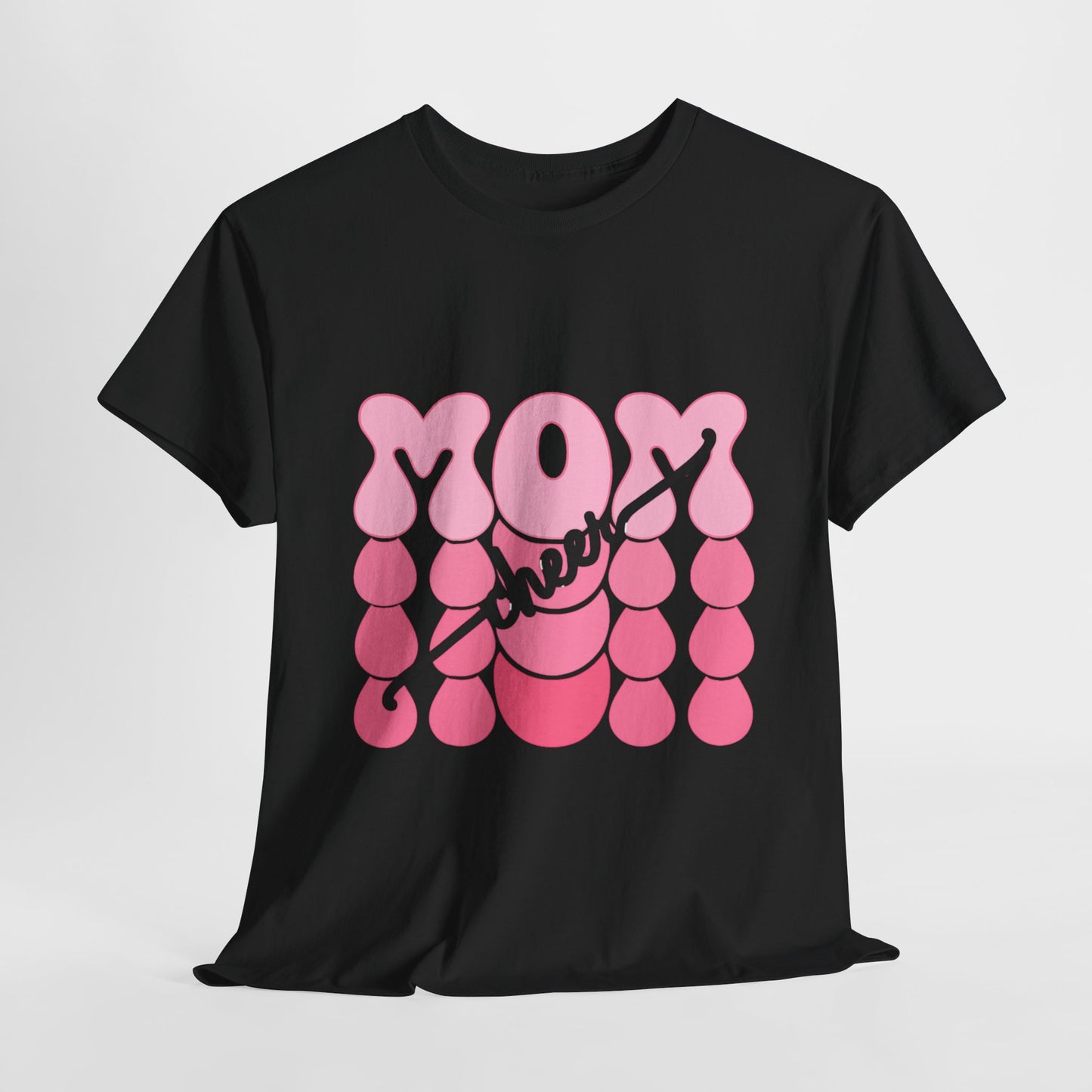 MOM Cheer – Pink Bubble Letter Spirit Tee