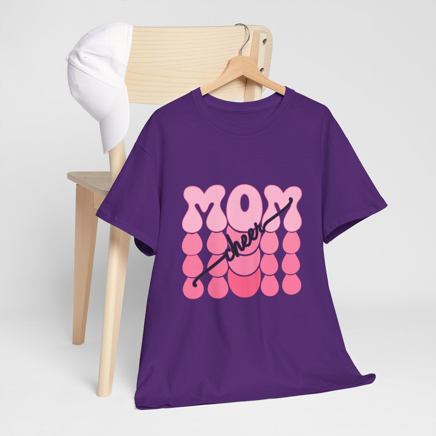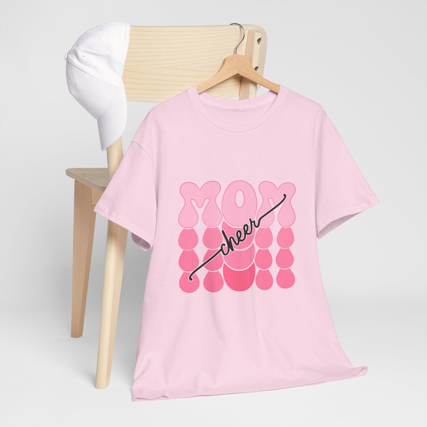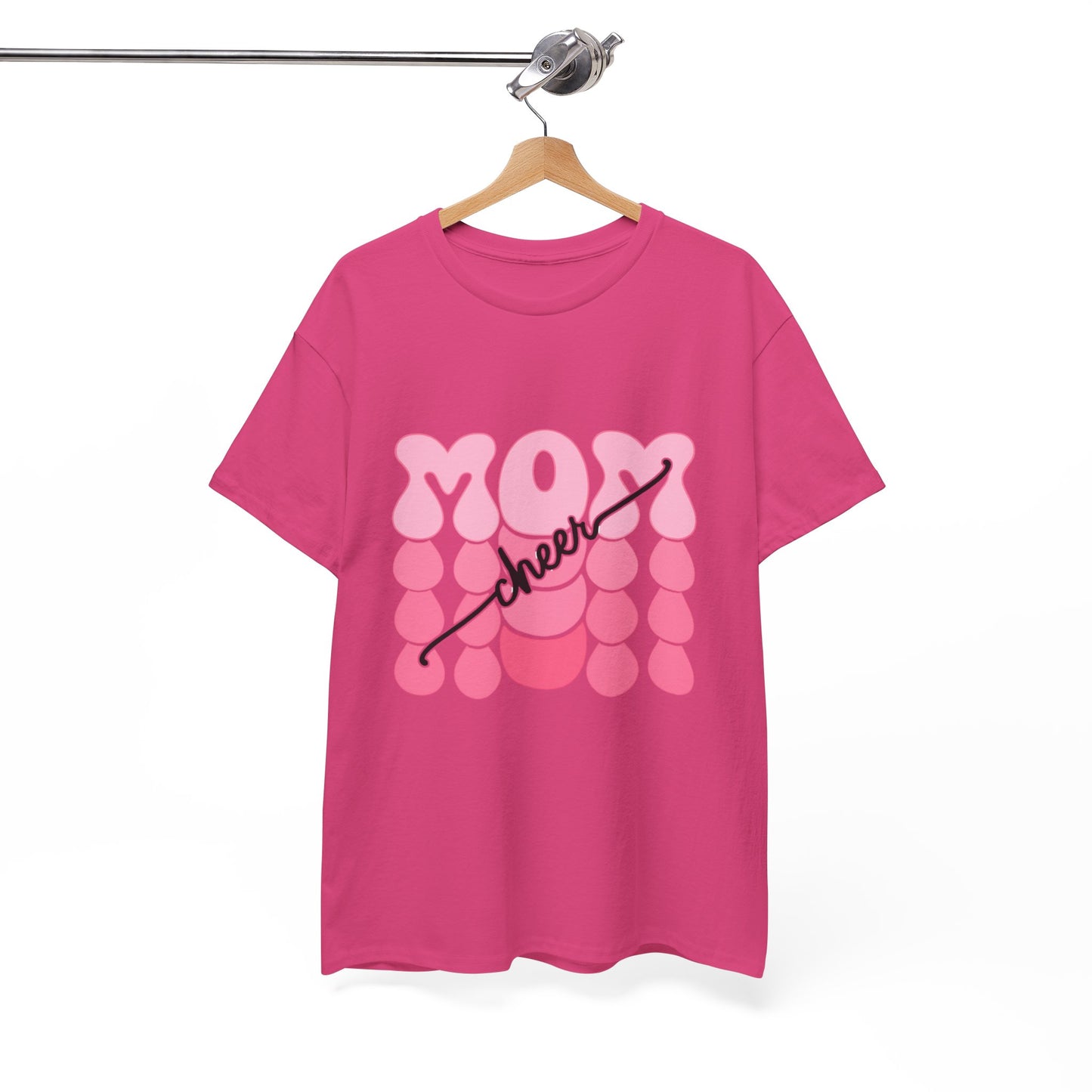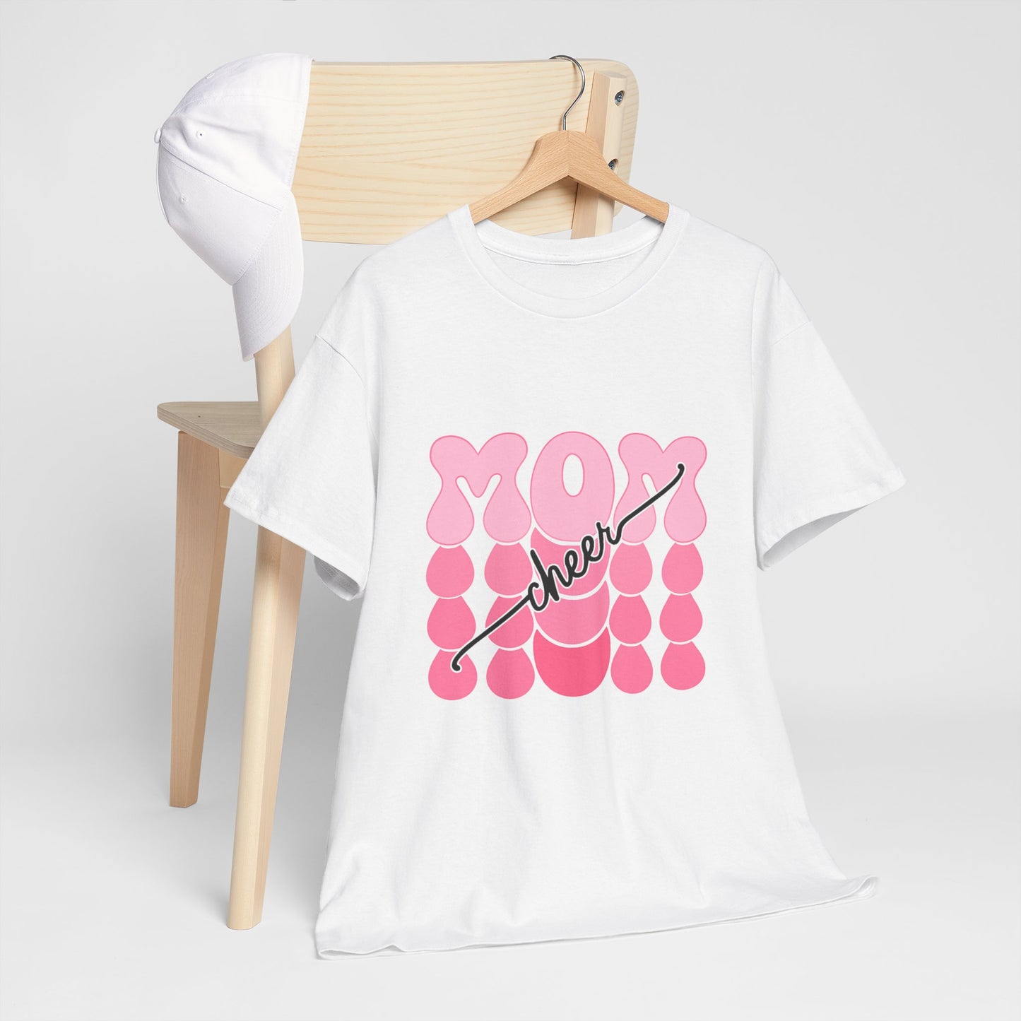 Bring the pep to the sidelines with this bright white t-shirt featuring bold pink bubble‑style “MOM” lettering accented by flowing “cheer” script. Fun, feminine, and full of team spirit, it’s the perfect game day uniform for proud cheer moms everywhere. Lightweight, comfortable, and ready to rally from the first cheer to the final score.