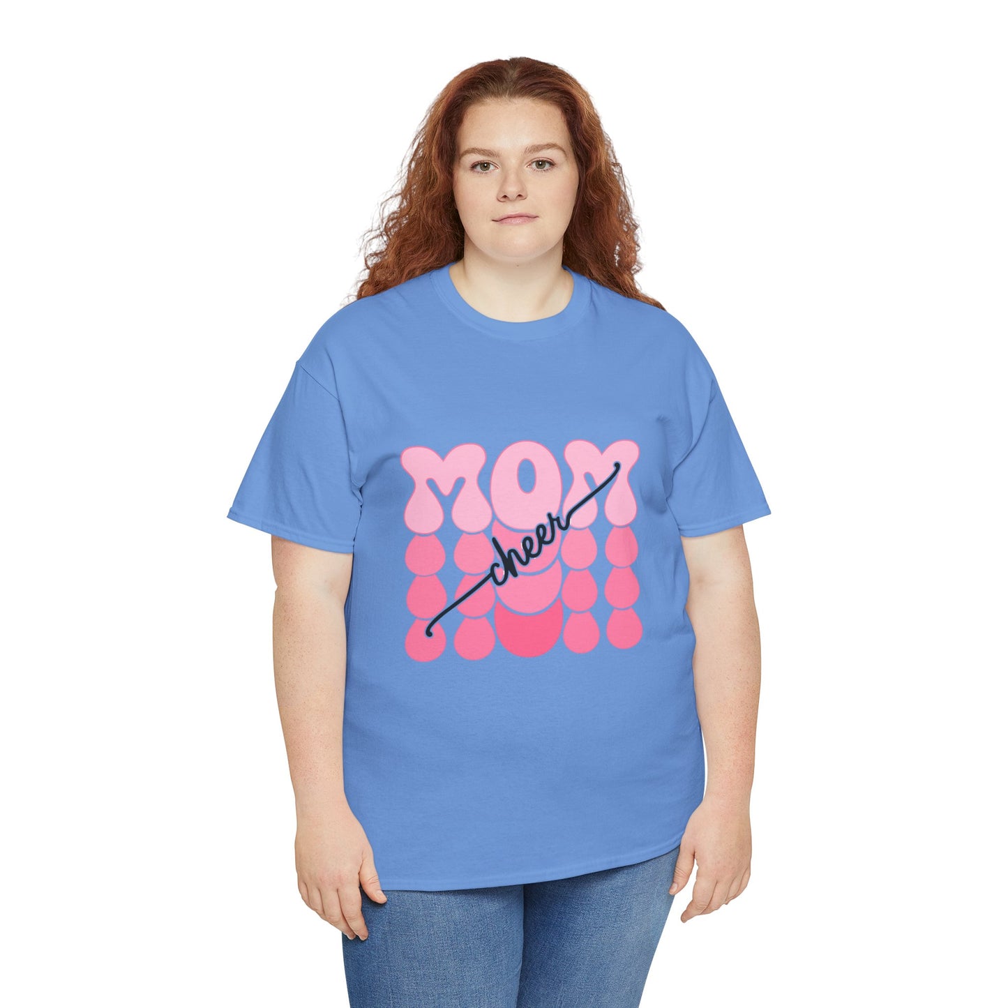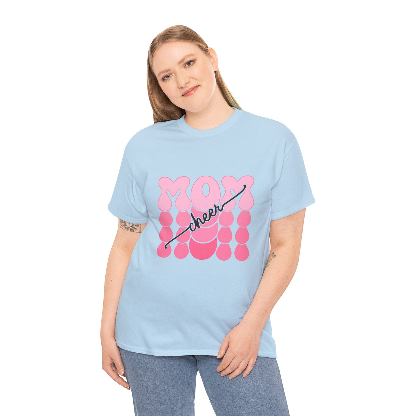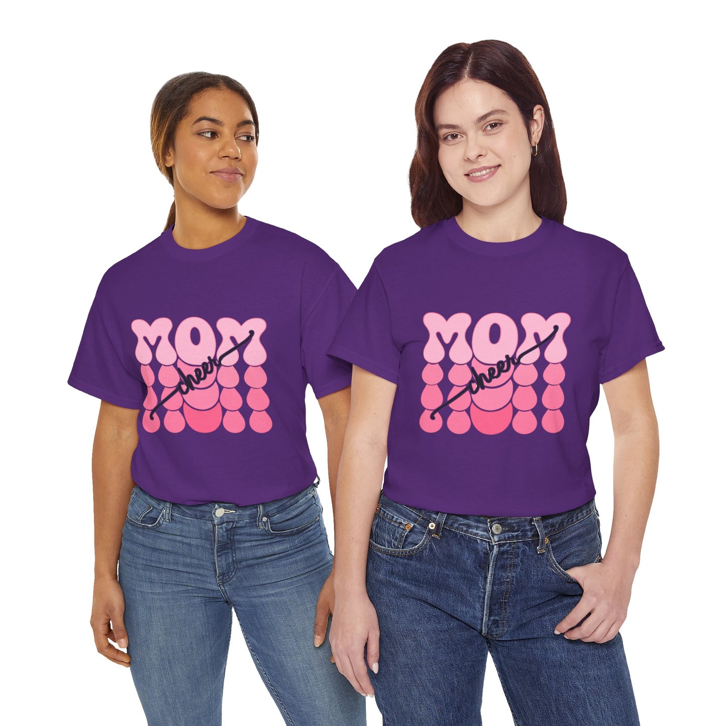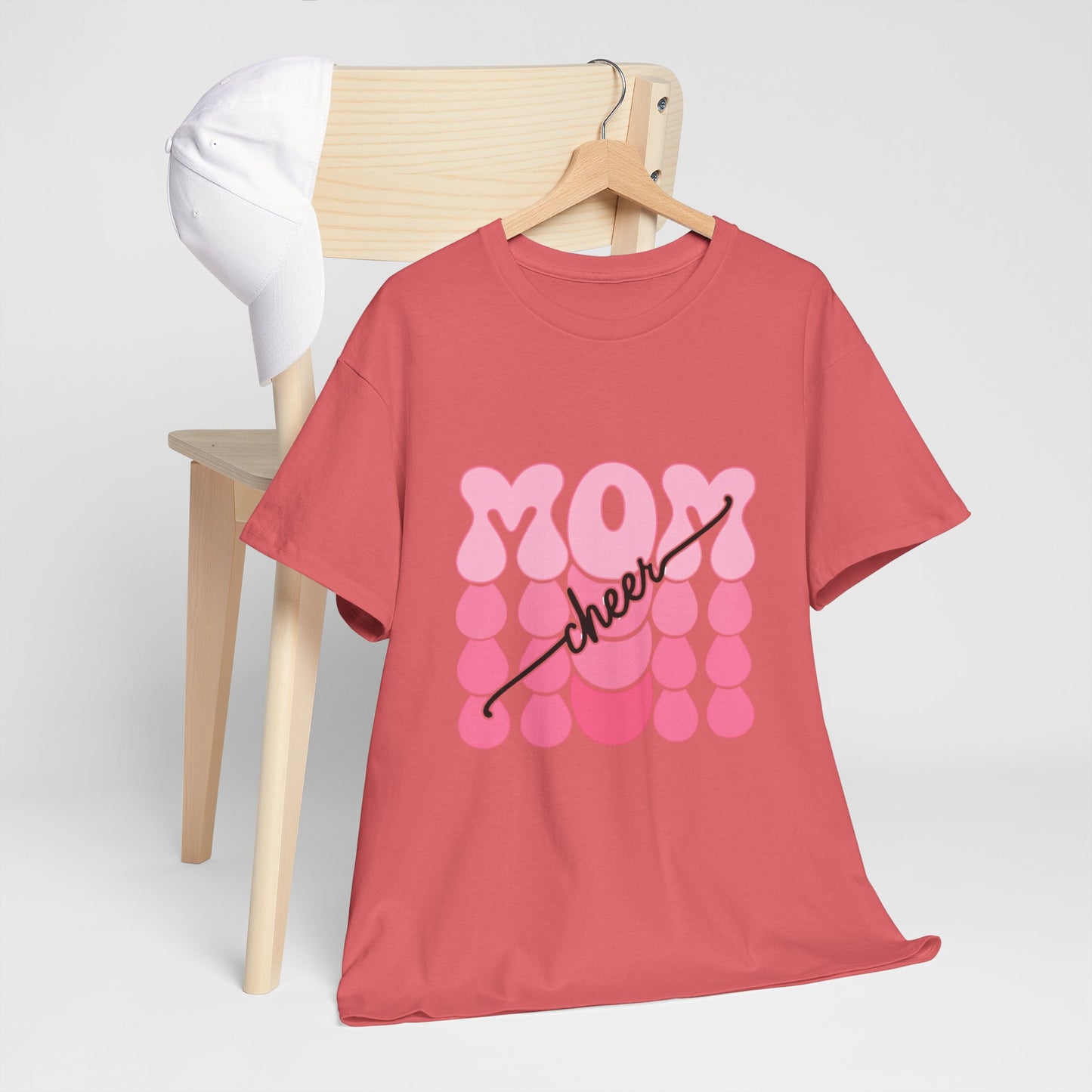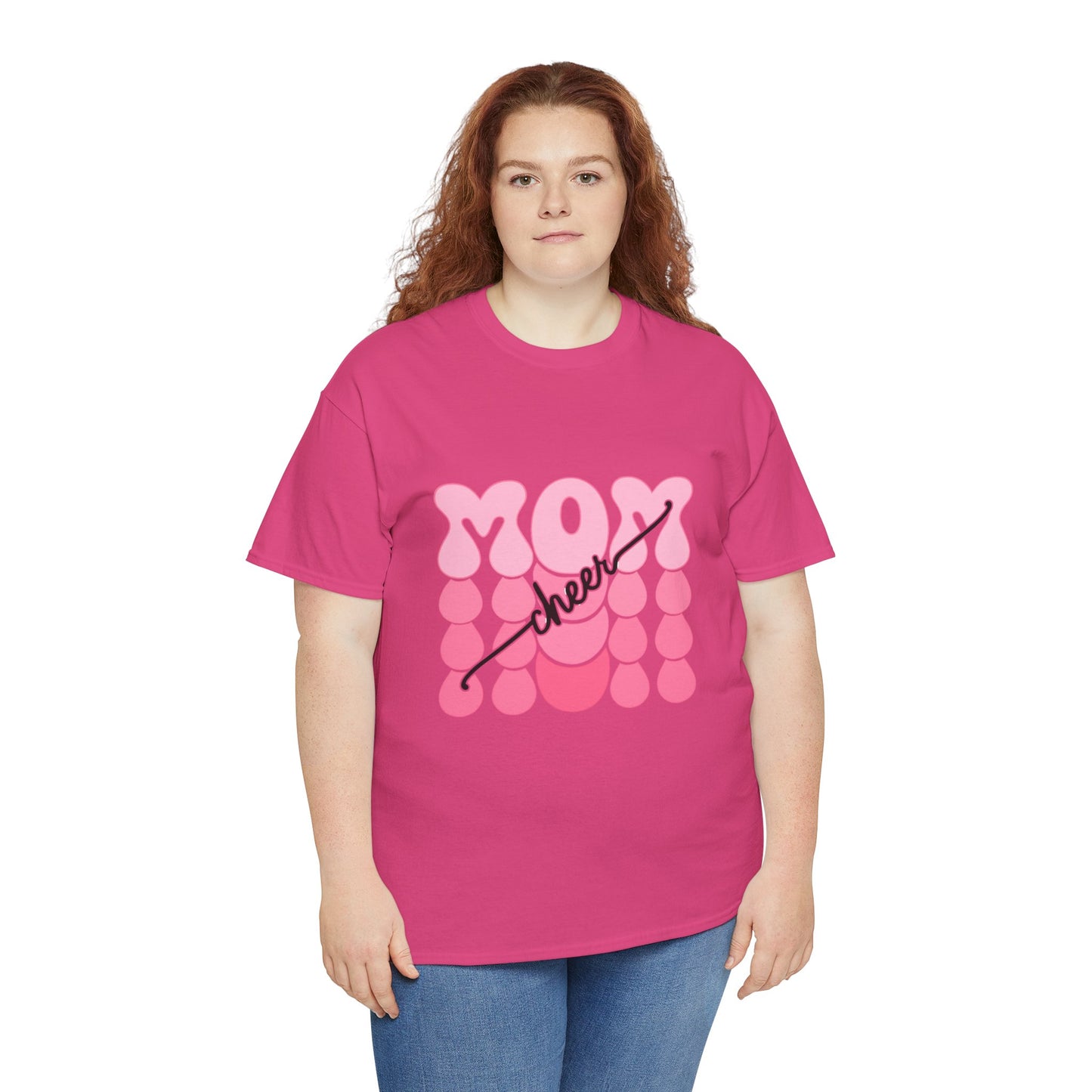 Bring the pep to the sidelines with this bright white t-shirt featuring bold pink bubble‑style “MOM” lettering accented by flowing “cheer” script. Fun, feminine, and full of team spirit, it’s the perfect game day uniform for proud cheer moms everywhere. Lightweight, comfortable, and ready to rally from the first cheer to the final score.