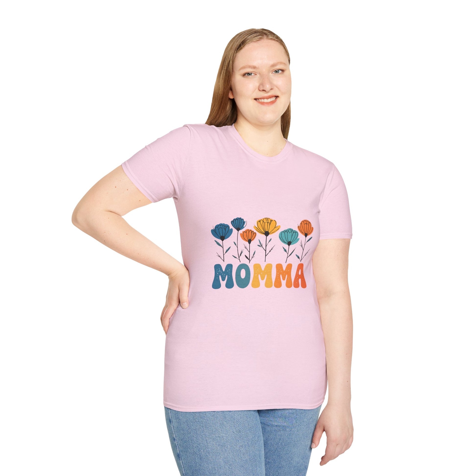 Momma Floral Softstyle T-Shirt | Perfect for Mother's Day, Gifts for Moms, Casual Wear, Spring Fashion, Family Gatherings