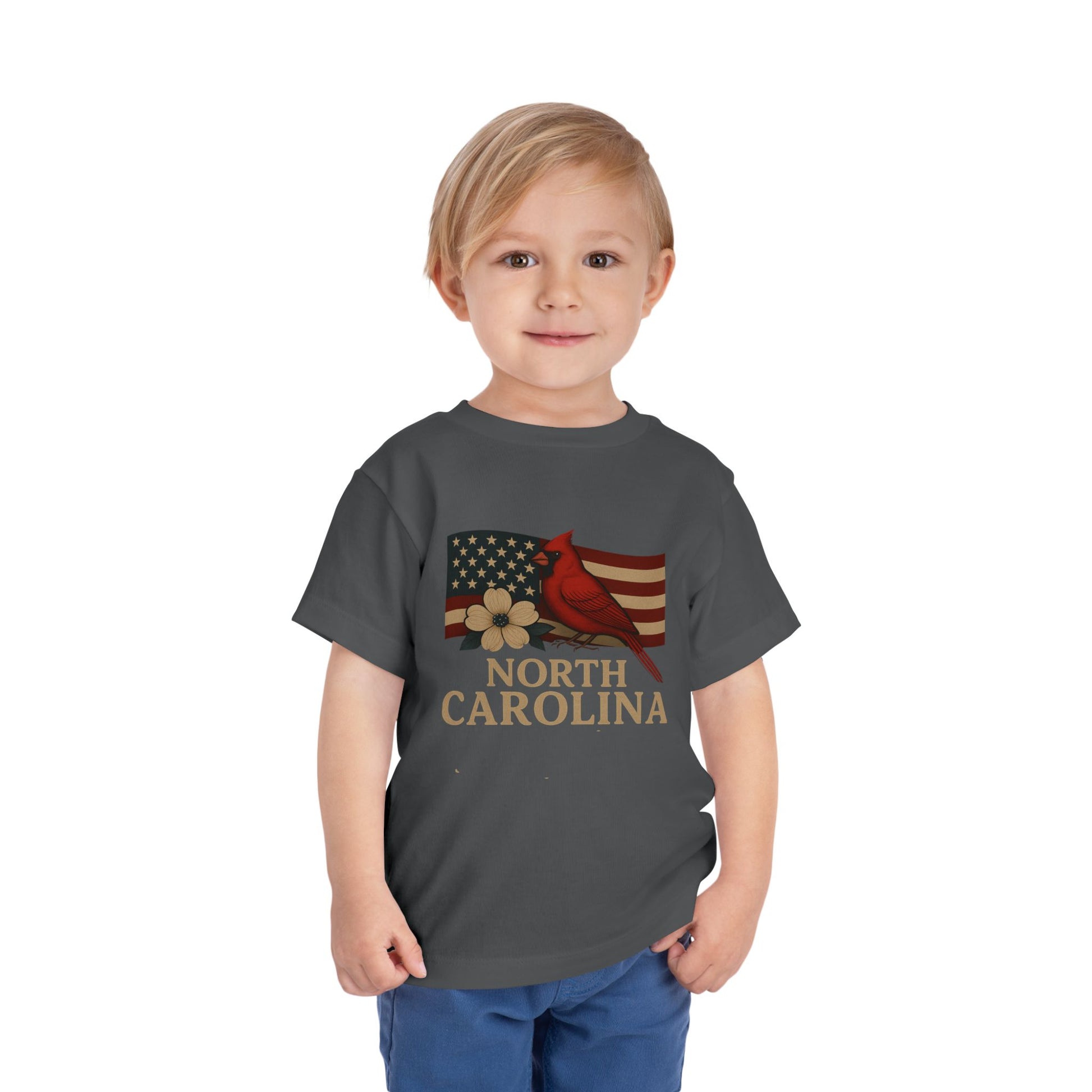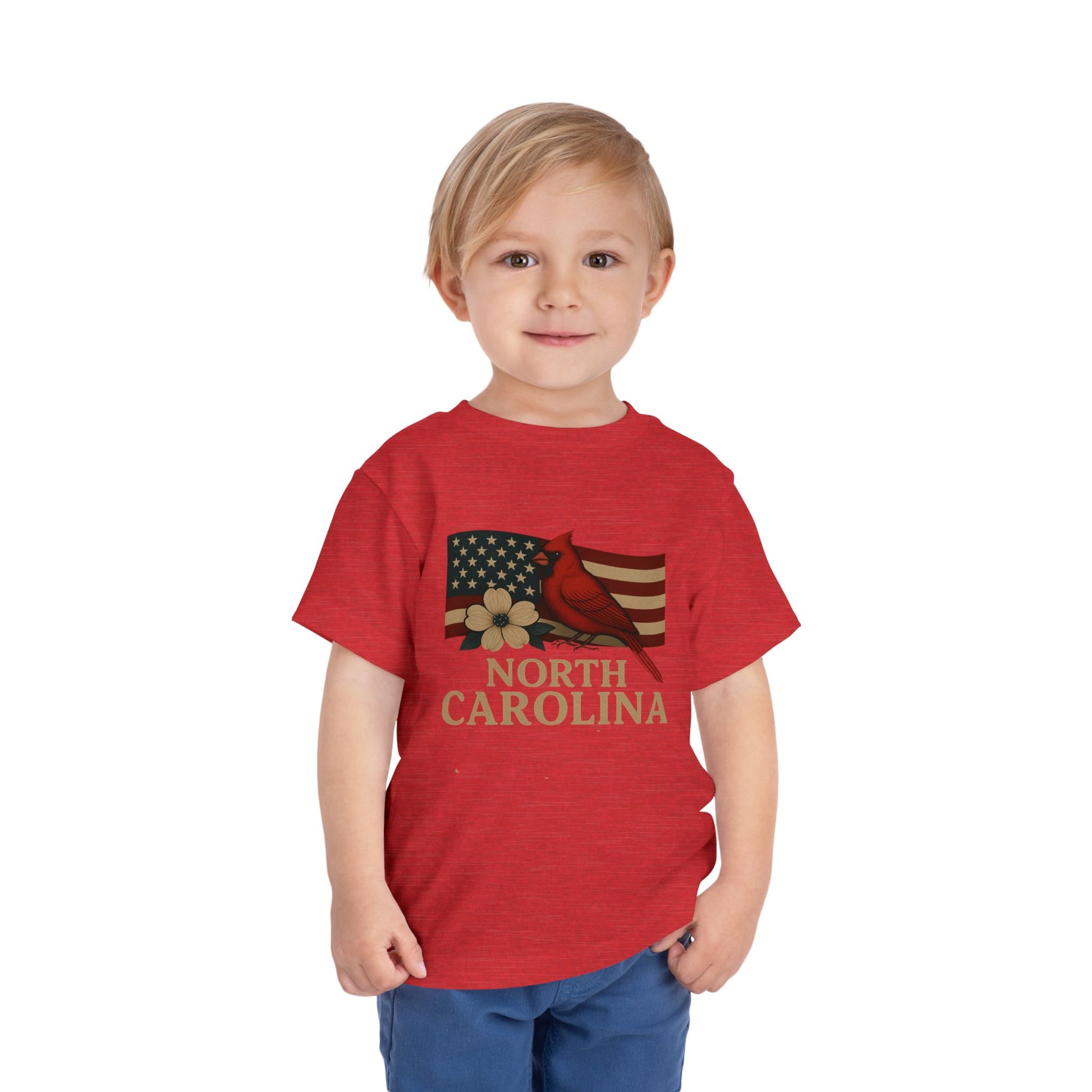 Celebrate the holidays with this adorable North Carolina themed tee! Featuring a vibrant cardinal, dogwood flower, and state pride design, this shirt is perfect for your little one. Crafted from soft, comfortable fabric, it's ideal for Christmas gatherings and festive fun.