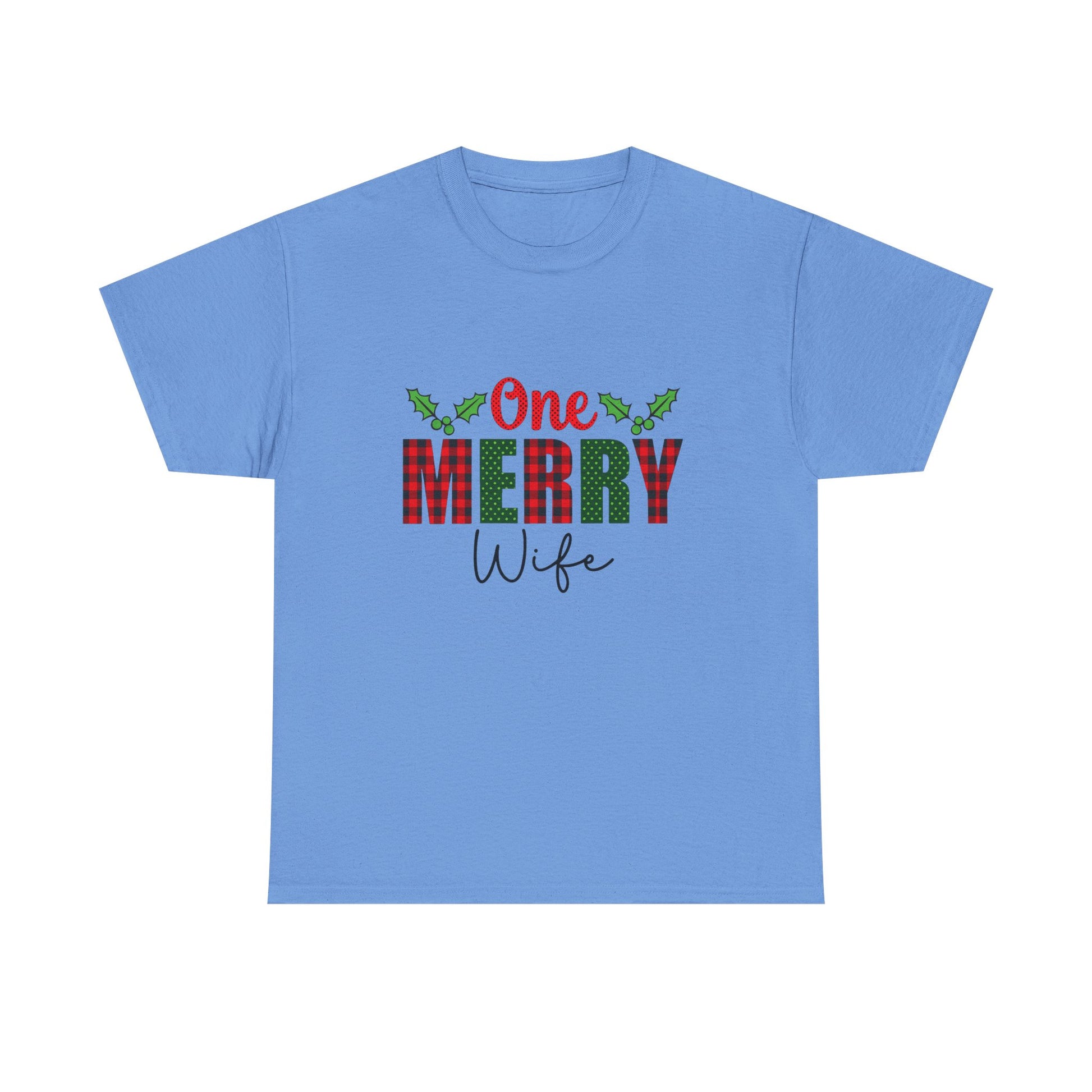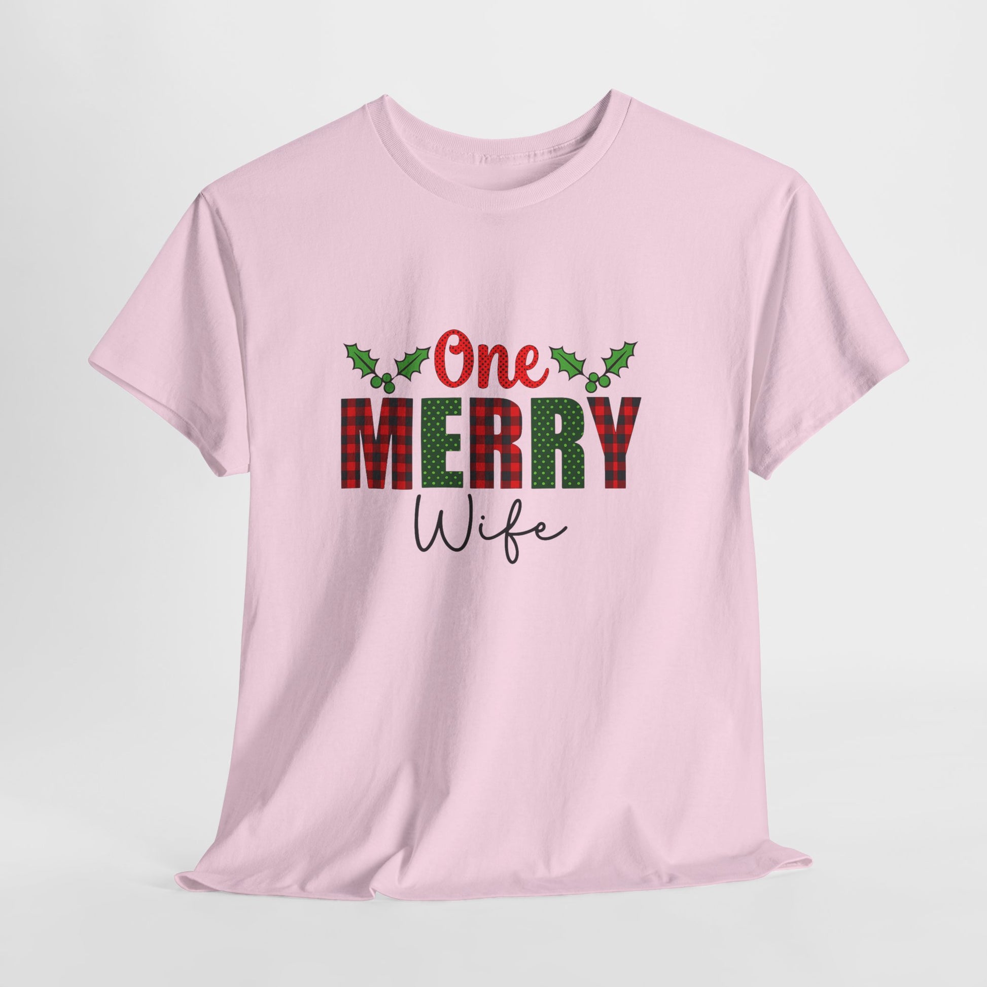 Celebrate the holidays with this festive "One MERRY Wife" Christmas tee! Featuring a cheerful design with red polka dots and plaid accents, this unisex shirt is perfect for the holidays. Crafted from soft, comfortable fabric, it's a meaningful gift for yourself or a loved one this Christmas season.