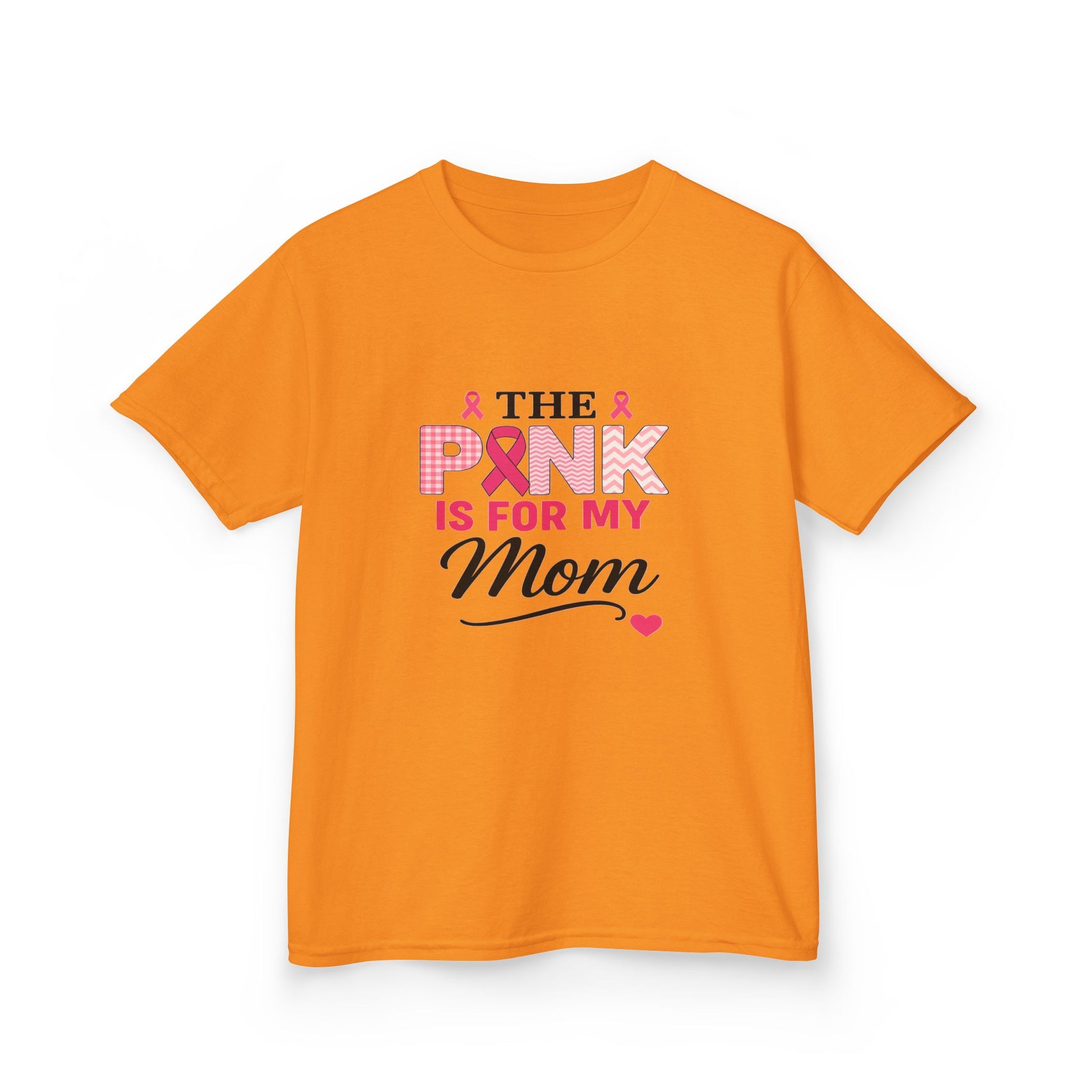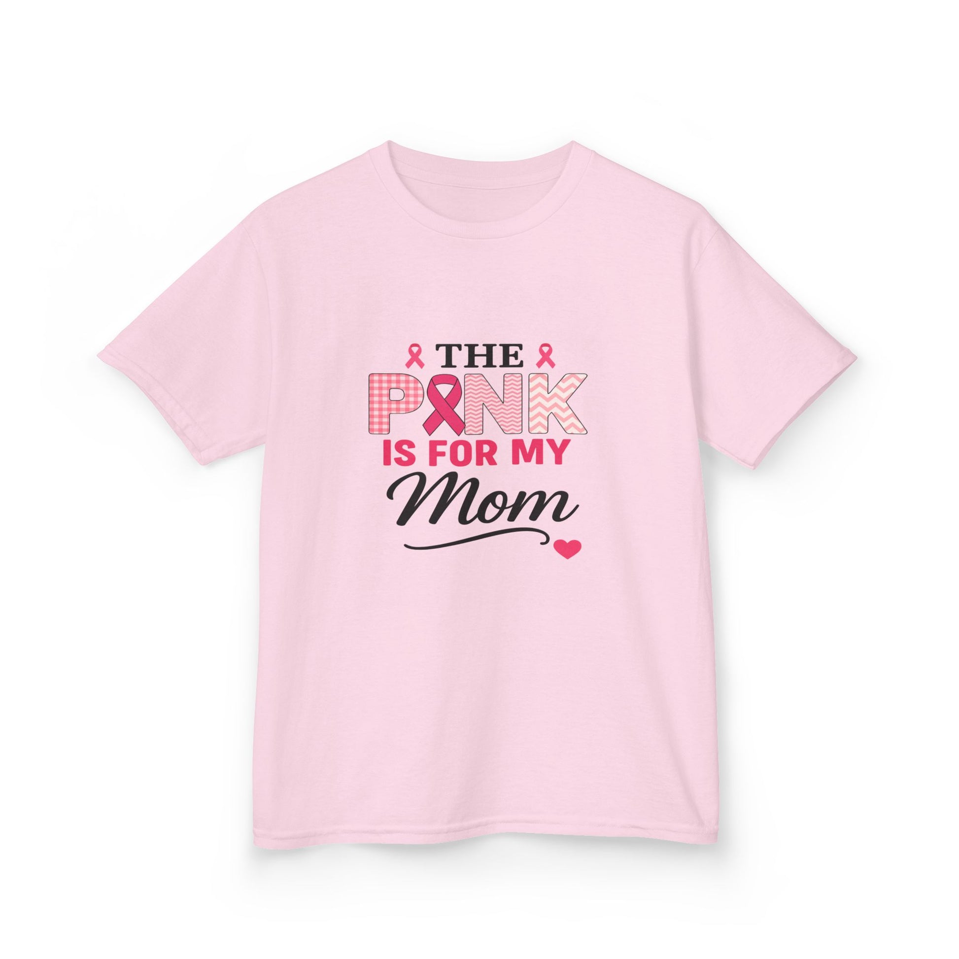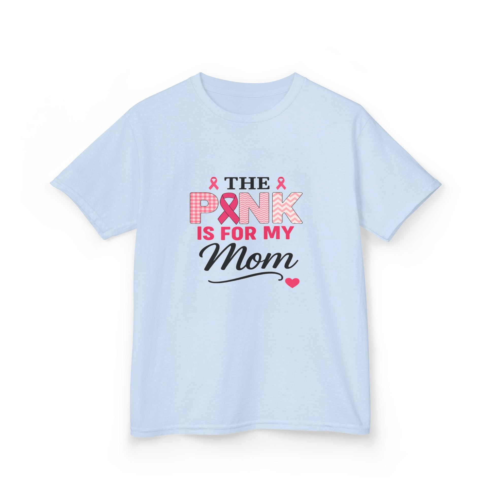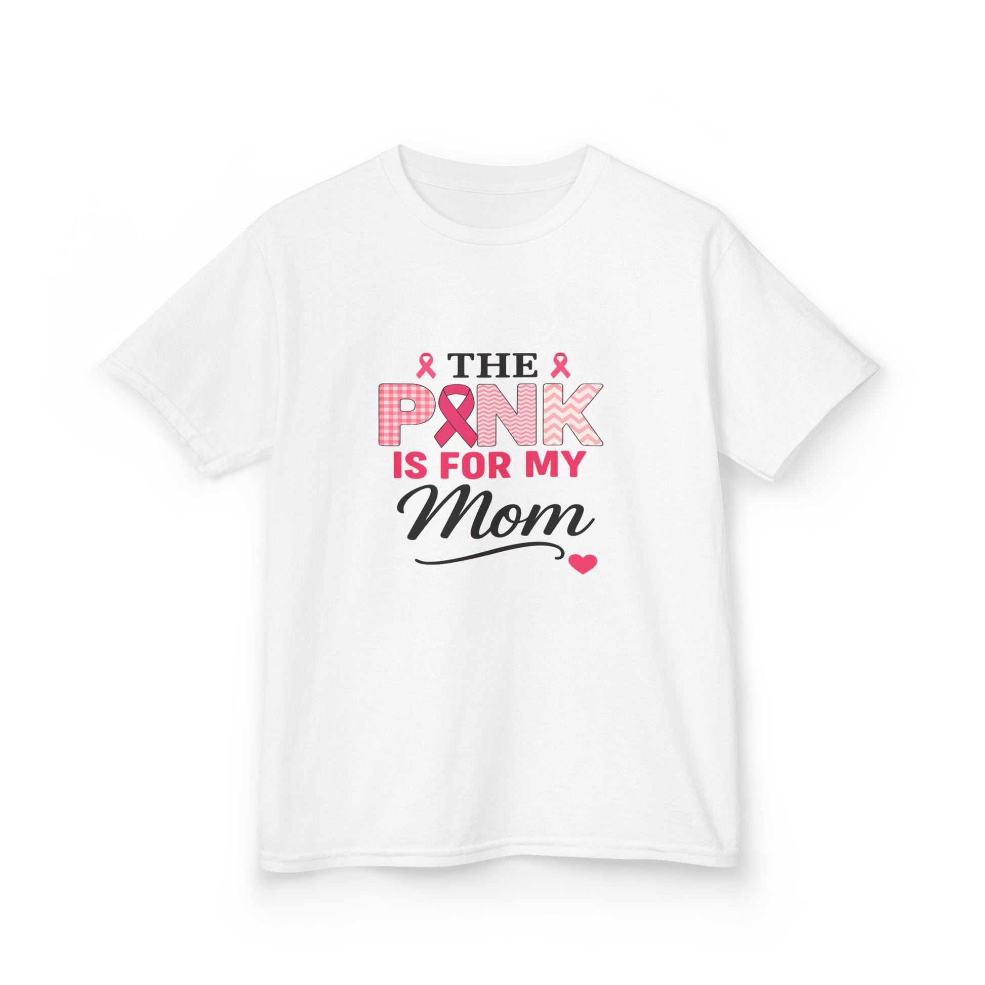 Show your support this holiday season with this heartwarming breast cancer awareness tee! Featuring a vibrant pink design inspired by the image, this shirt honors moms and raises awareness. The word "PINK" is uniquely patterned, with a matching swish under "Mom". Made from soft, comfortable fabric, this tee is perfect for kids during the holidays. A perfect gift to spread love and awareness.