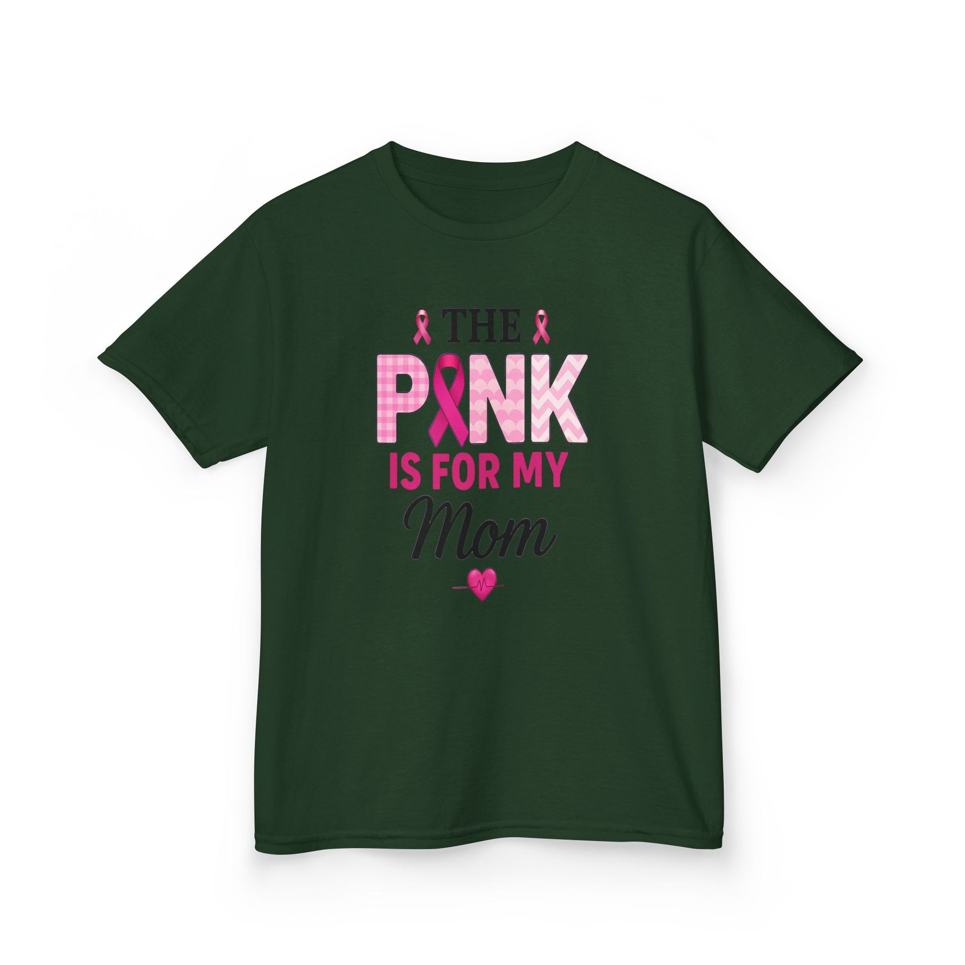 Show your love and support this holiday season with this special Christmas tee! Featuring a heartwarming design, this shirt honors moms and breast cancer awareness. The design incorporates a pink ribbon, a heart with an EKG line and the words 'THE PINK IS FOR MY Mom' in a stylish, kid-friendly format. It's the perfect festive and meaningful gift, bringing awareness with joy.