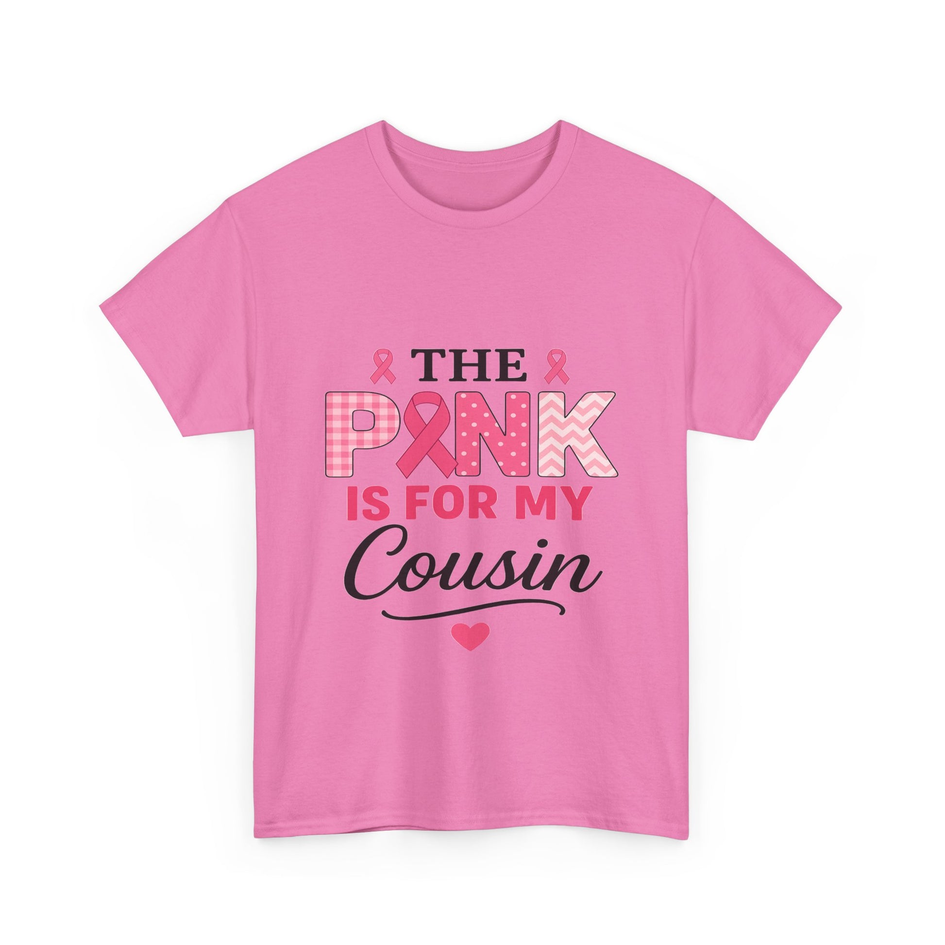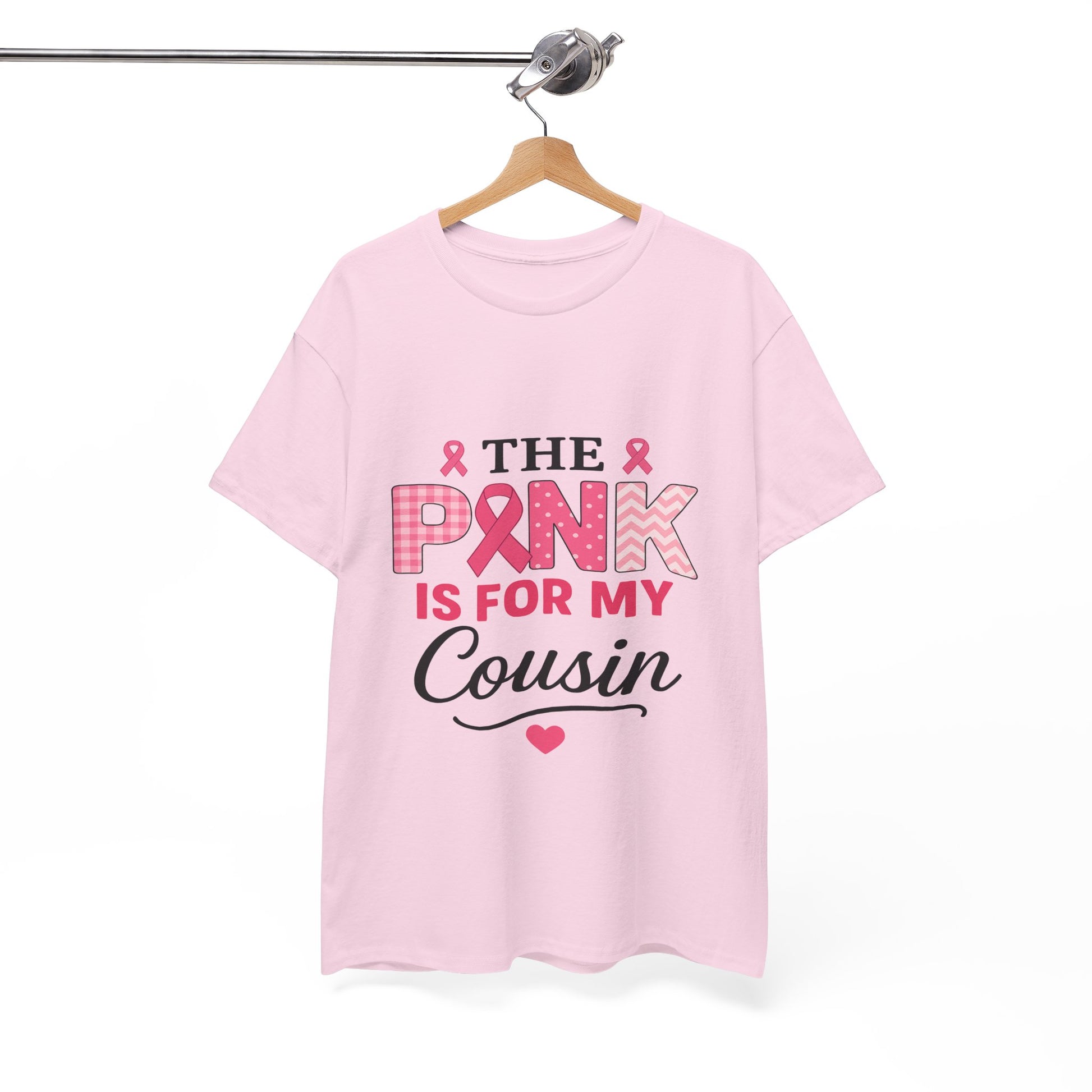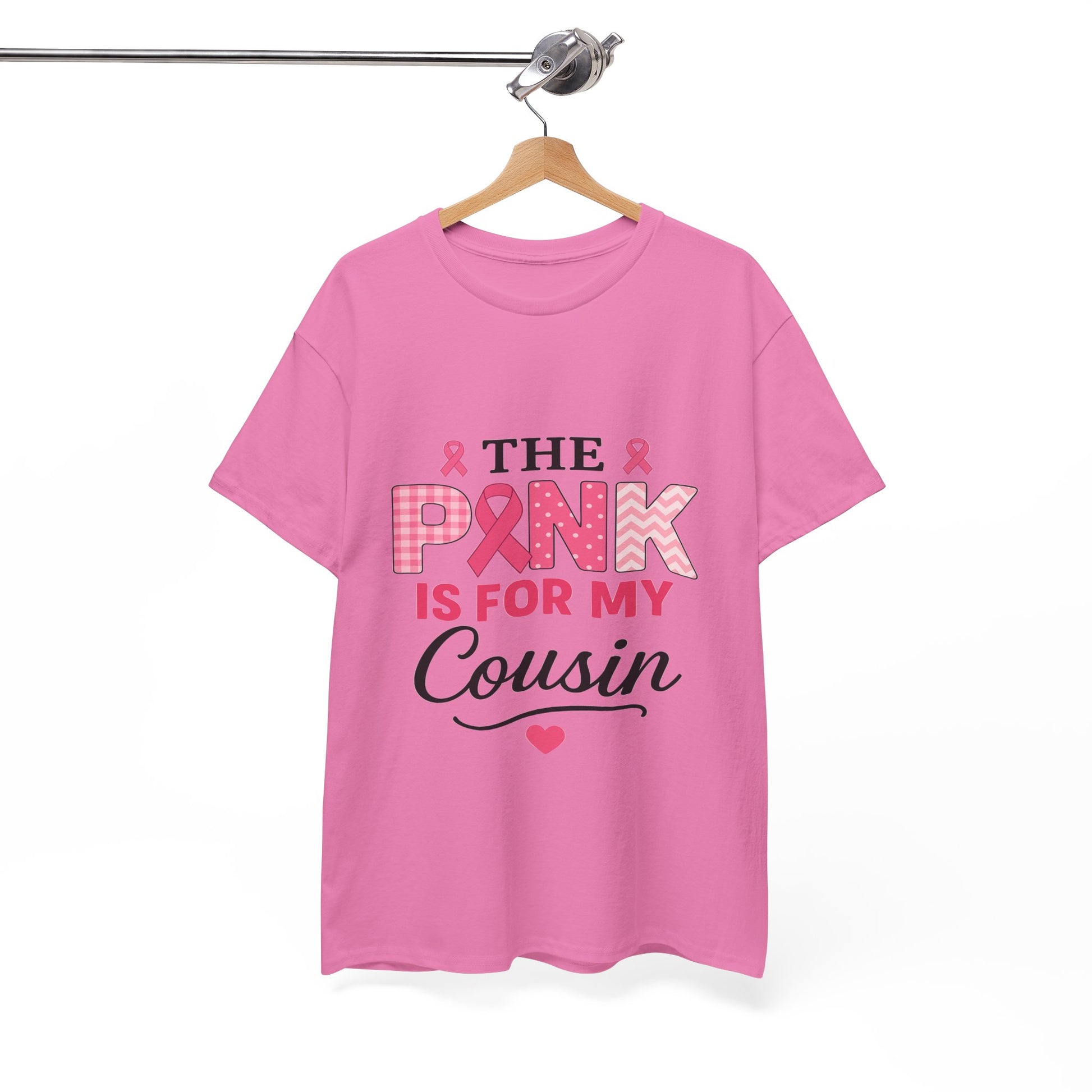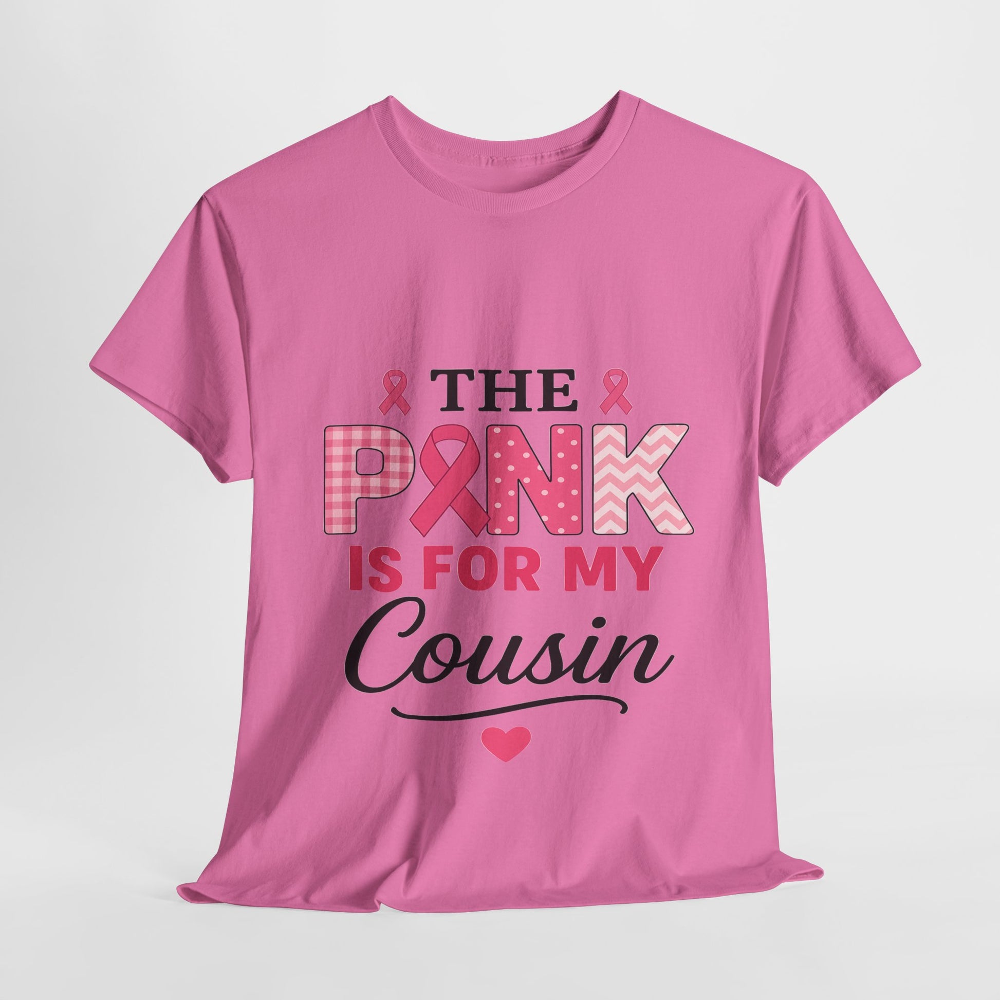 Show your support with this empowering tee! Featuring a vibrant pink design with the words "THE PINK IS FOR MY Cousin," this shirt is a beautiful way to express love and hope. The design incorporates pink ribbons, a symbol of breast cancer awareness, making it the perfect gift. Made from comfortable, high-quality materials, this unisex tee offers both style and a heartfelt message. Spread awareness and show your support today!