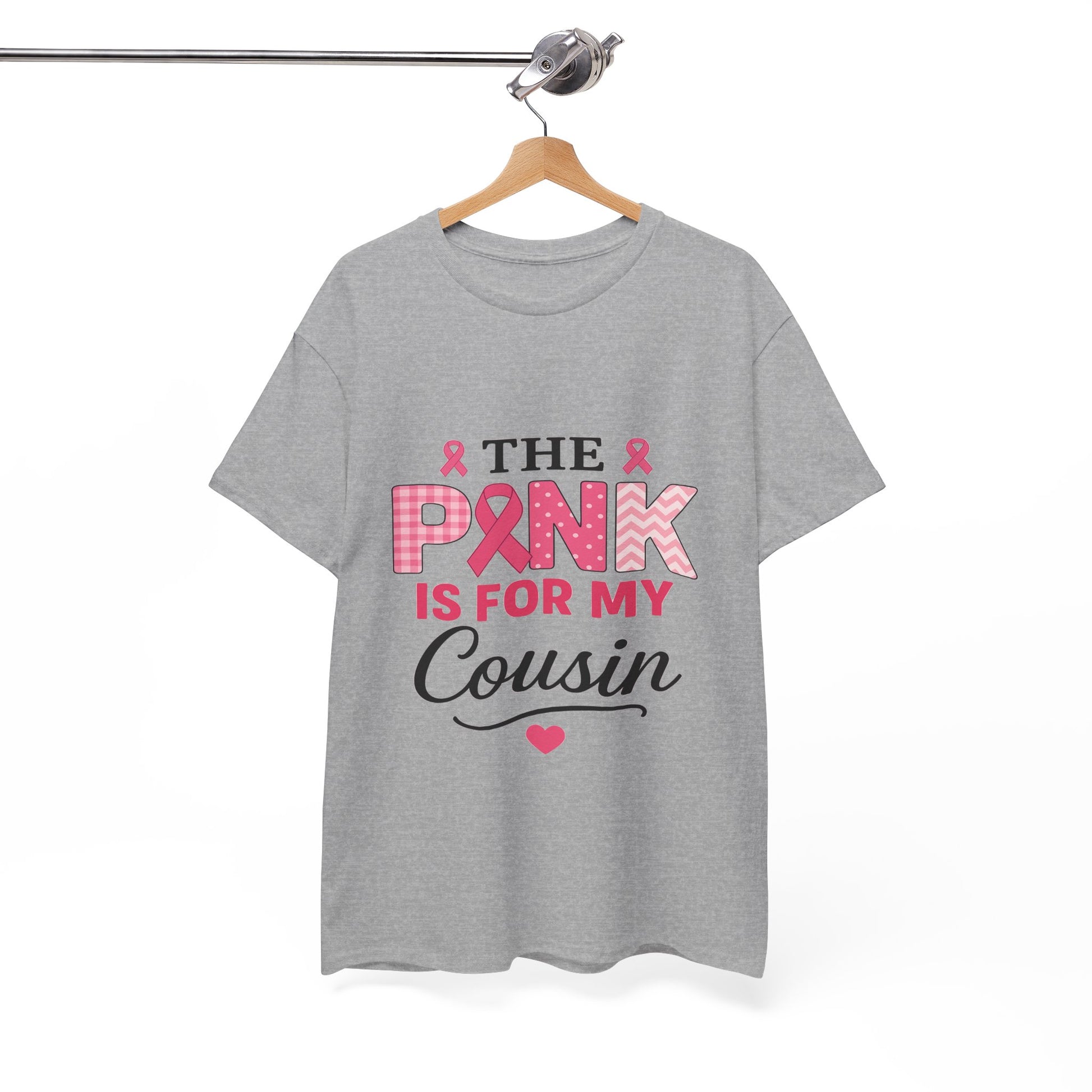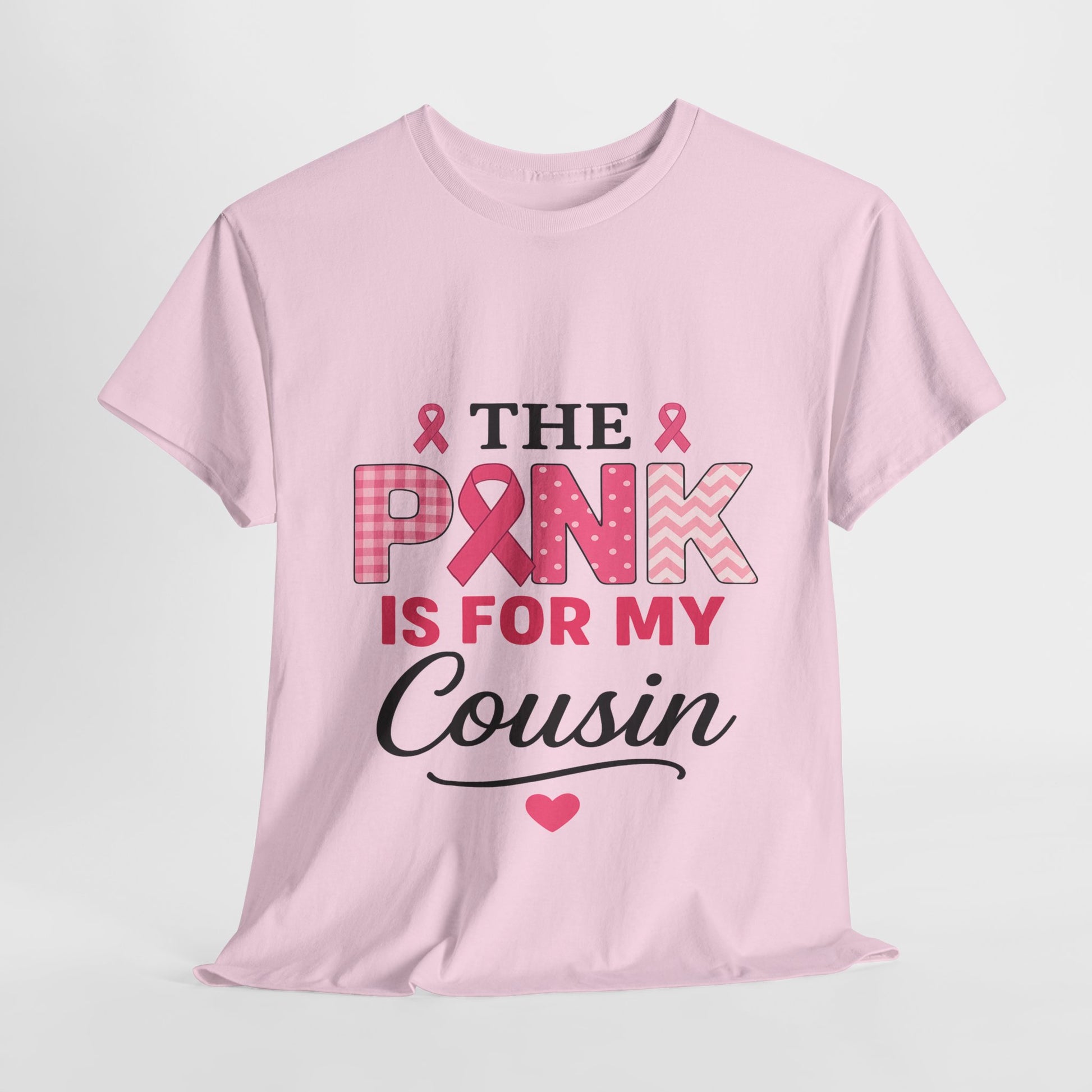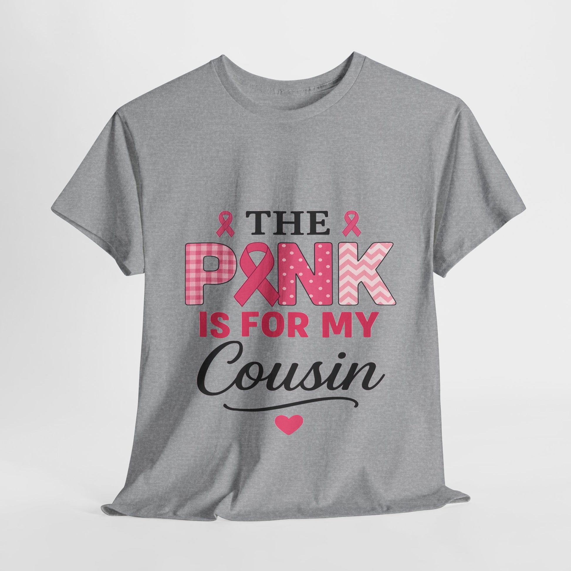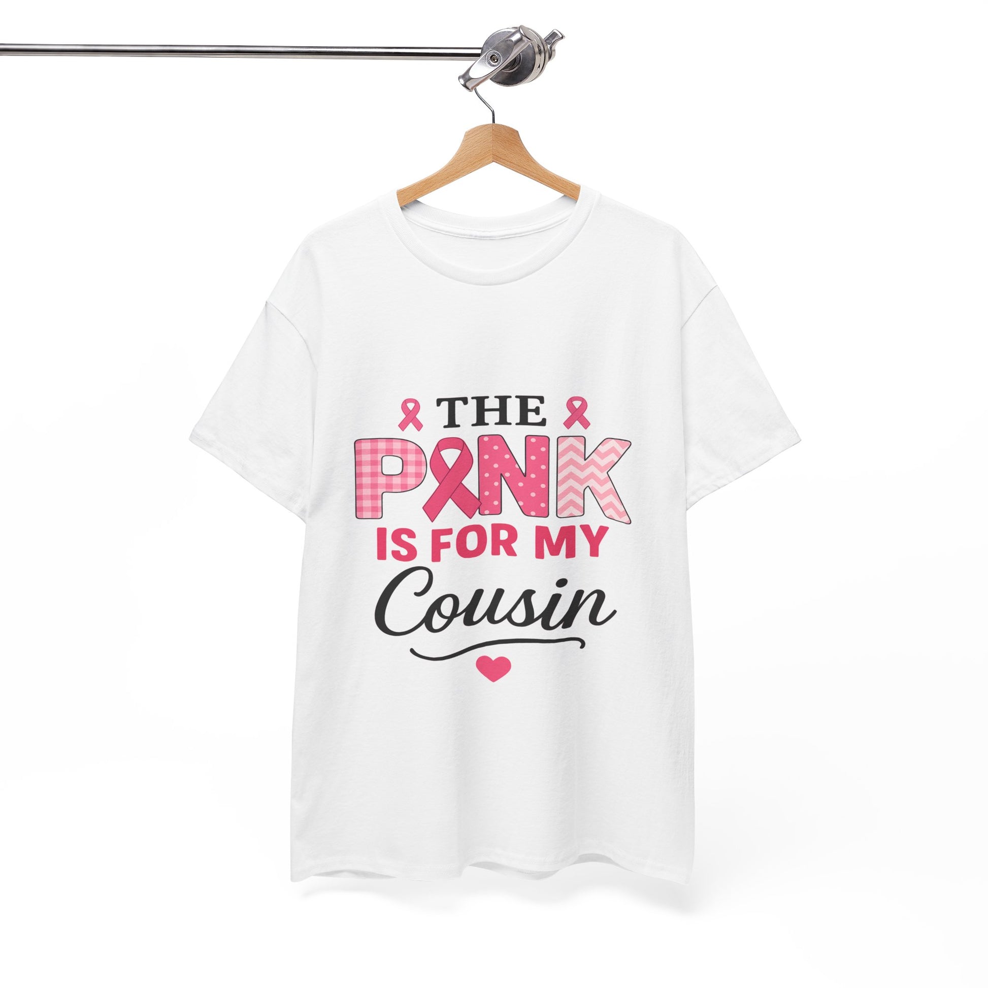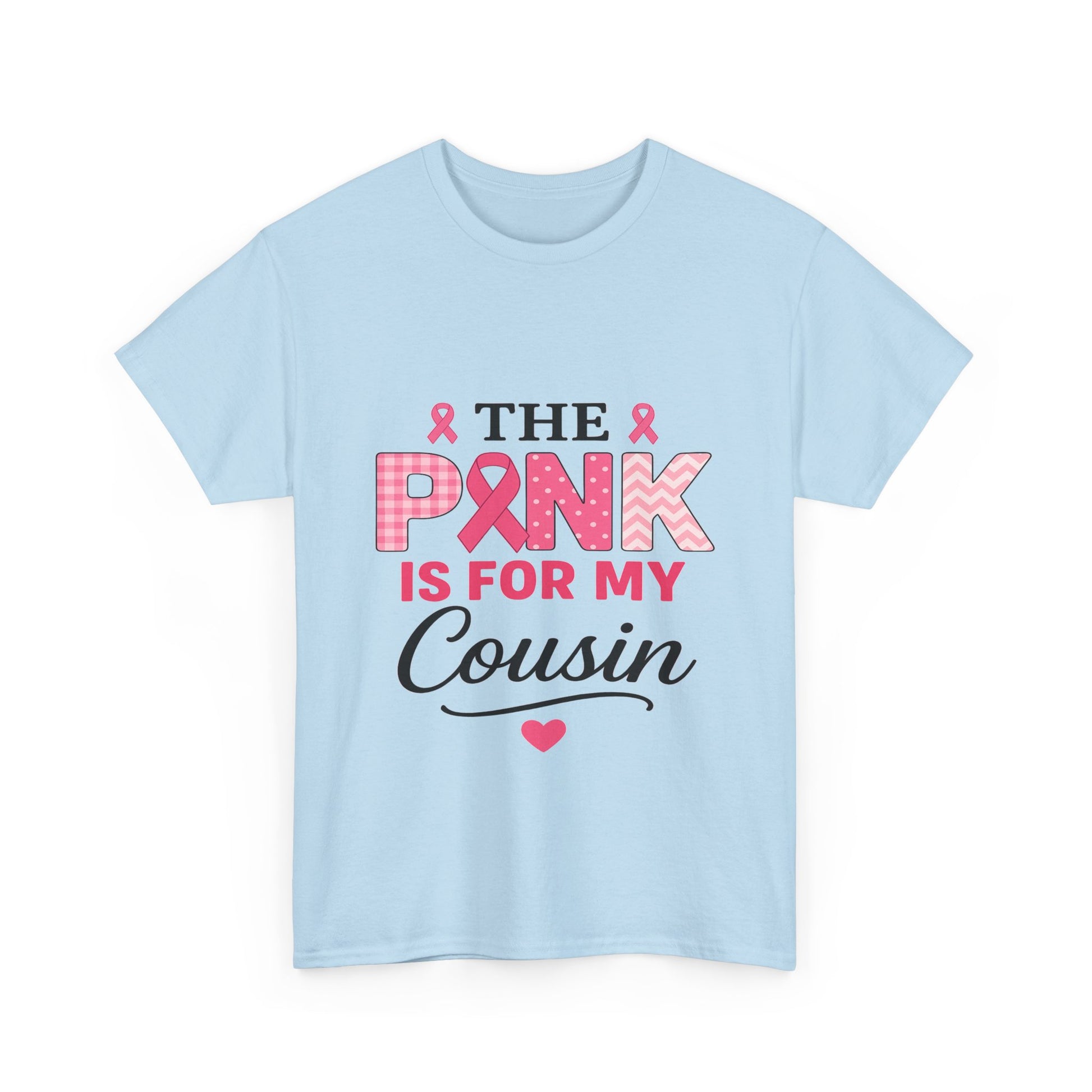 Show your support with this empowering tee! Featuring a vibrant pink design with the words "THE PINK IS FOR MY Cousin," this shirt is a beautiful way to express love and hope. The design incorporates pink ribbons, a symbol of breast cancer awareness, making it the perfect gift. Made from comfortable, high-quality materials, this unisex tee offers both style and a heartfelt message. Spread awareness and show your support today!