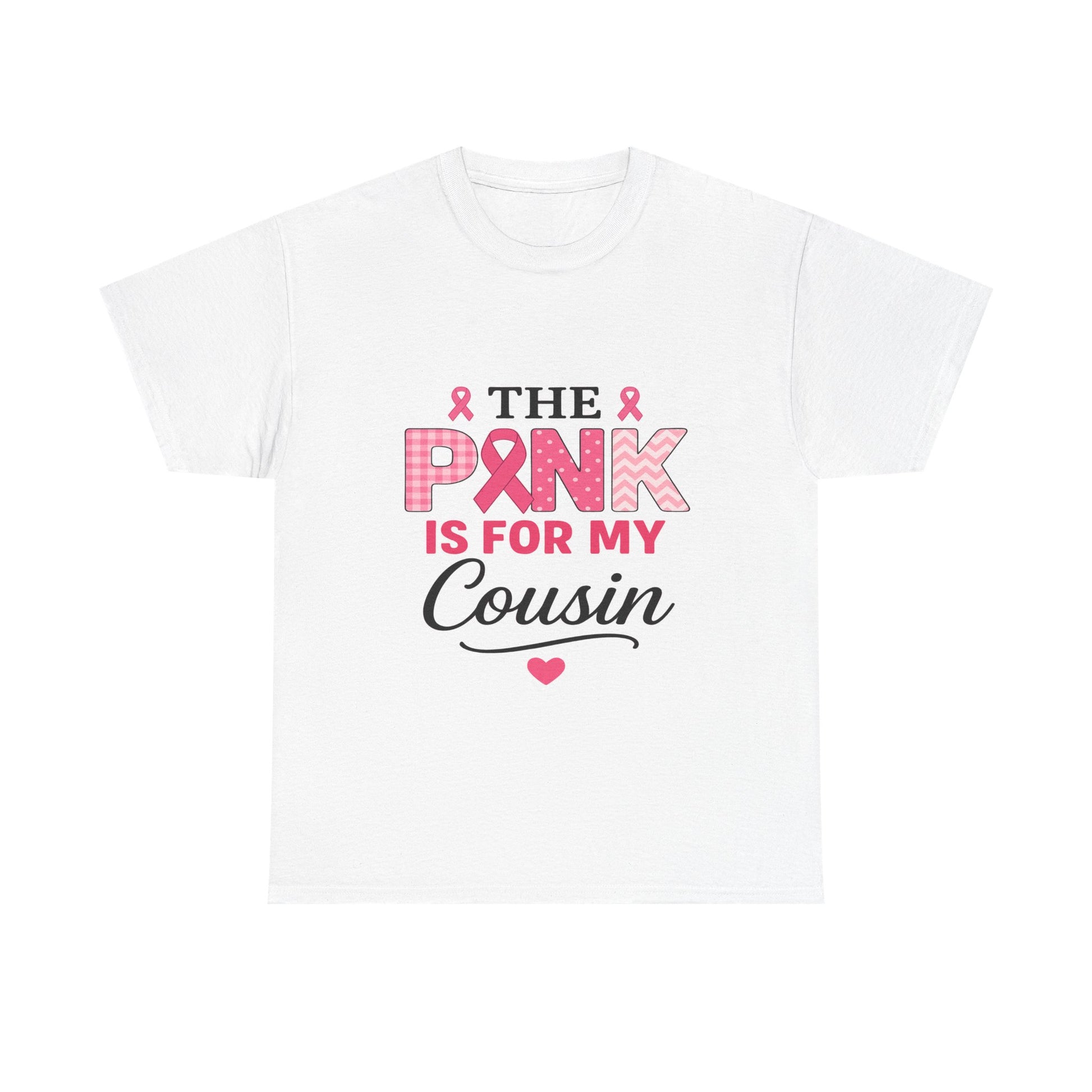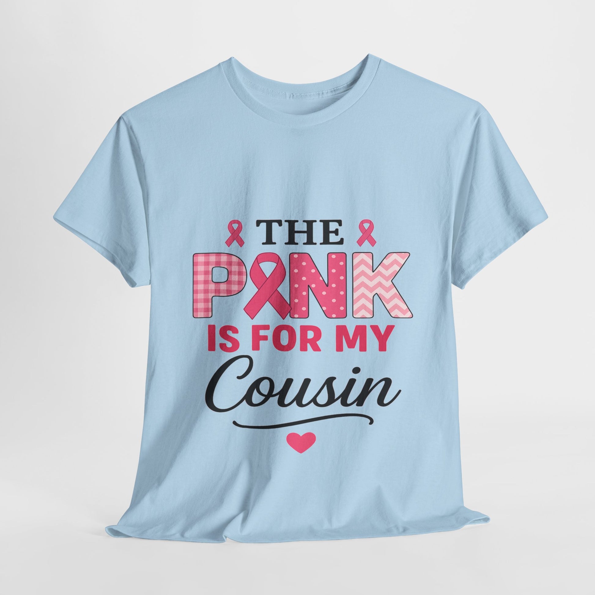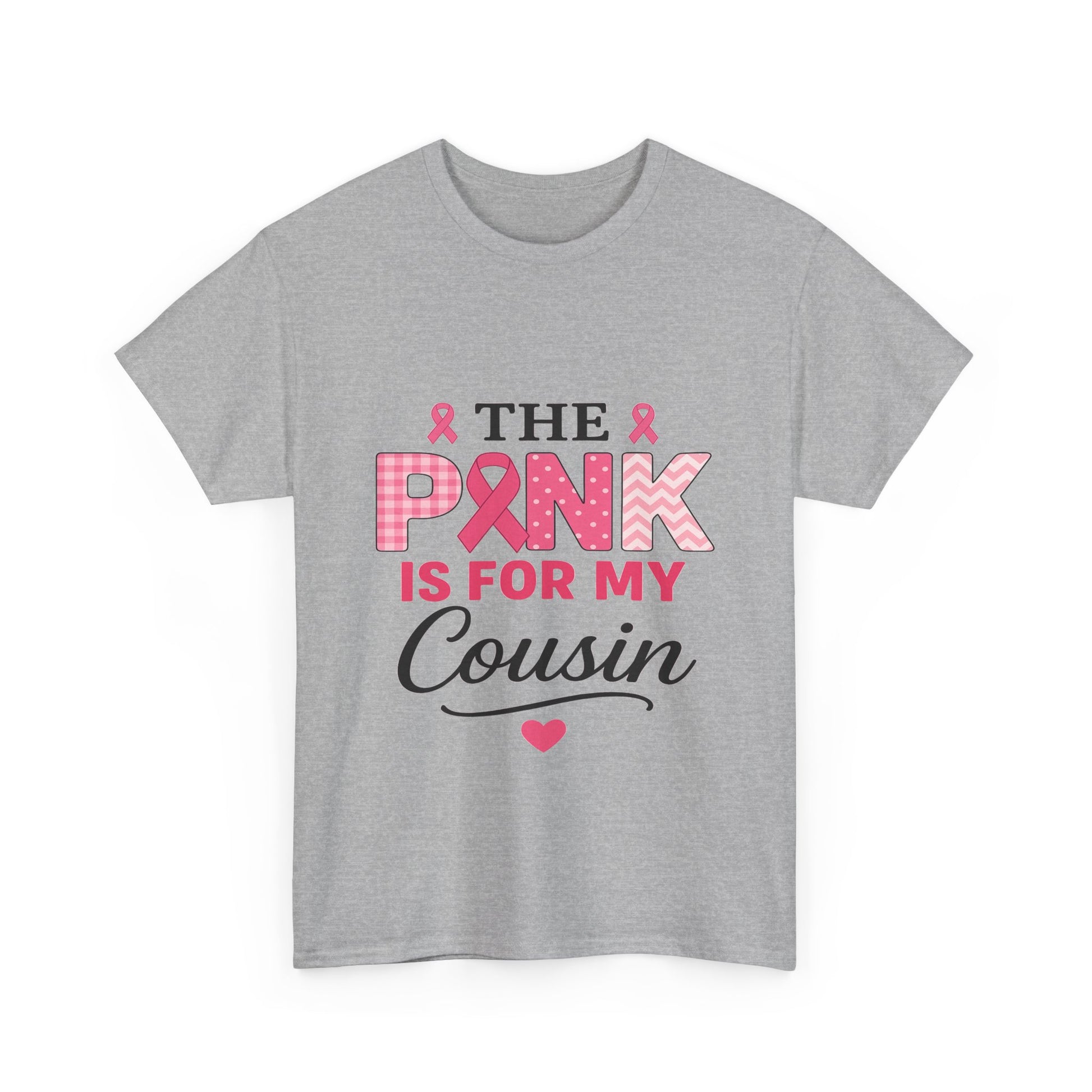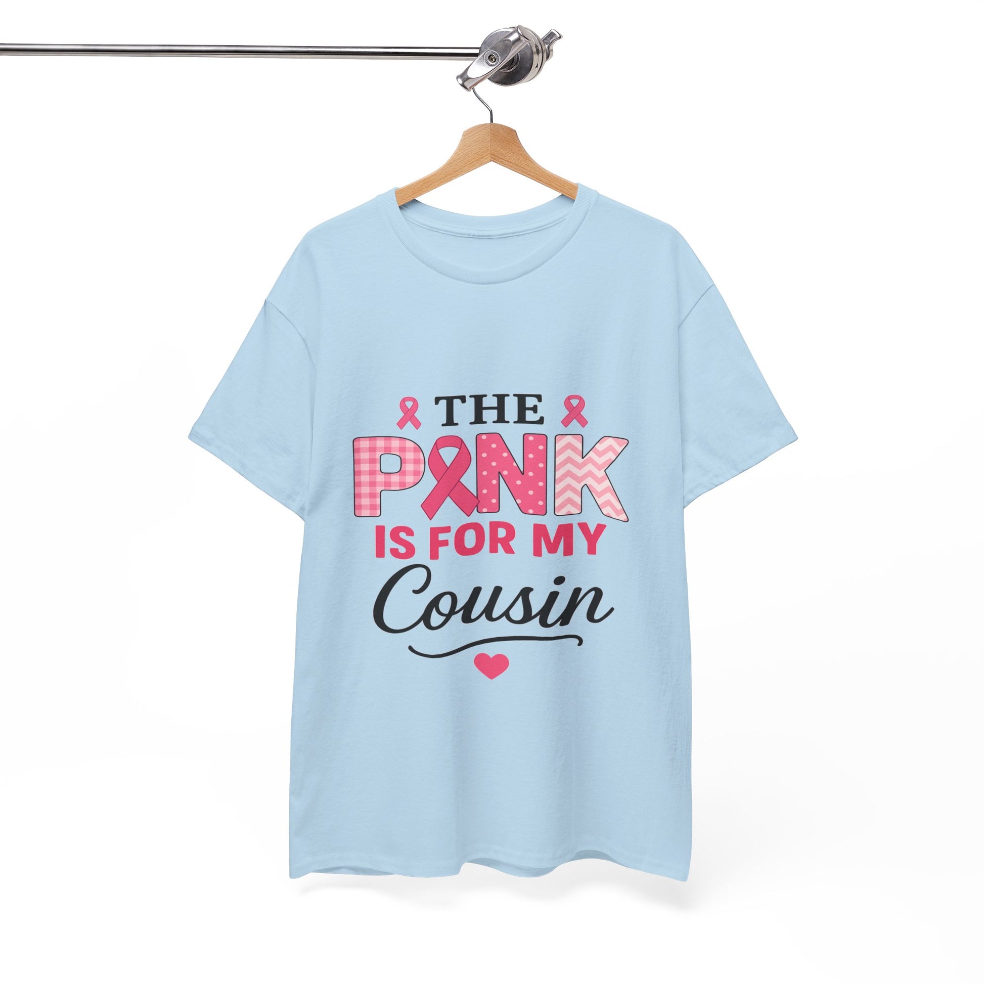 Show your support with this empowering tee! Featuring a vibrant pink design with the words "THE PINK IS FOR MY Cousin," this shirt is a beautiful way to express love and hope. The design incorporates pink ribbons, a symbol of breast cancer awareness, making it the perfect gift. Made from comfortable, high-quality materials, this unisex tee offers both style and a heartfelt message. Spread awareness and show your support today!
