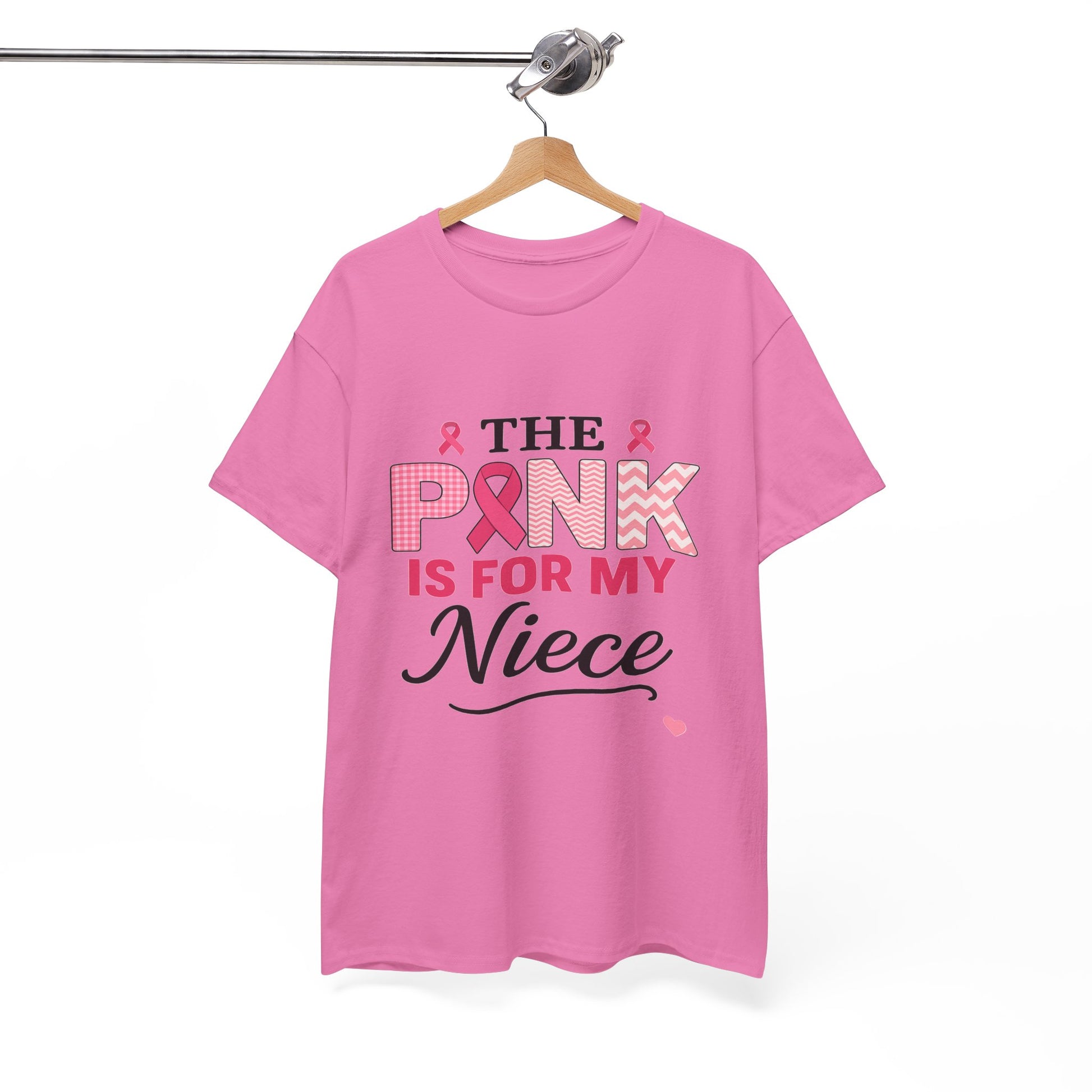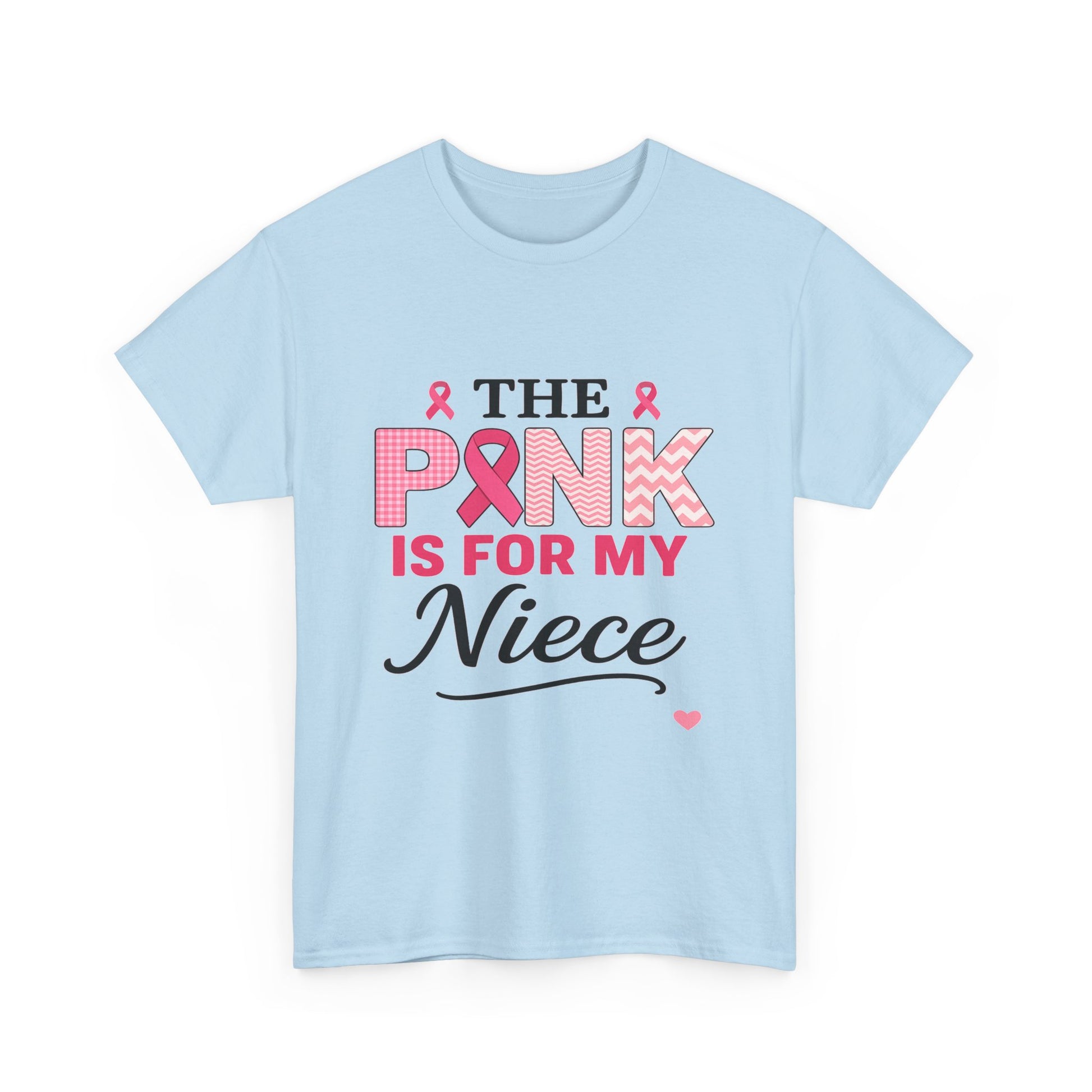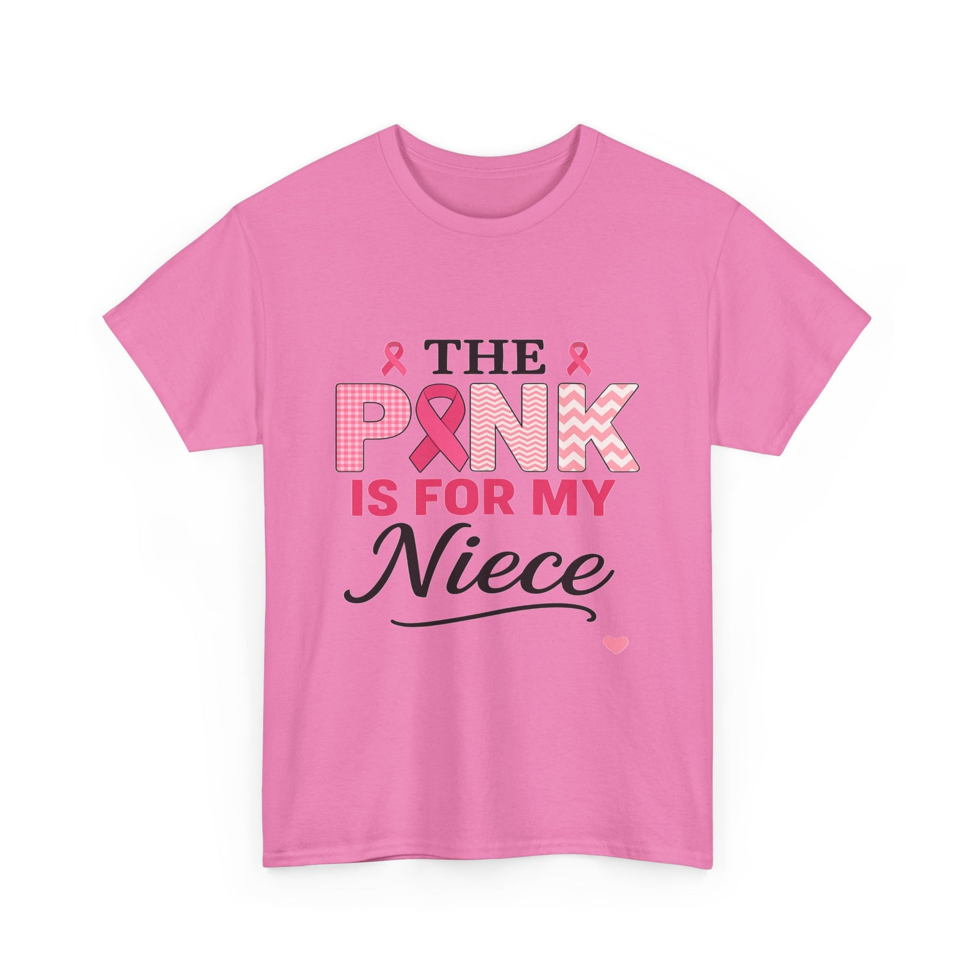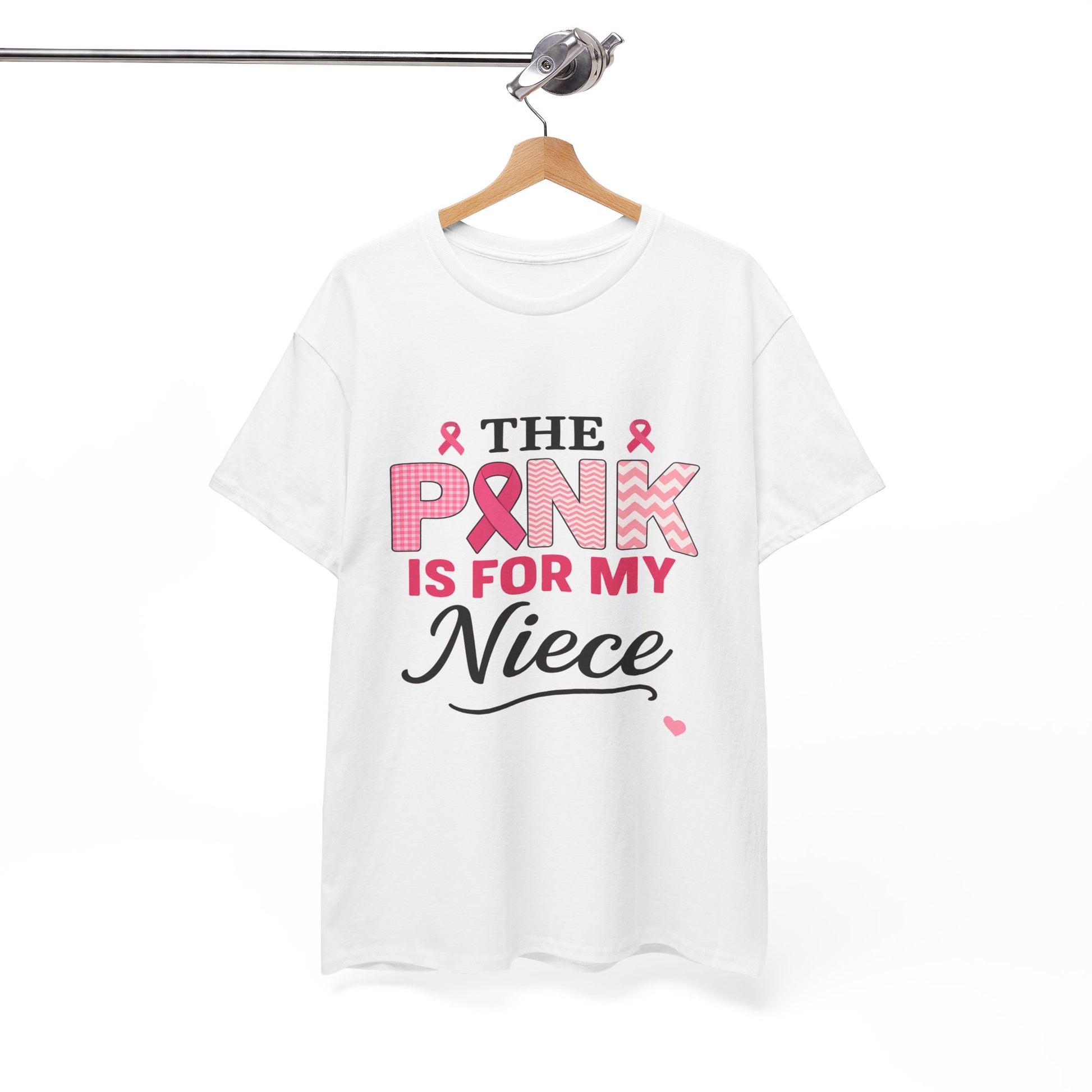 Show your support and love with this empowering tee. Featuring a unique design with the words "The Pink is for My Niece," it's a heartfelt tribute to your loved one. The shirt uses a stylish combination of pink, black, and white with a light beige background. Perfect for breast cancer awareness events or everyday wear, it's a comfortable and meaningful gift. Spread hope and love with this inspirational unisex tee.