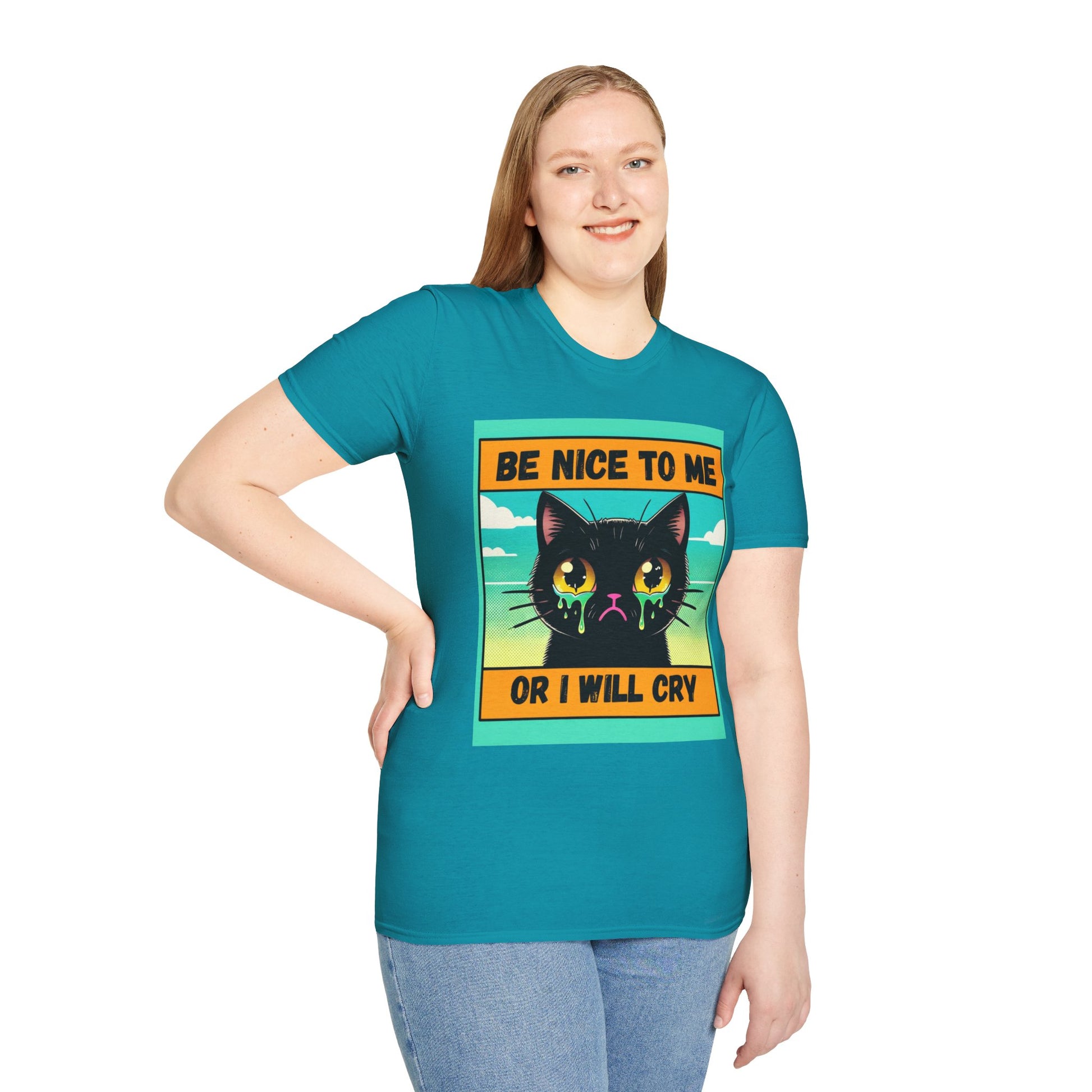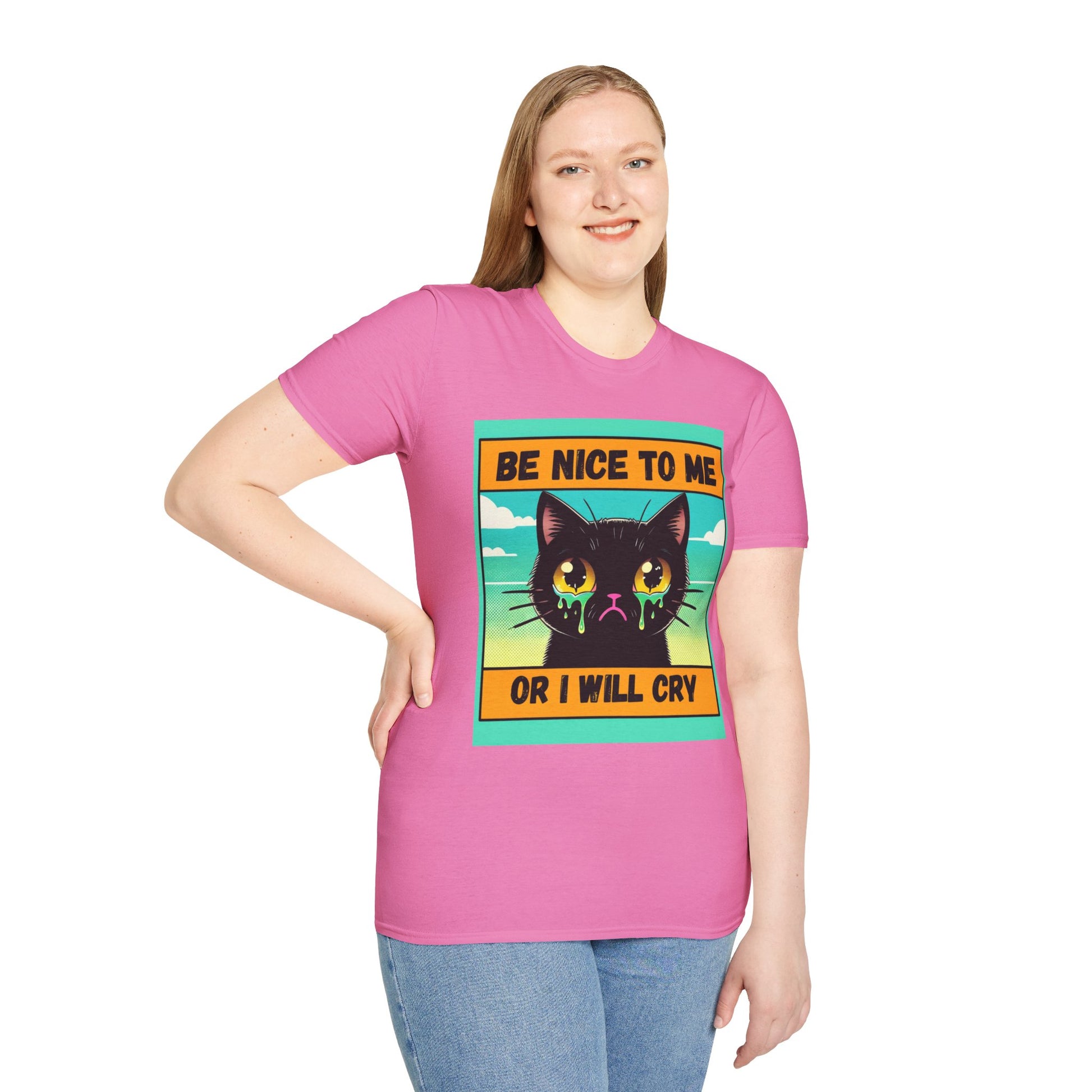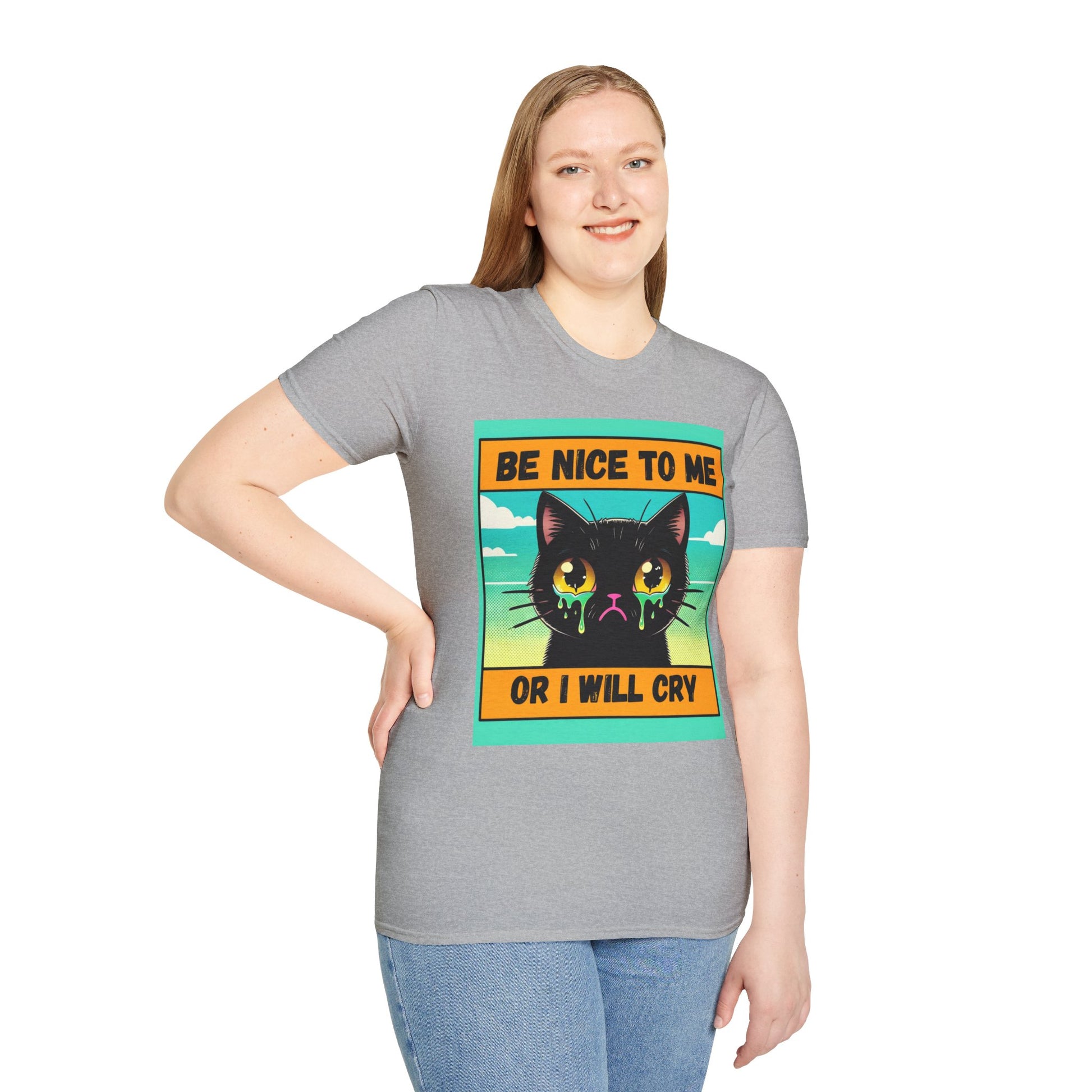Introducing our vibrant Unisex Softstyle T-Shirt, perfect for cat lovers and anyone with a sense of humor! This playful tee, featuring an expressive kitty design, adds a fun touch to your casual wardrobe. The lightweight, comfortable fabric makes it ideal for year-round wear, whether you're lounging at home or out with friends. The classic fit and crew neckline ensure it pairs effortlessly with jeans, shorts, or skirts. Great for gifting on occasions like Birthdays, Cat Appreciation Day, or even as a quirky gift for any holiday. Make a statement while staying stylish with this delightful and versatile shirt!