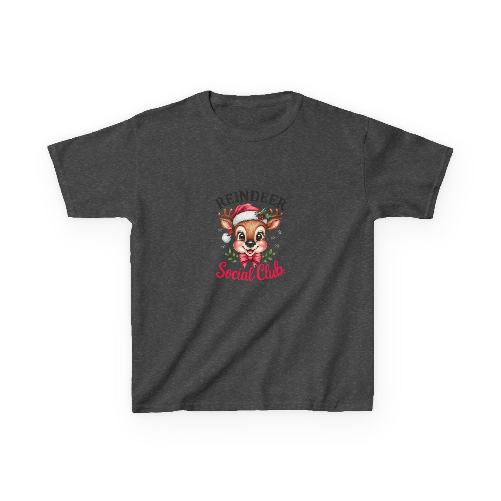Spread holiday cheer with this adorable Reindeer Social Club tee! Featuring a cute, cartoon reindeer wearing a Santa hat, this shirt is perfect for Christmas. The design includes festive details like holly, berries, and a pink bow. Crafted from soft, comfortable fabric, it's a great gift for kids and ideal for holiday parties. The playful design is sure to bring smiles!
