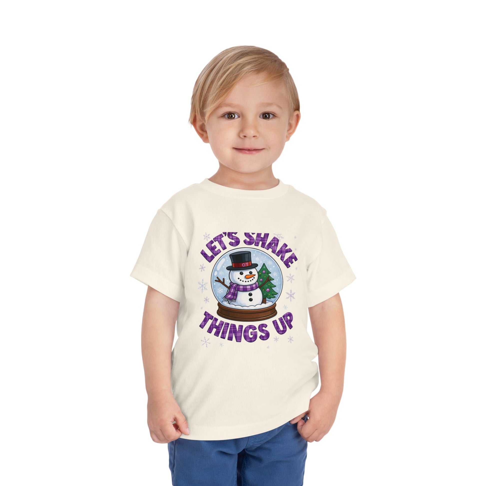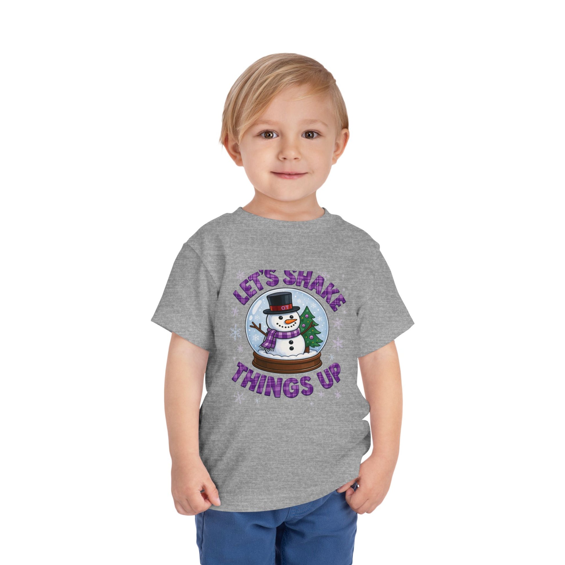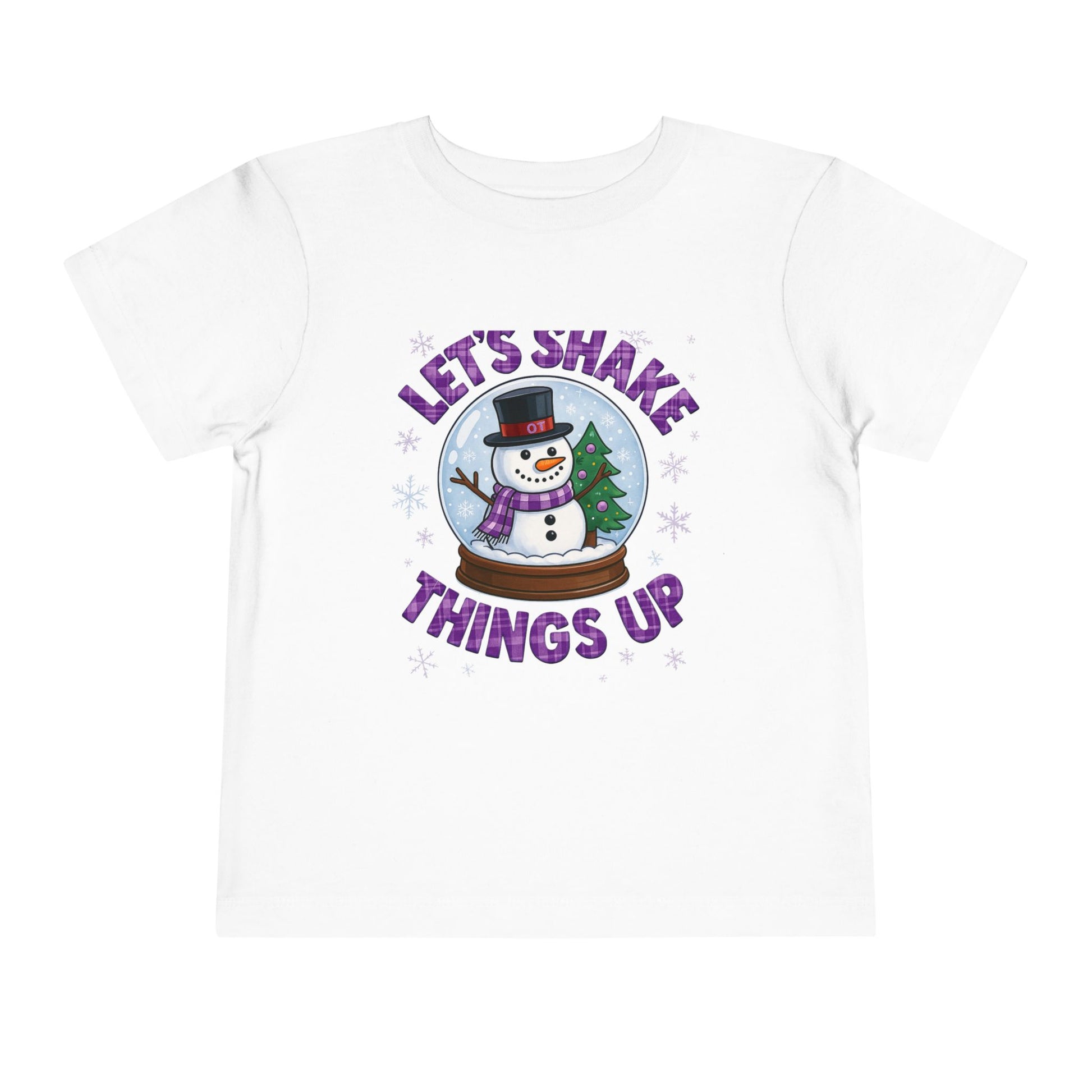 Spread holiday cheer with this adorable toddler tee! Featuring a whimsical snowman in a snow globe design, it's perfect for Christmas. Made from soft, comfortable fabric, this shirt is ideal for festive fun and makes a great gift.