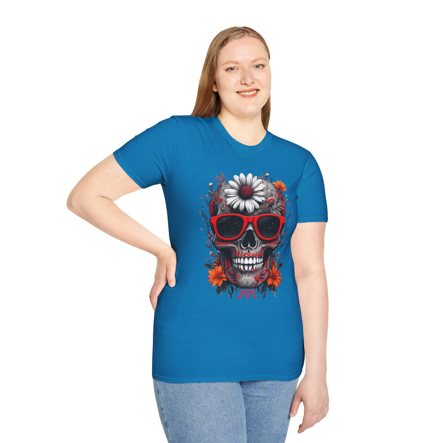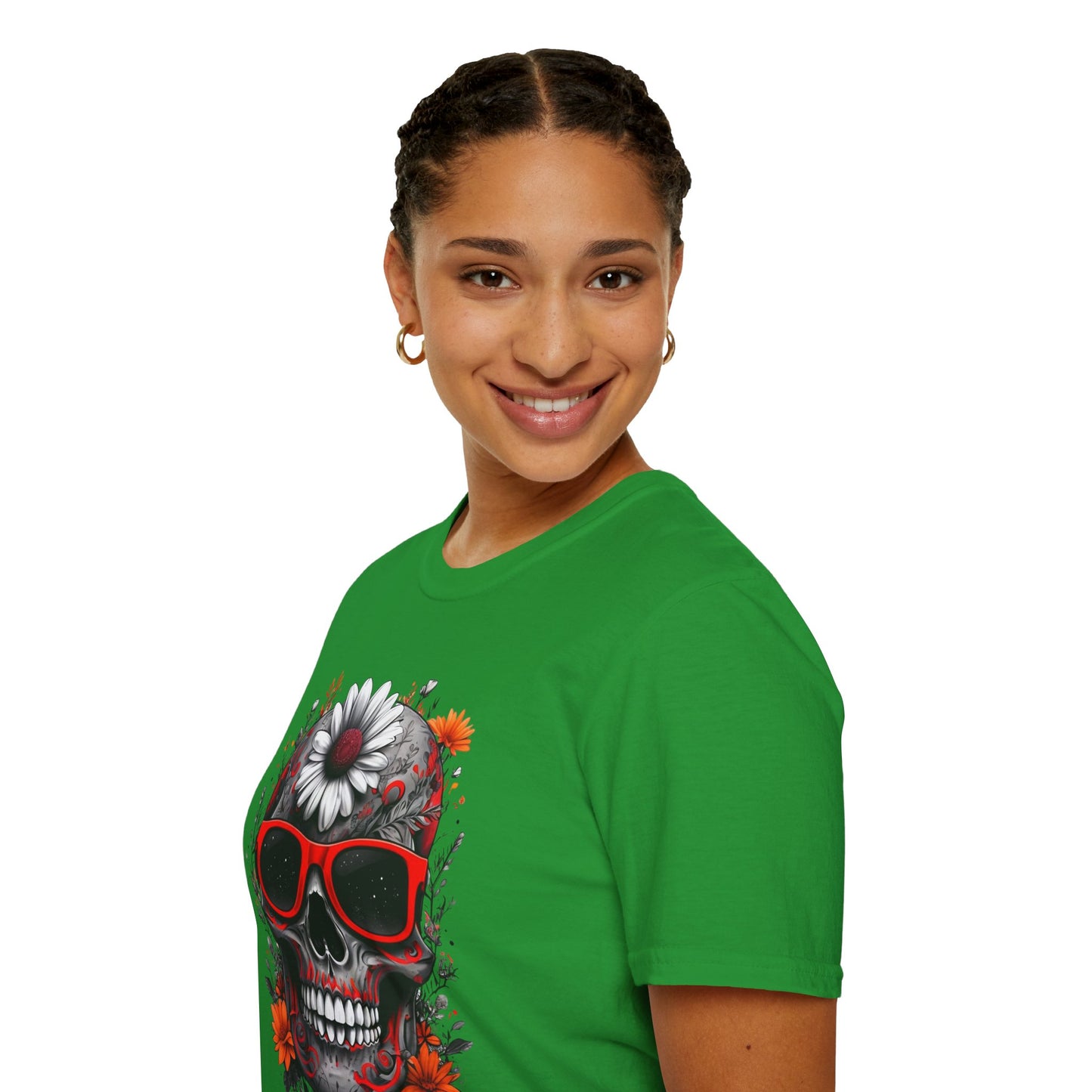 Introducing our Unisex Softstyle T-Shirt, the perfect blend of comfort and style. This t-shirt features a vibrant skull graphic adorned with colorful flowers, adding a unique and edgy vibe to your wardrobe. Lightweight and breathable, it’s ideal for all-day wear, making it a staple for casual outings or relaxed weekends. The classic fit and crew neckline ensure it pairs well with jeans, shorts, or skirts, making it versatile for any occasion, whether dressing up for a celebration or keeping it casual with friends.