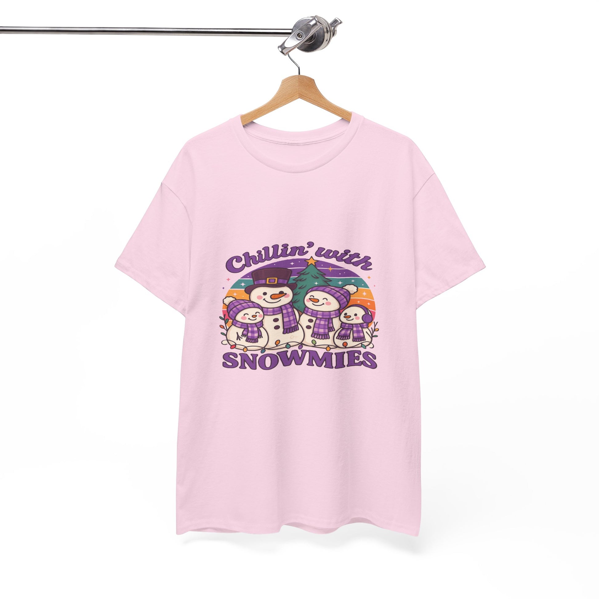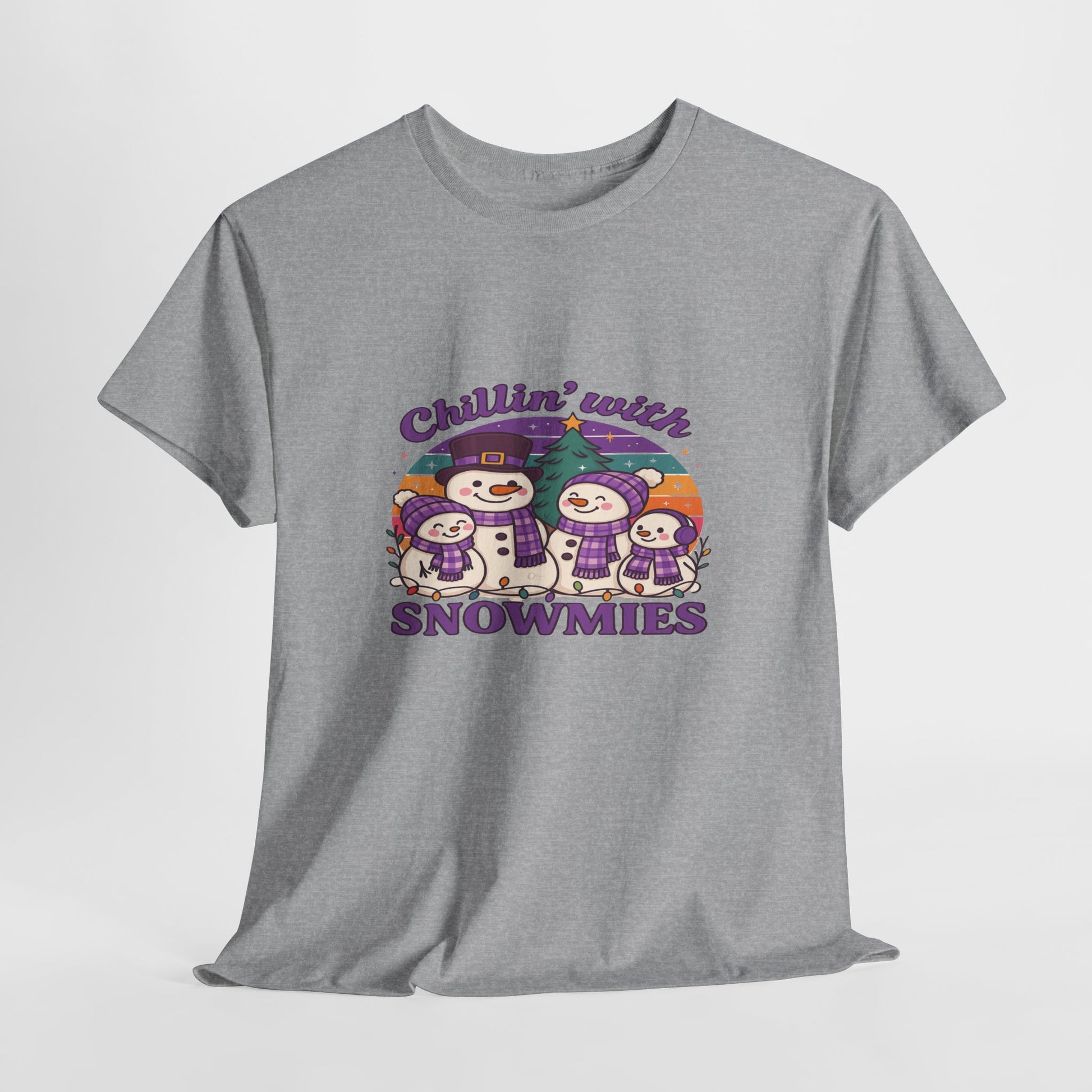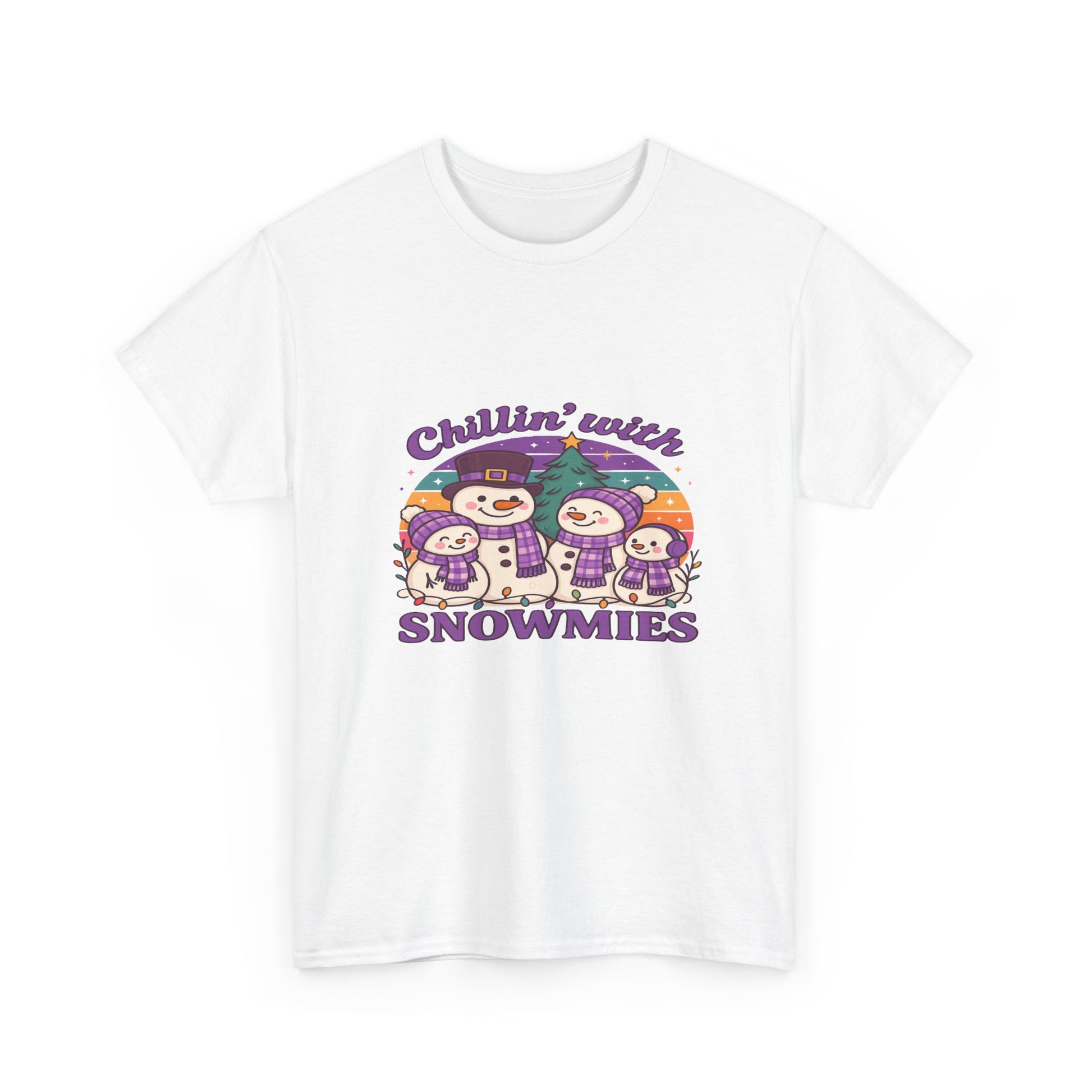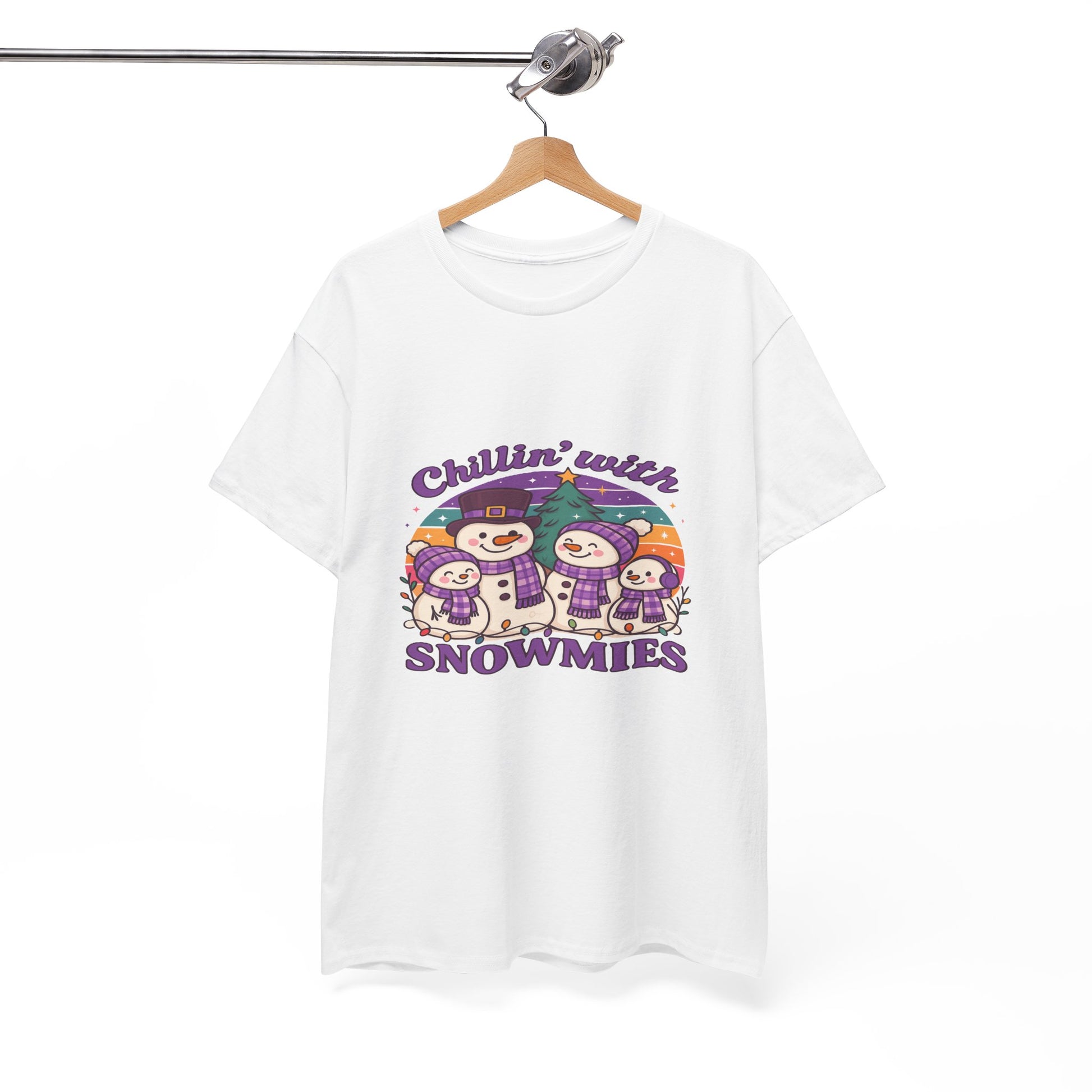 This unique tee featuring a cheerful retro snowman design with the phrase 'Chillin' with SNOWMIES' is perfect for adding a festive touch to your wardrobe. The classic fit and crew neckline make it versatile for any occasion, while the tear-away label ensures a comfortable wear. Suitable for adults, this T-Shirt is ideal for the holiday season and winter festivities.