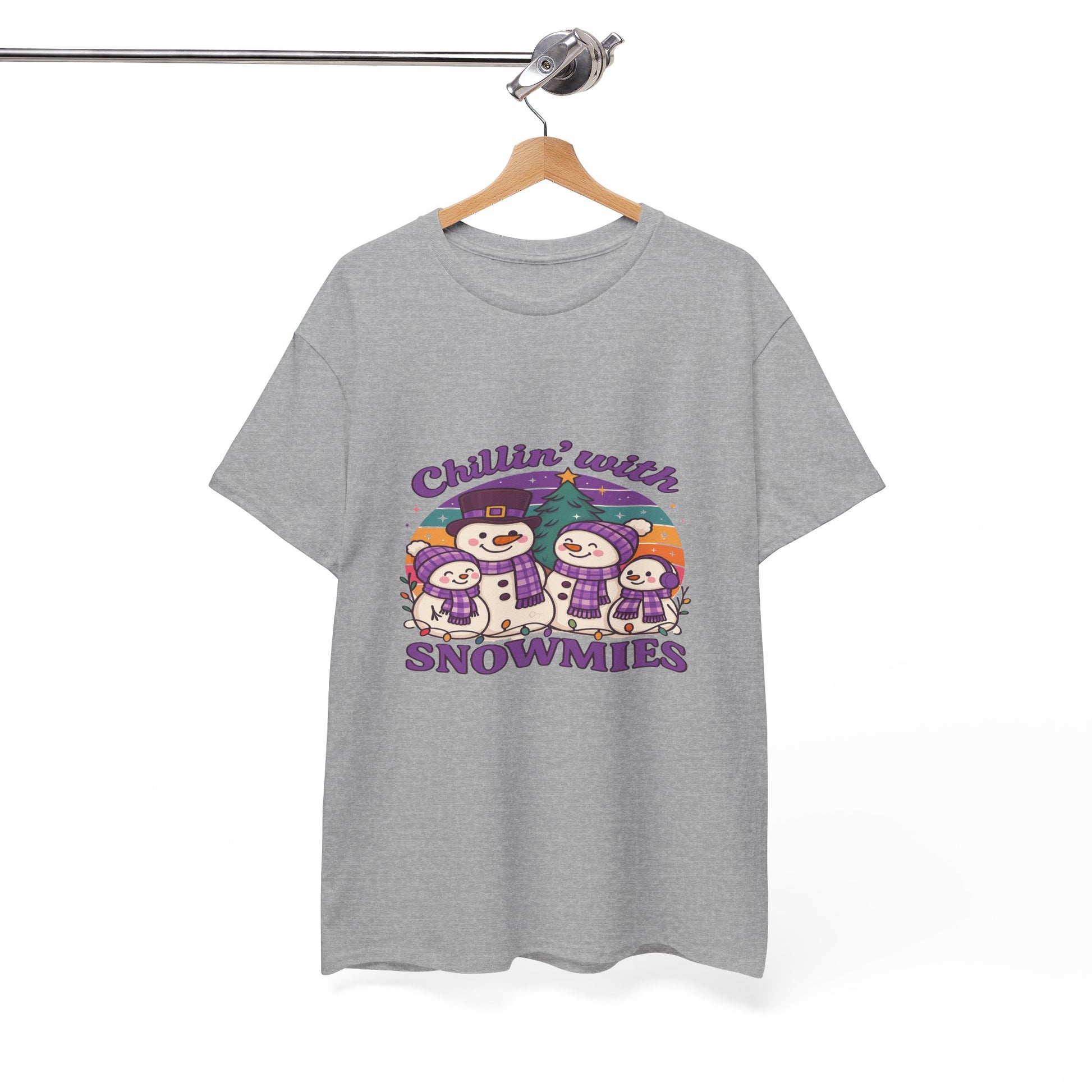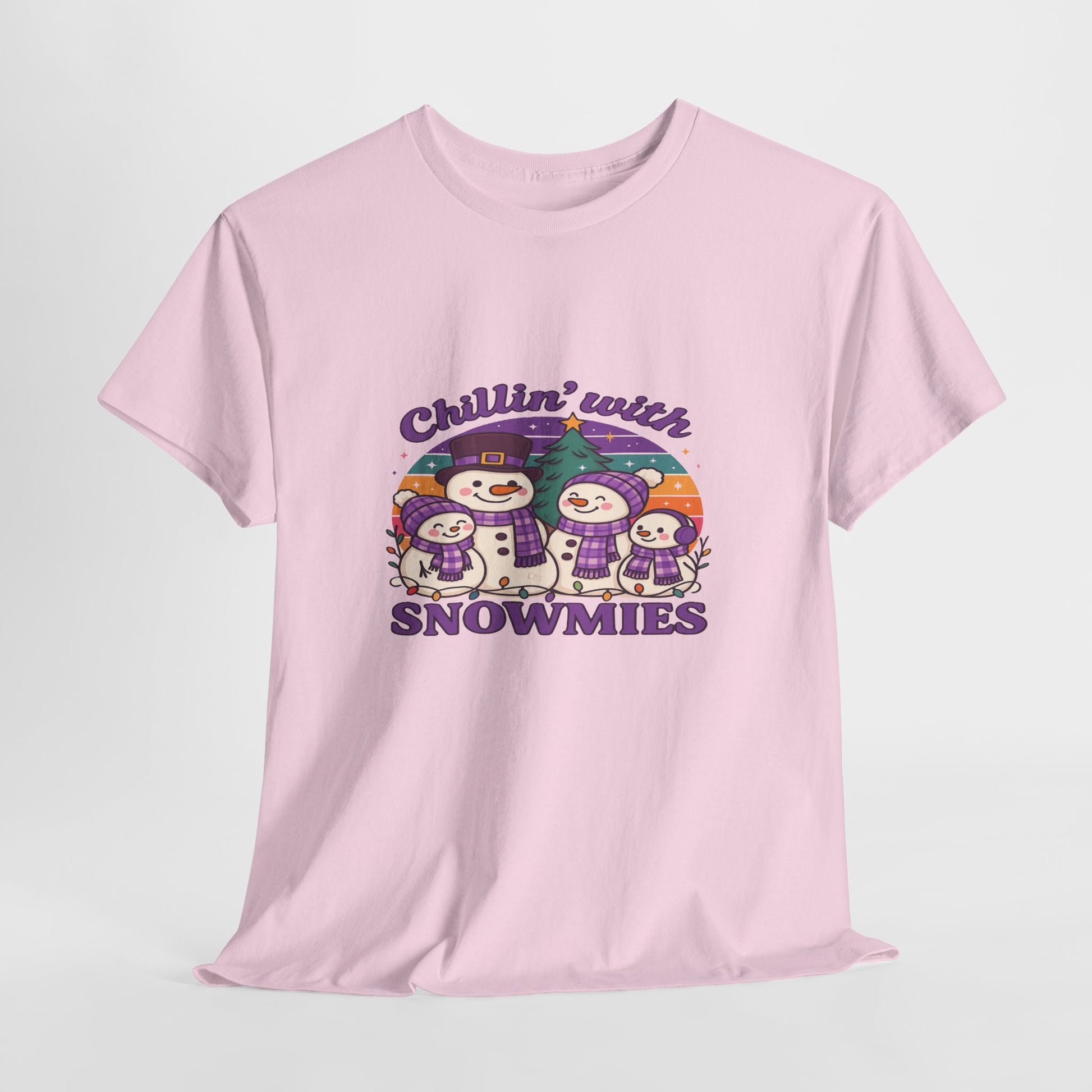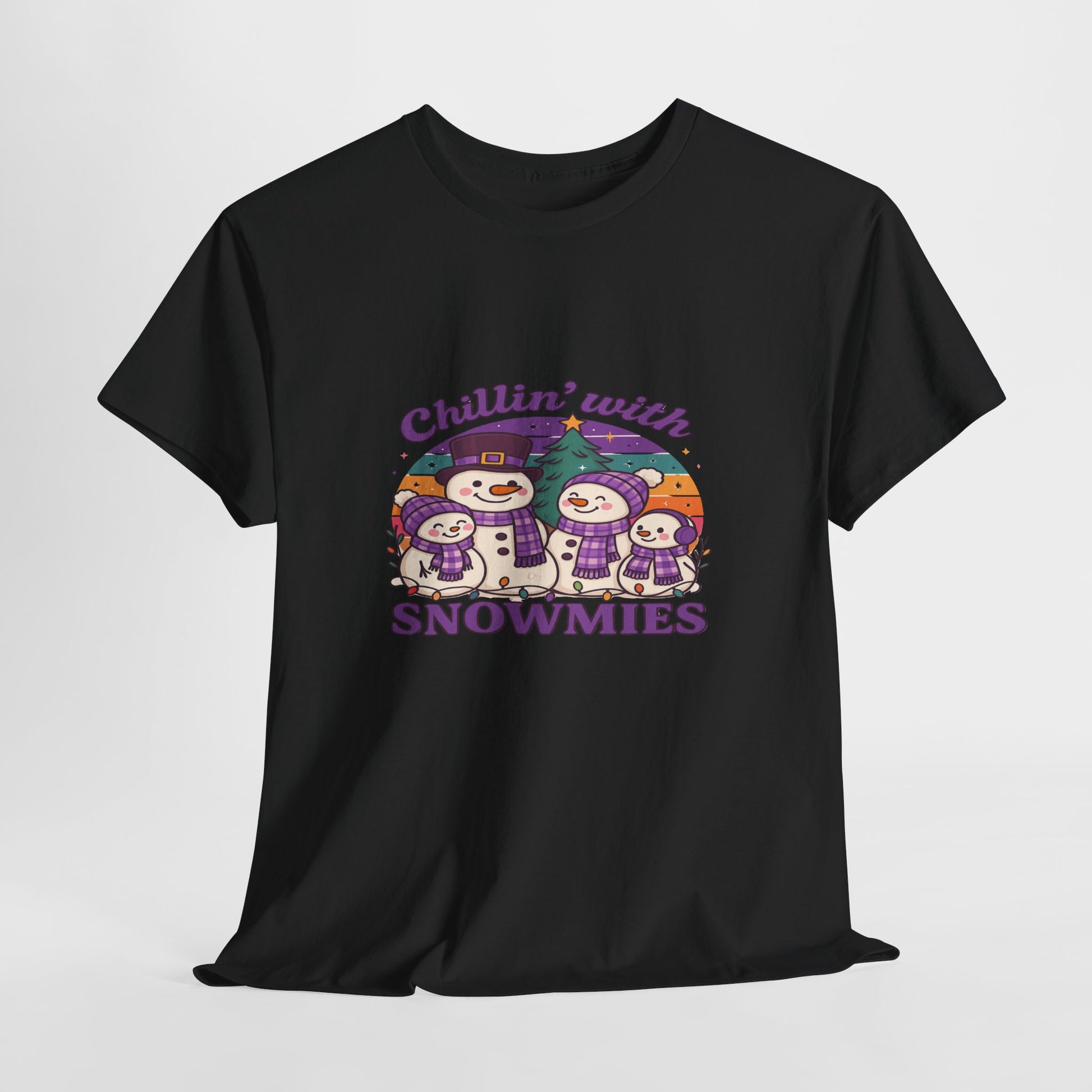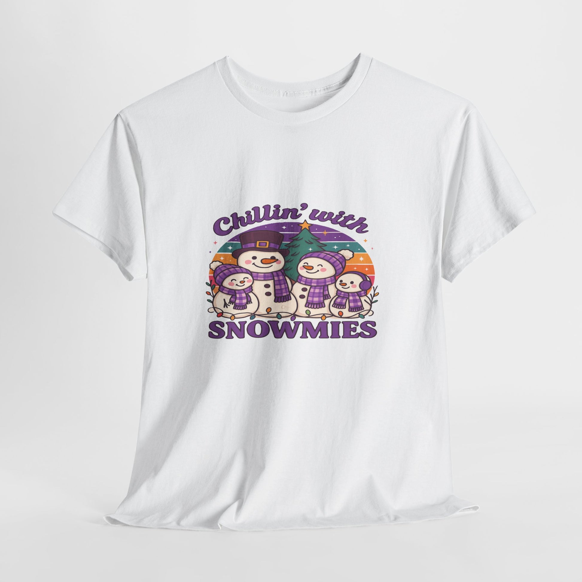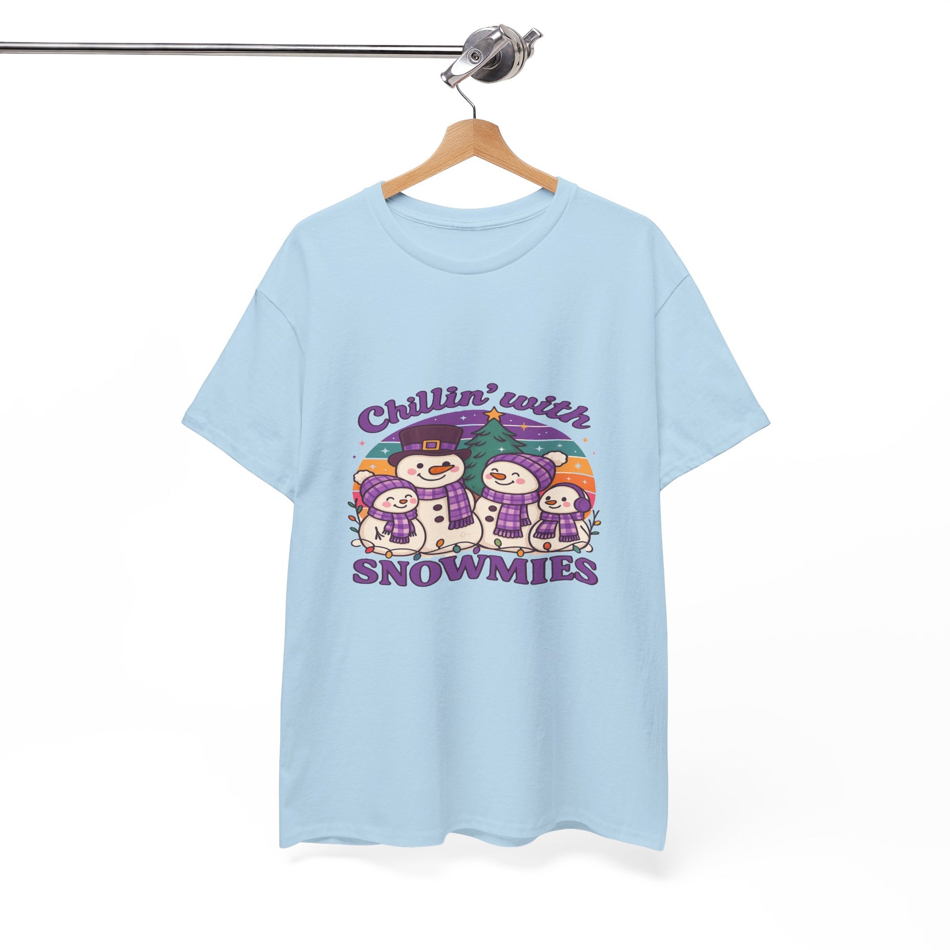 This unique tee featuring a cheerful retro snowman design with the phrase 'Chillin' with SNOWMIES' is perfect for adding a festive touch to your wardrobe. The classic fit and crew neckline make it versatile for any occasion, while the tear-away label ensures a comfortable wear. Suitable for adults, this T-Shirt is ideal for the holiday season and winter festivities.